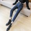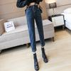 Pantalones vaqueros de cintura elástica con diseño de marca europea de moda para mujer, primavera y otoño, nuevos pantalones de tubo para pies pequeños.