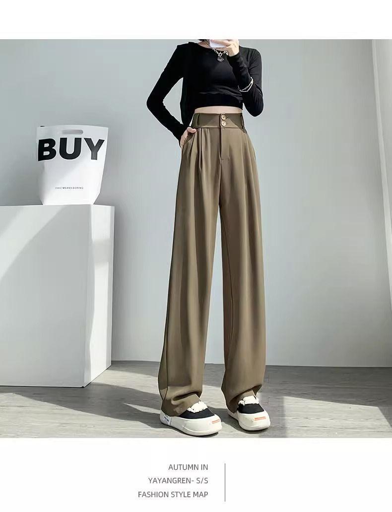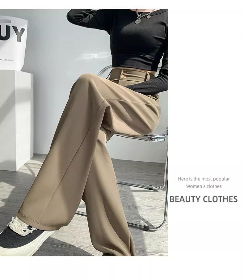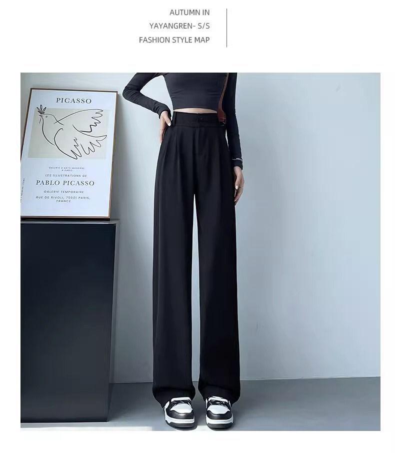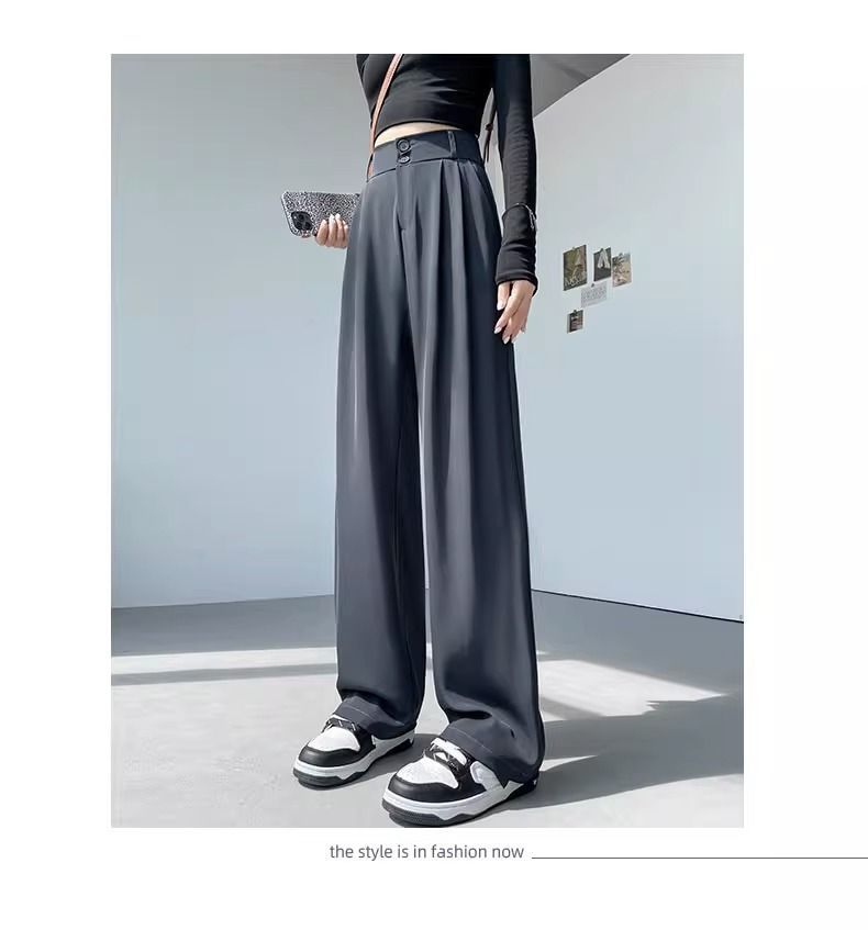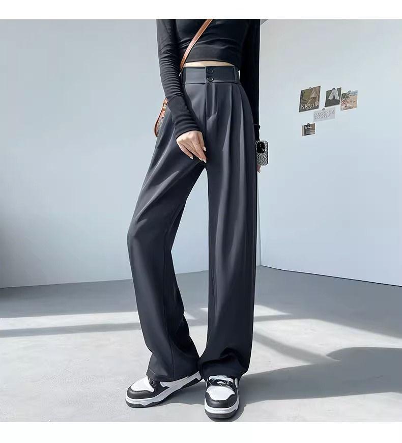 Pantalones de traje mujer primavera y otoño 2024 nuevos cintura alta corte slim drapeado rectos casuales sueltos pierna ancha