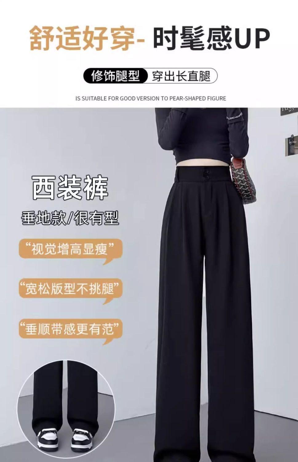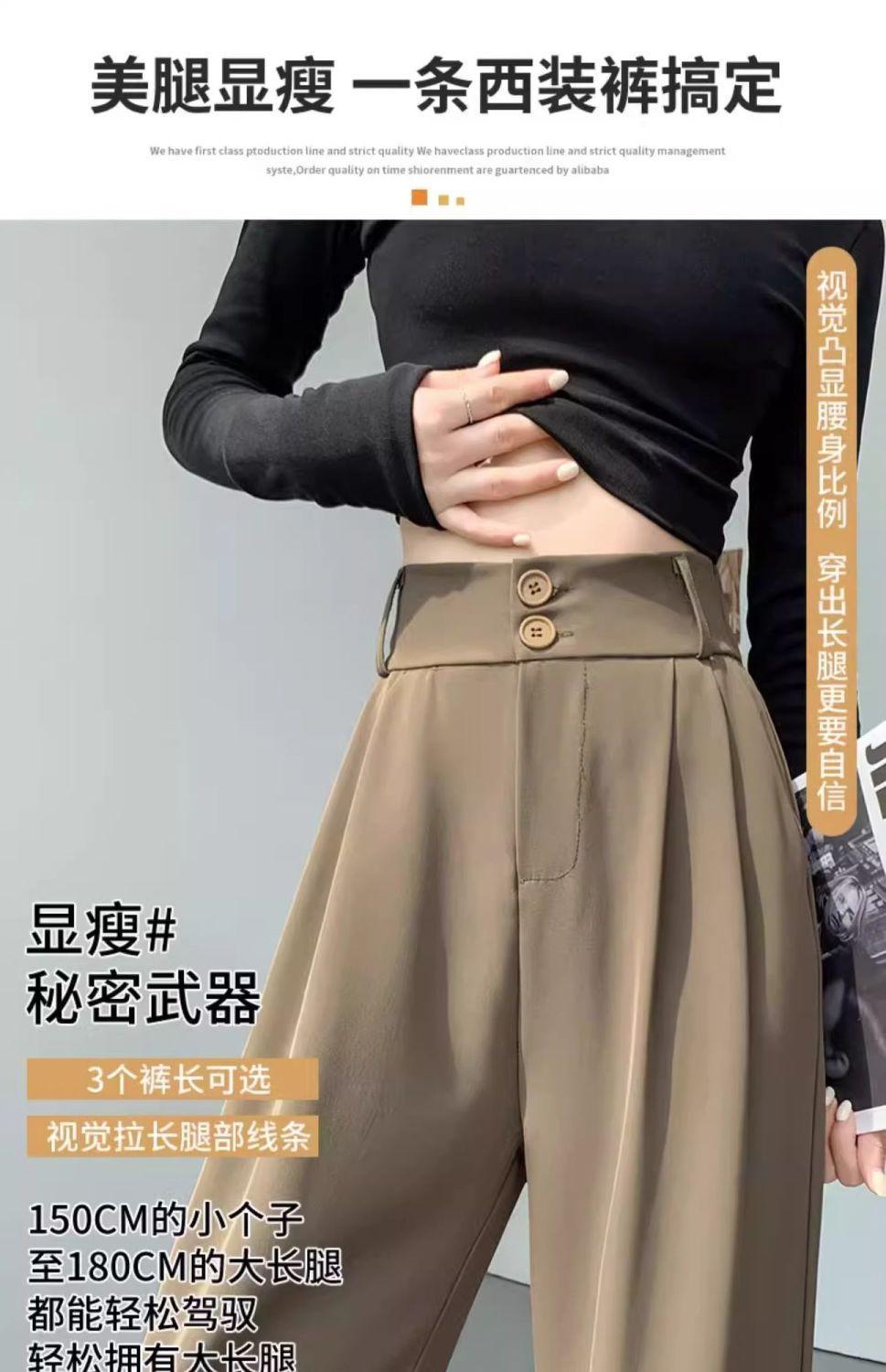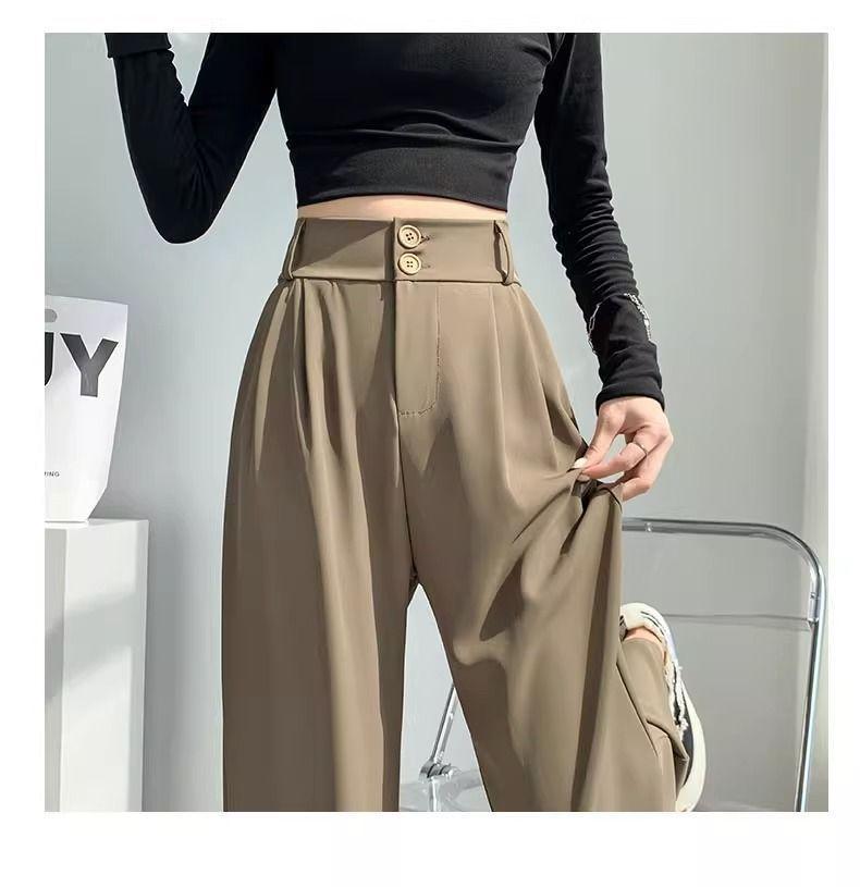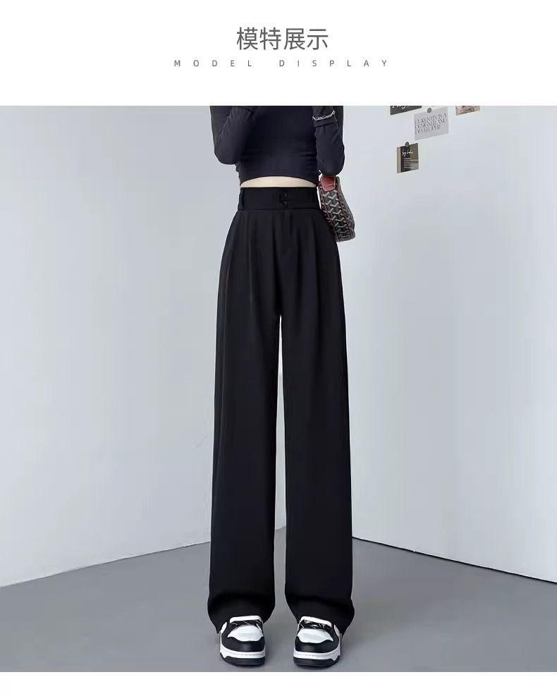 Pantalones de traje mujer primavera y otoño 2024 nuevos cintura alta corte slim drapeado rectos casuales sueltos pierna ancha