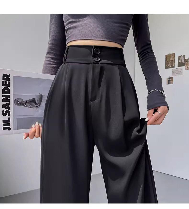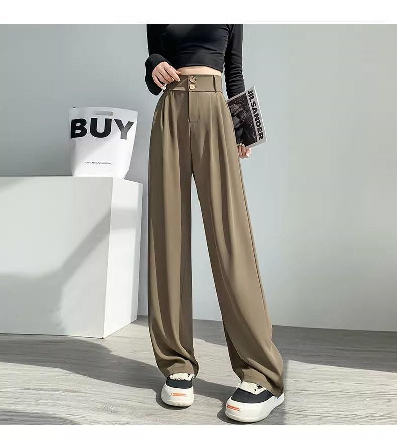 Pantalones de doble botón para mujer, primavera y otoño 2024, nuevos, cintura alta, adelgazantes, rectos, casuales, holgados, de pierna ancha