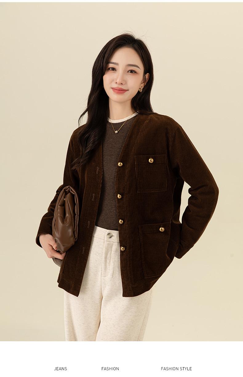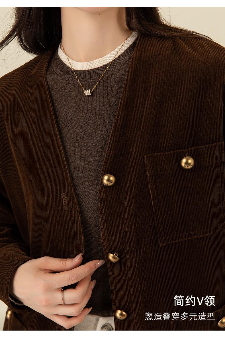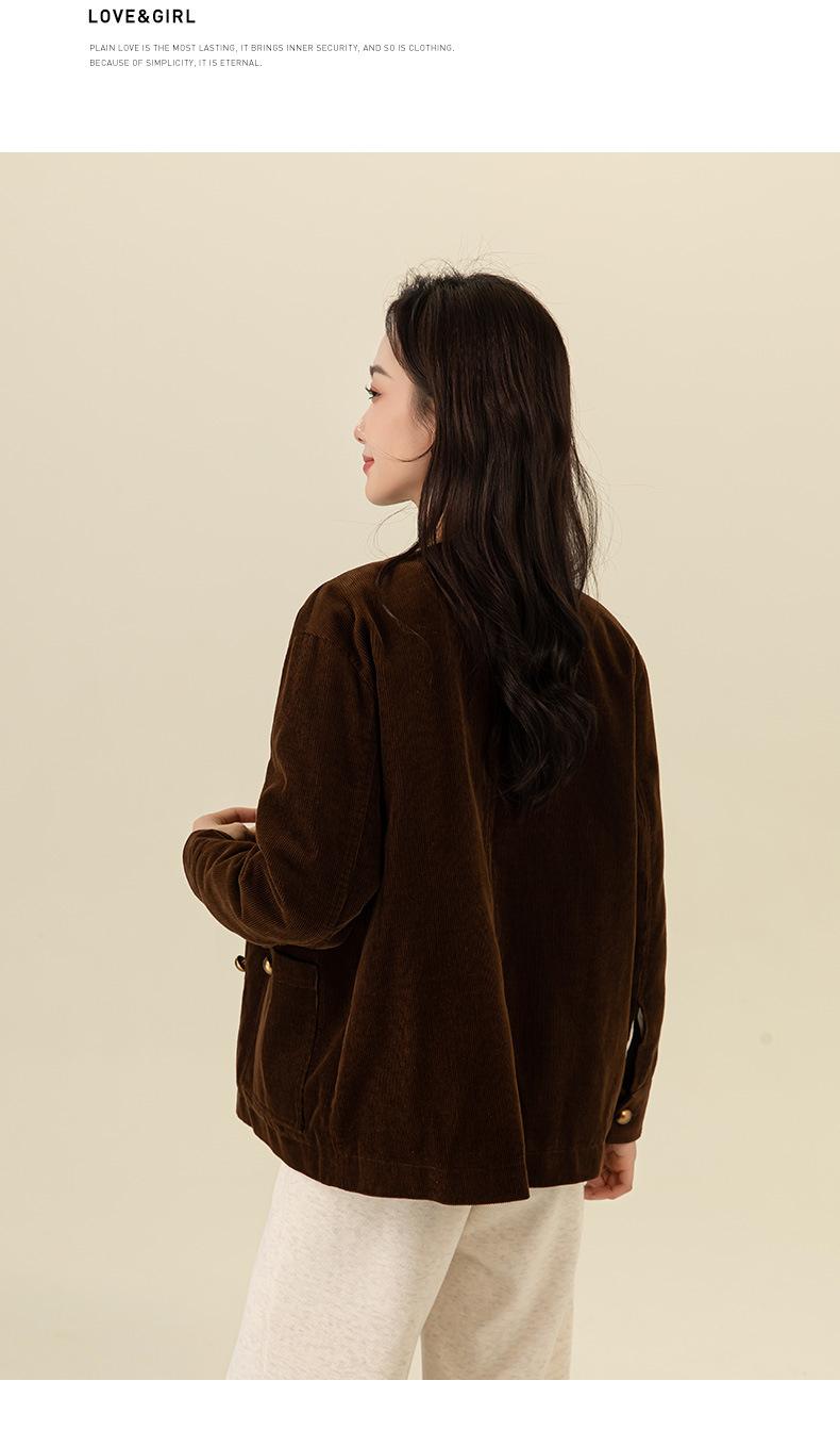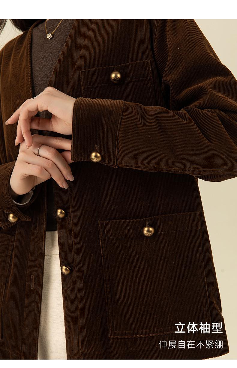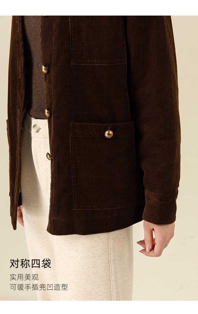 Chaqueta tipo cárdigan de pana retro Xinge Han Feng, de estilo elegante y con un toque de personalidad, para invierno, informal y combinable, para mujer.