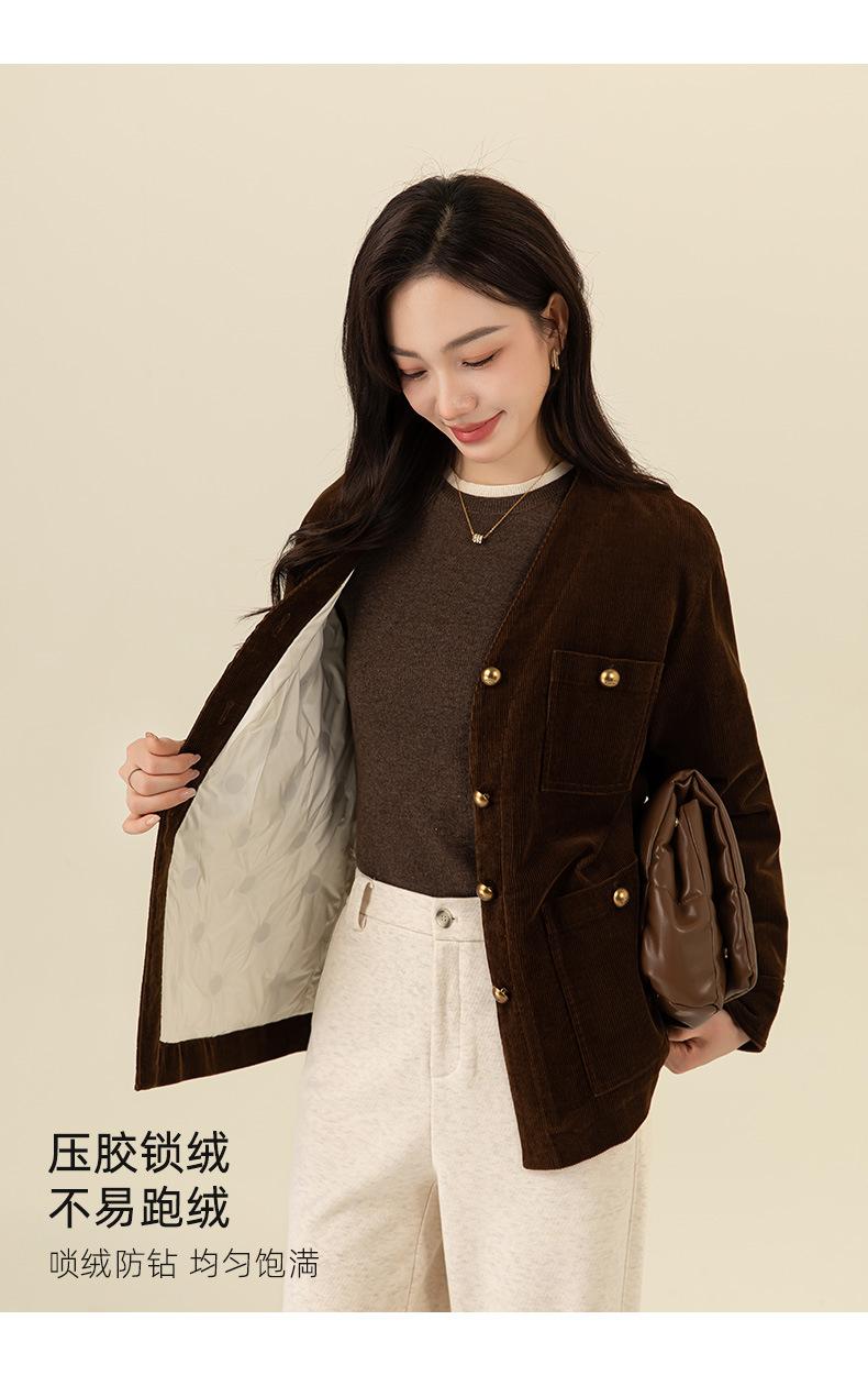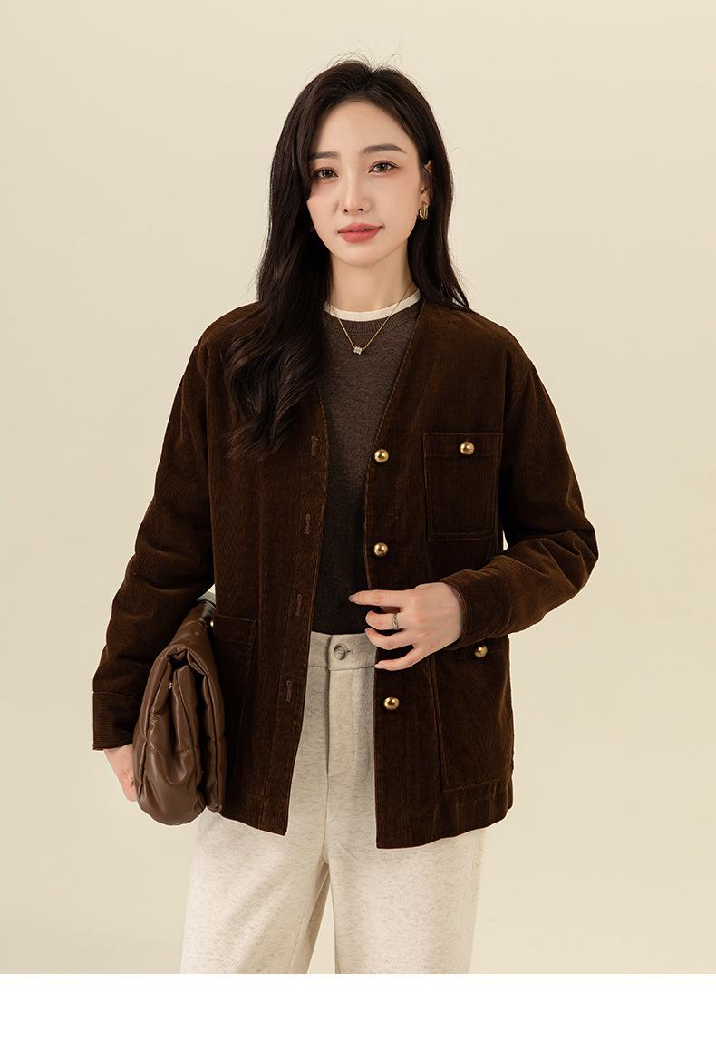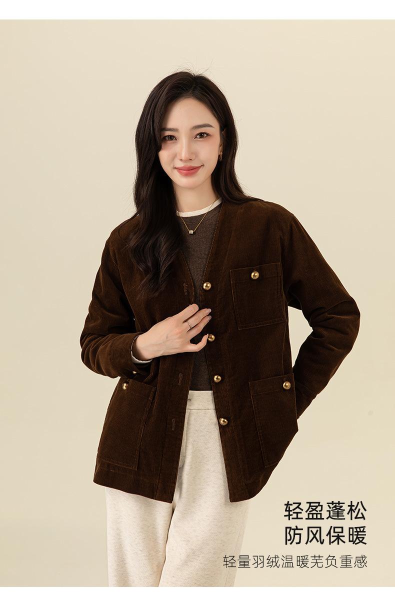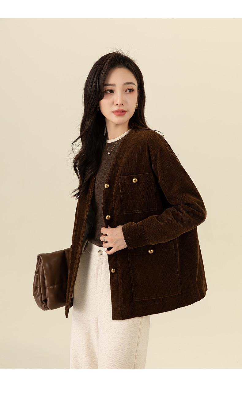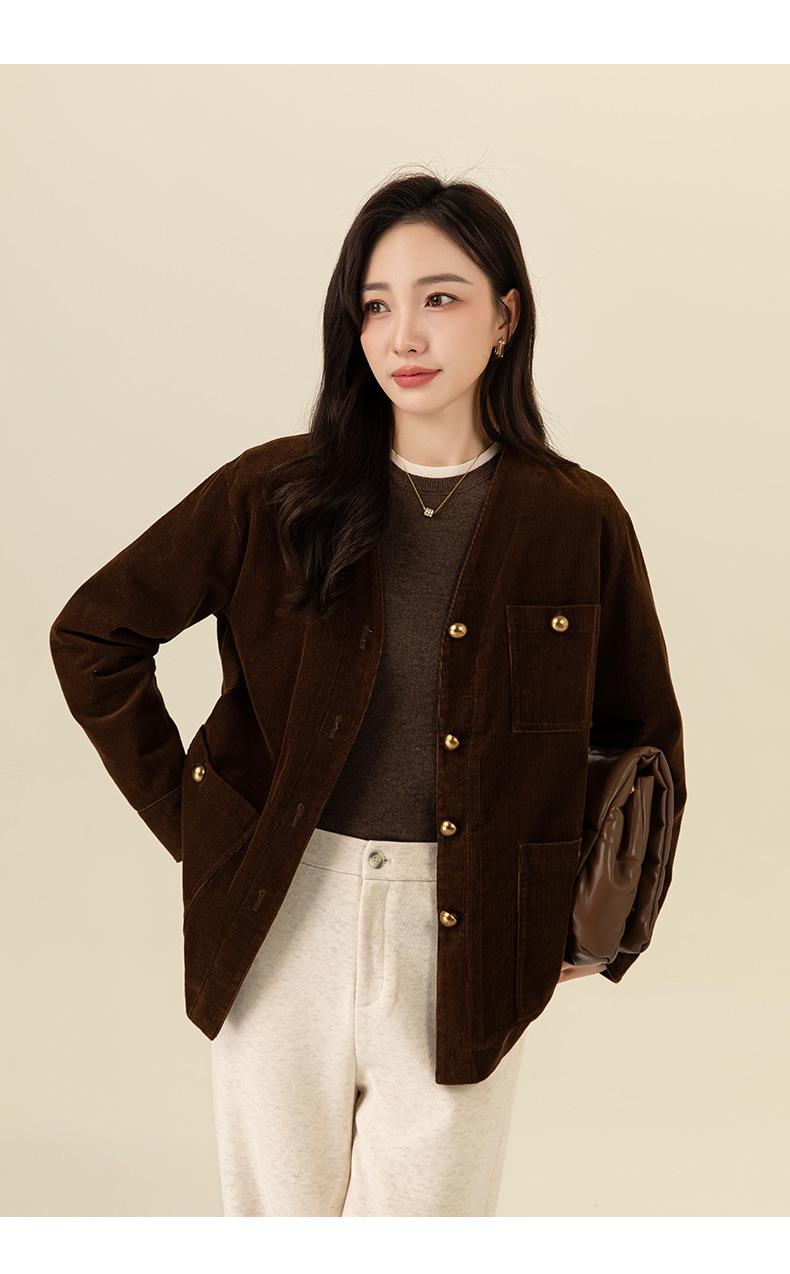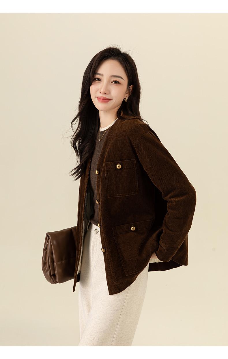 Chaqueta tipo cárdigan de pana retro Xinge Han Feng, de estilo elegante y con un toque de personalidad, para invierno, informal y combinable, para mujer.