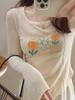 Camiseta básica elegante de terciopelo de doble cara para mujer, estilo occidental, adelgazante, con cuello redondo corto y manga larga estampada, para otoño e invierno