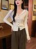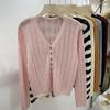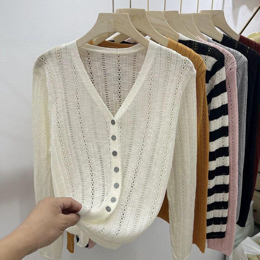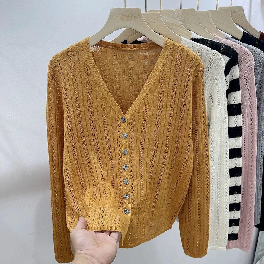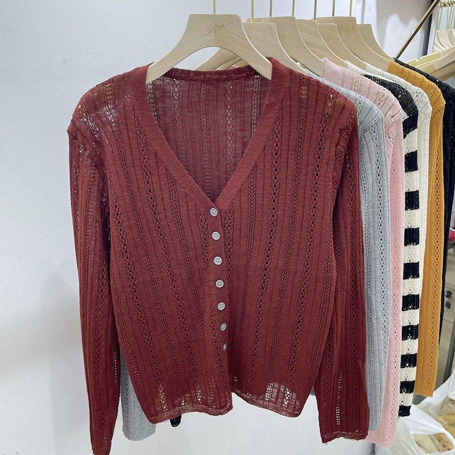 Cárdigan de punto hueco de manga larga para mujer, diseño nuevo de principios de otoño de 2024, talla grande, gordita, top francés único para mujer