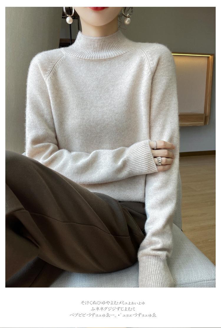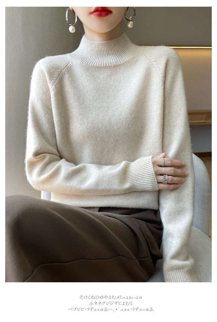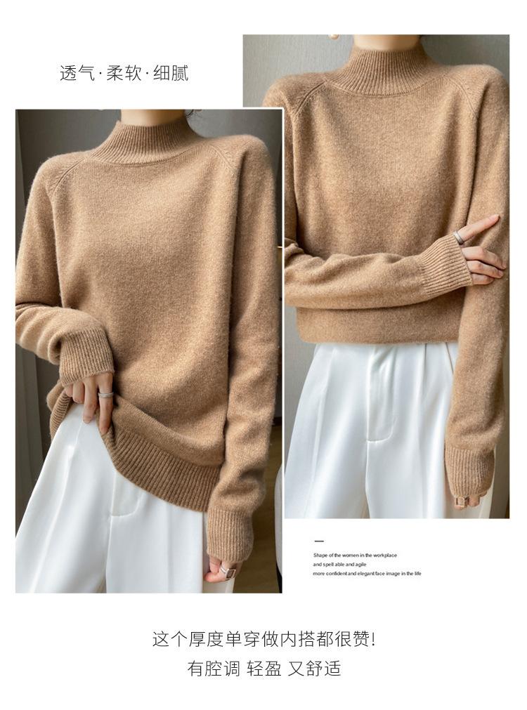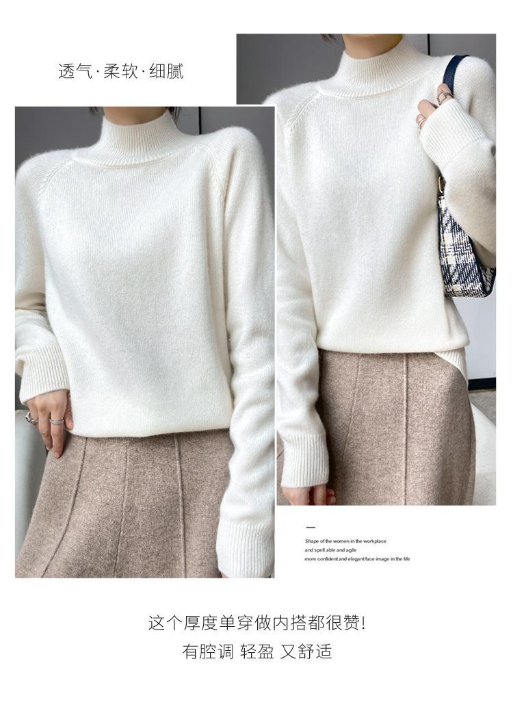 Suéter de cachemira de montaña con cuello medio, suéter de mujer, nuevo jersey interior grueso de moda, camisa de base de punto de manga larga, adelgazante