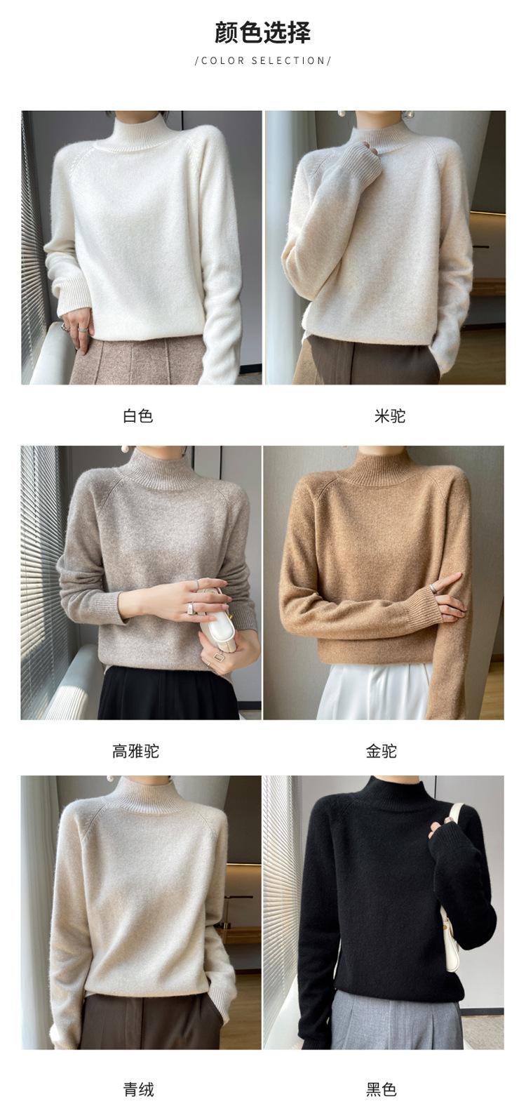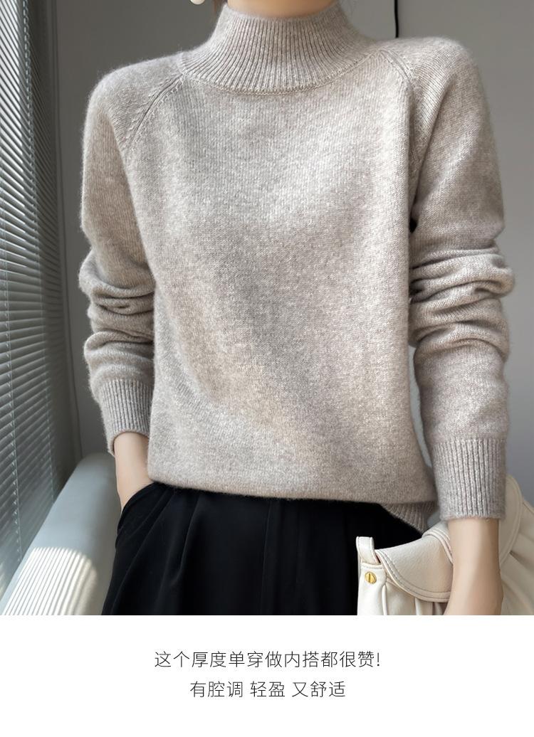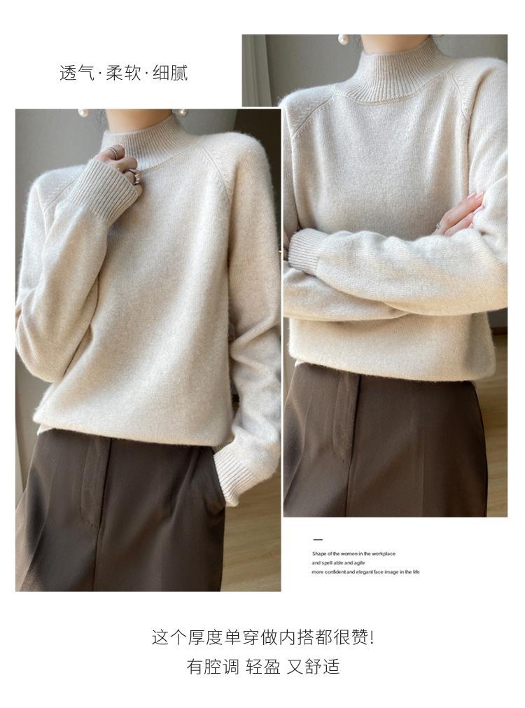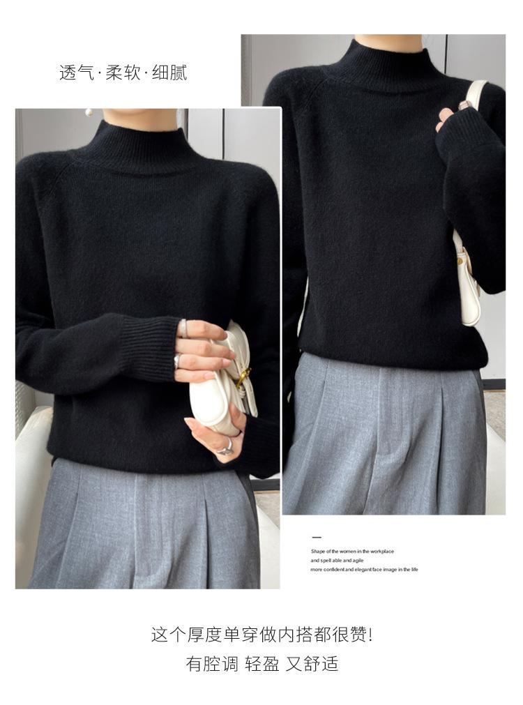 Suéter de cachemira de montaña con cuello medio, suéter de mujer, nuevo jersey interior grueso de moda, camisa de base de punto de manga larga, adelgazante