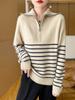 Suéter de solapa con media cremallera para mujer, suéter de rayas con contraste de color para otoño e invierno, suéter informal holgado de lana exterior de estilo coreano