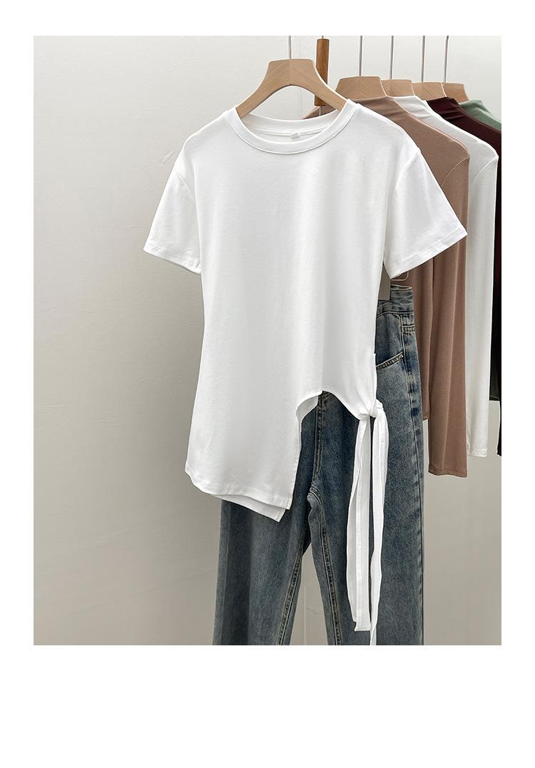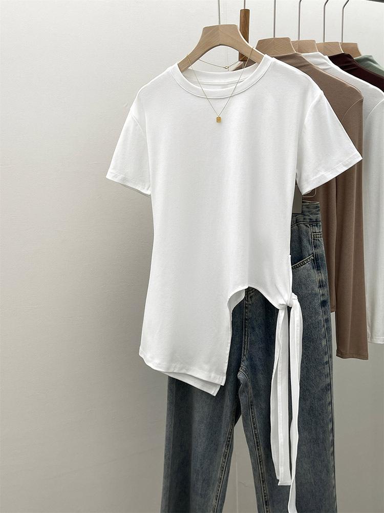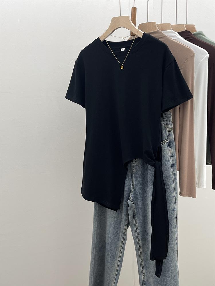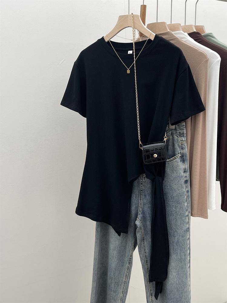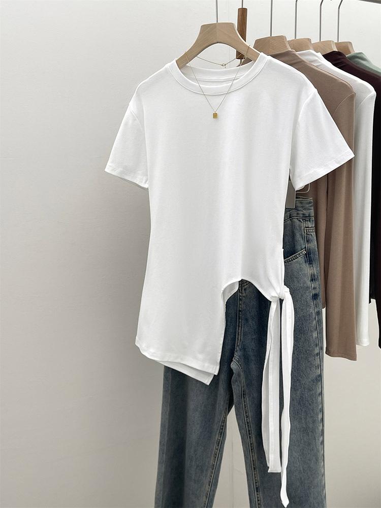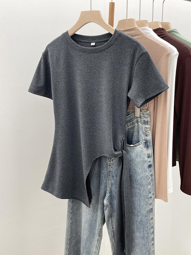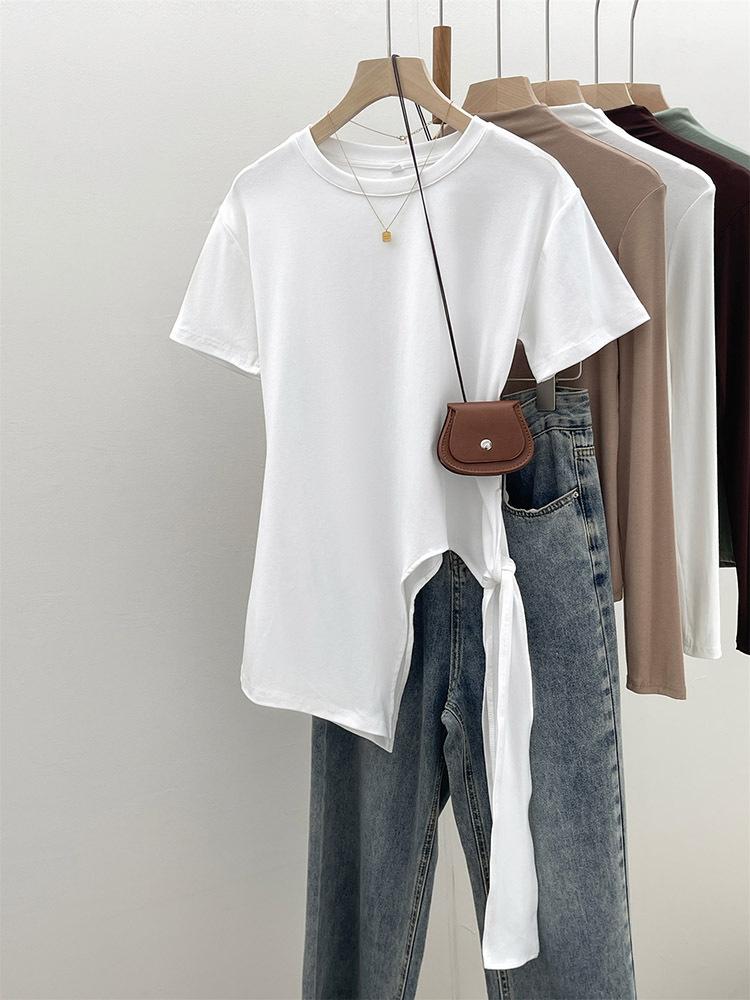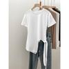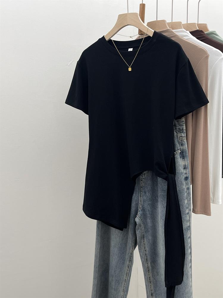 Camiseta de manga corta con tirantes finos y diseño de estación europea Sense para mujer, de algodón con cintura irregular, para verano de 2024