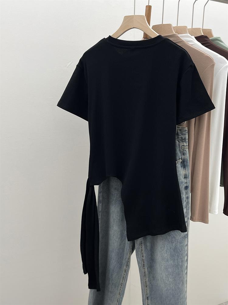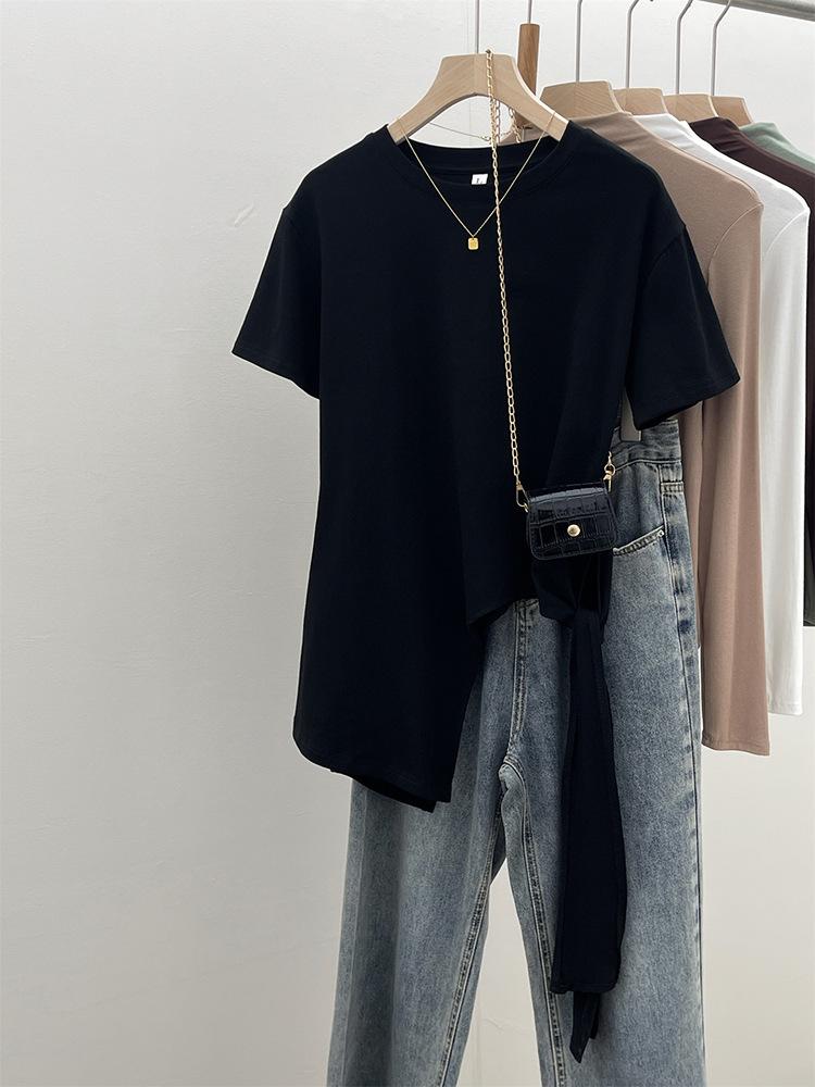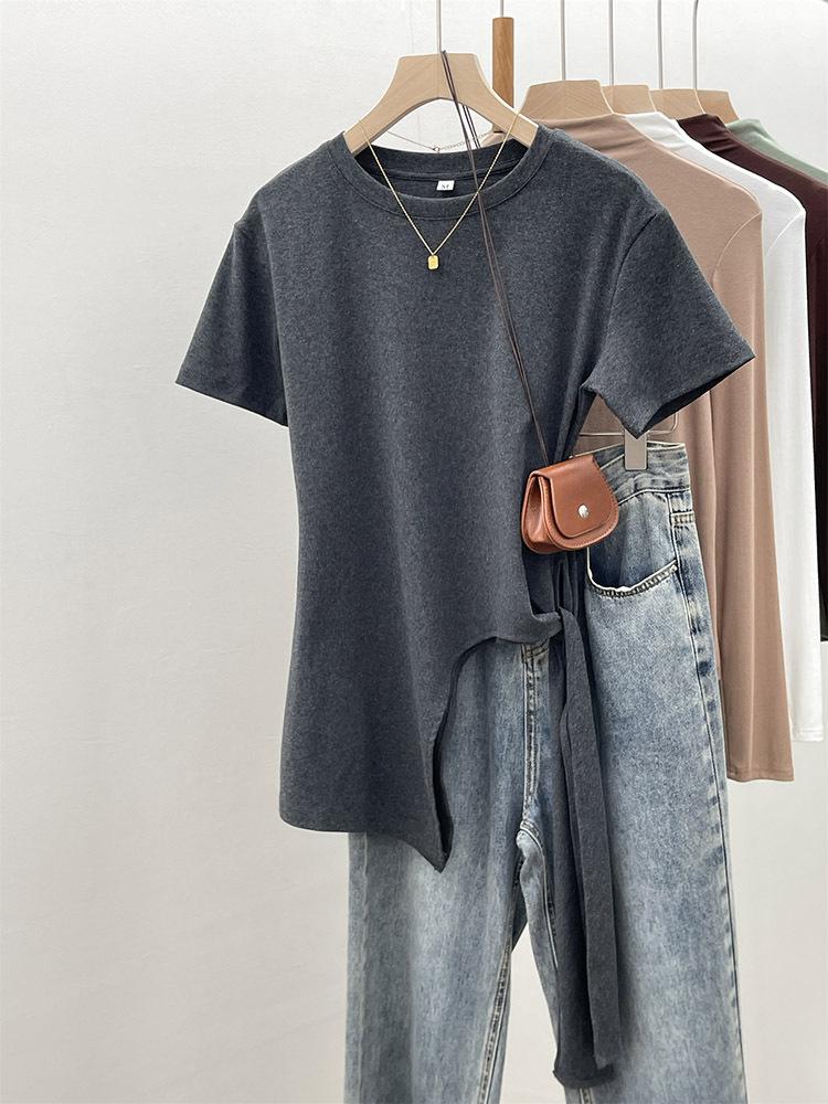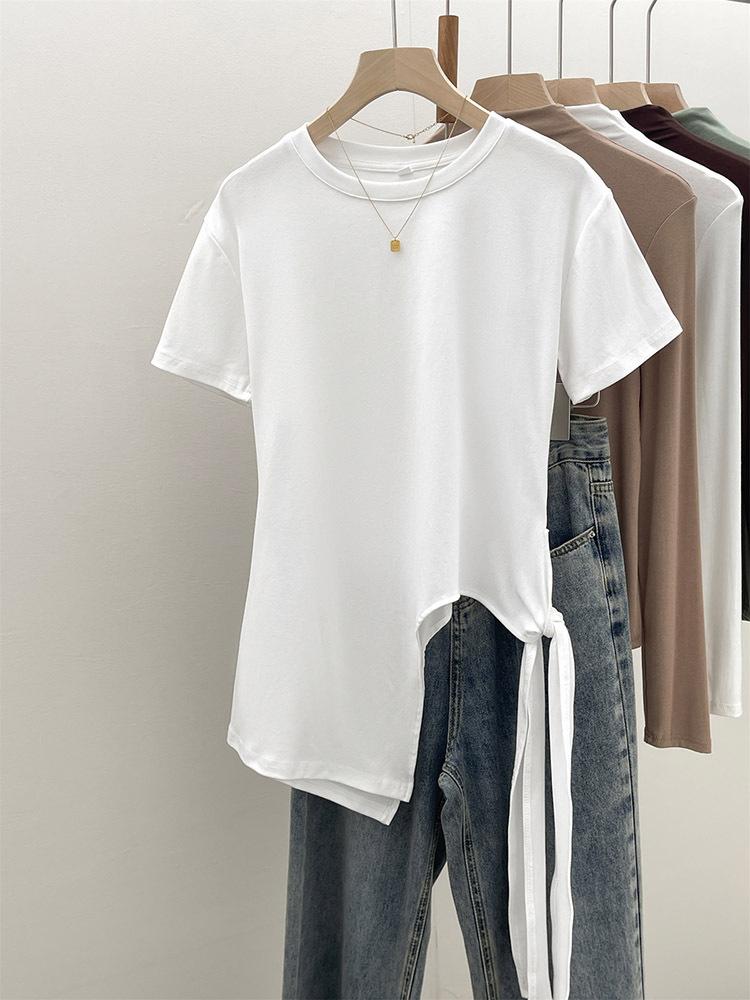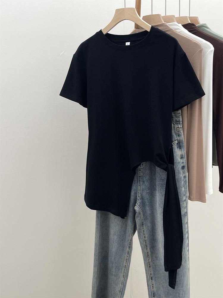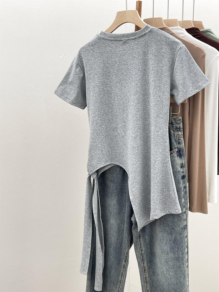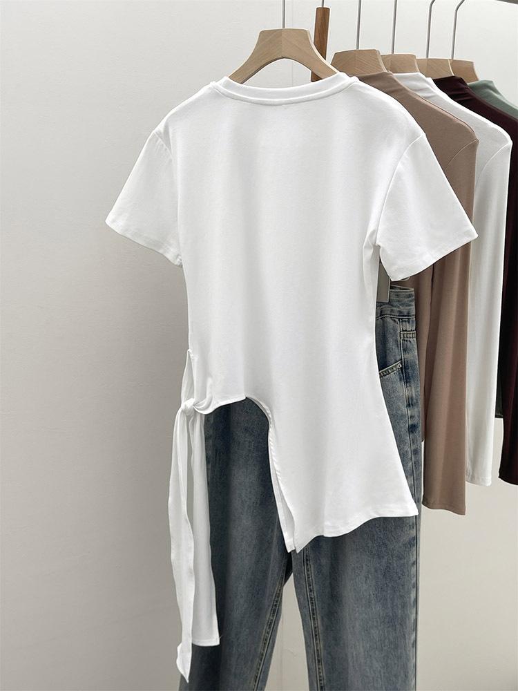 Camiseta de manga corta con tirantes finos y diseño de estación europea Sense para mujer, de algodón con cintura irregular, para verano de 2024