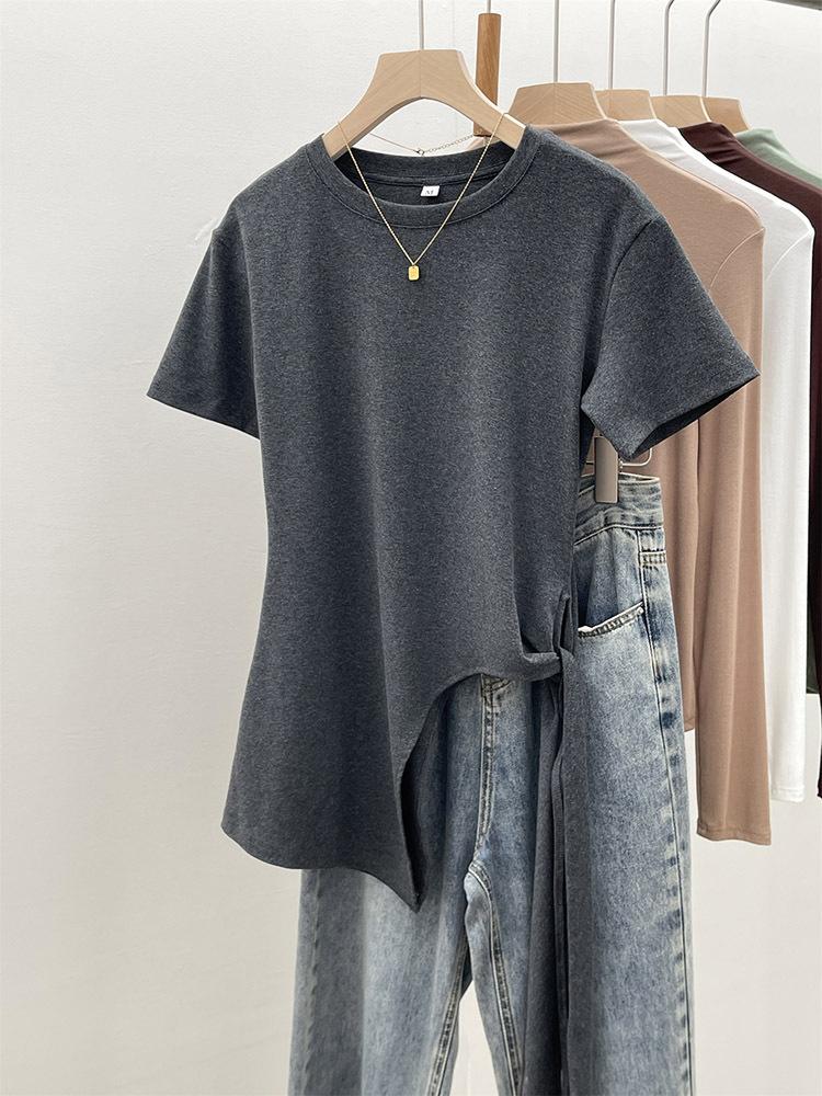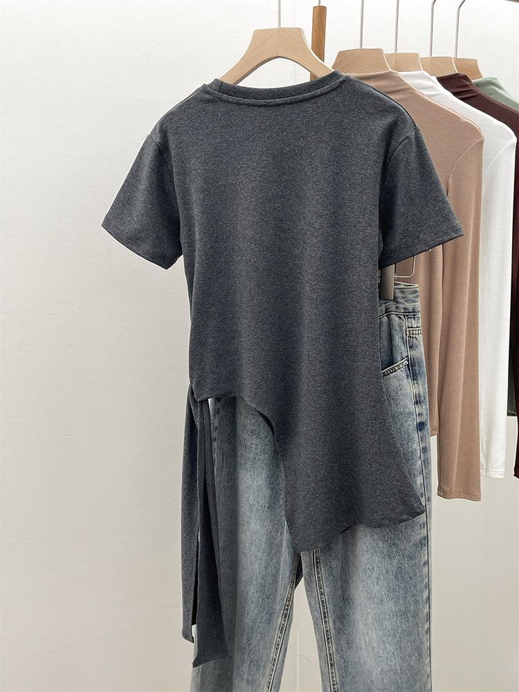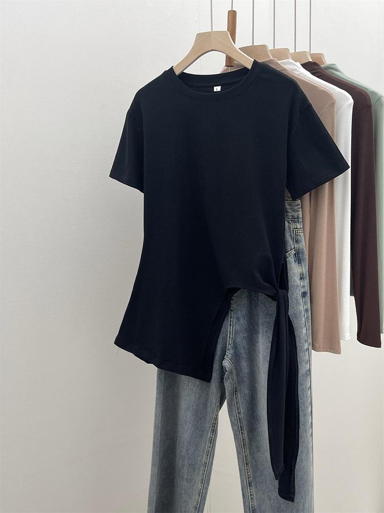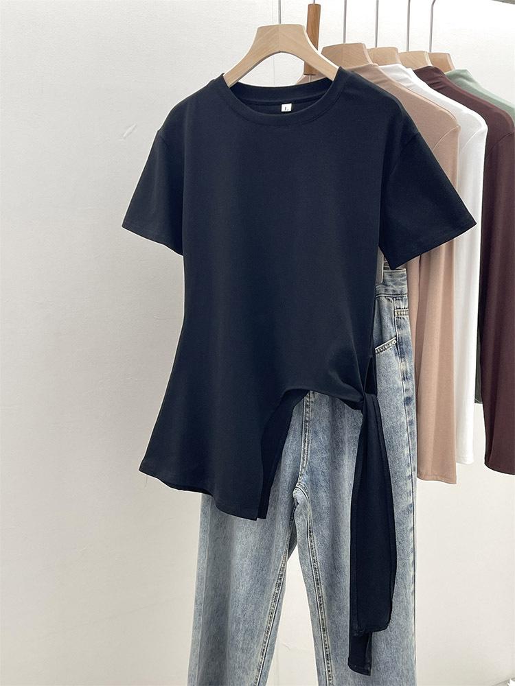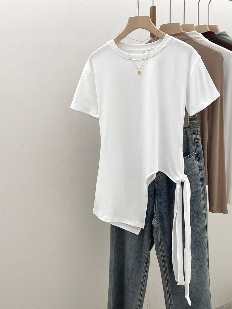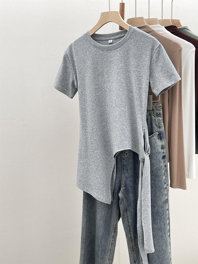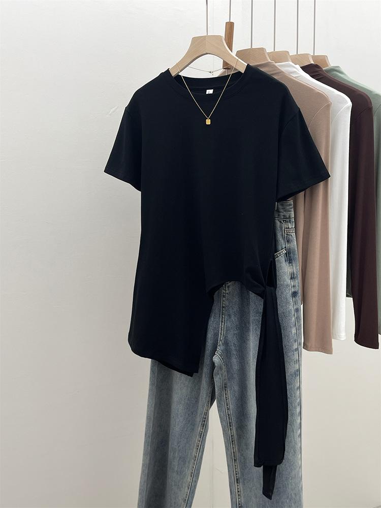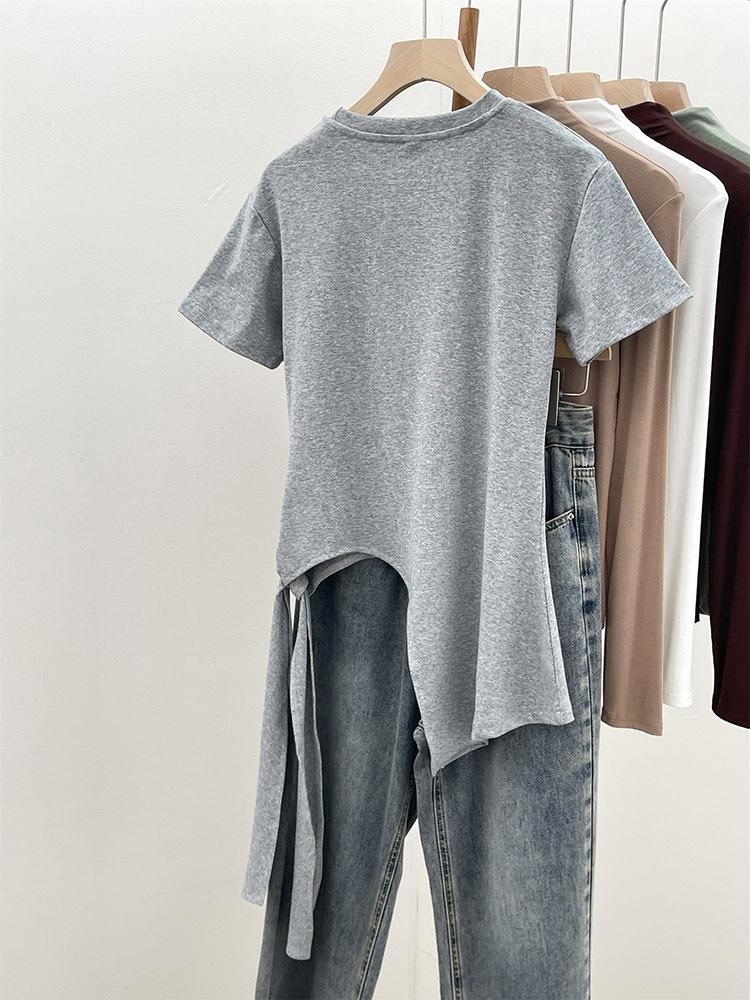 Camiseta de manga corta con tirantes finos y diseño de estación europea Sense para mujer, de algodón con cintura irregular, para verano de 2024