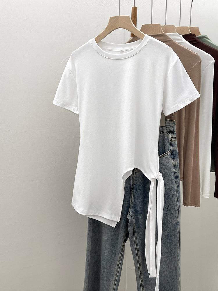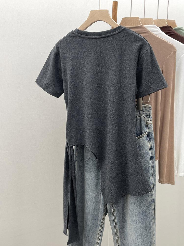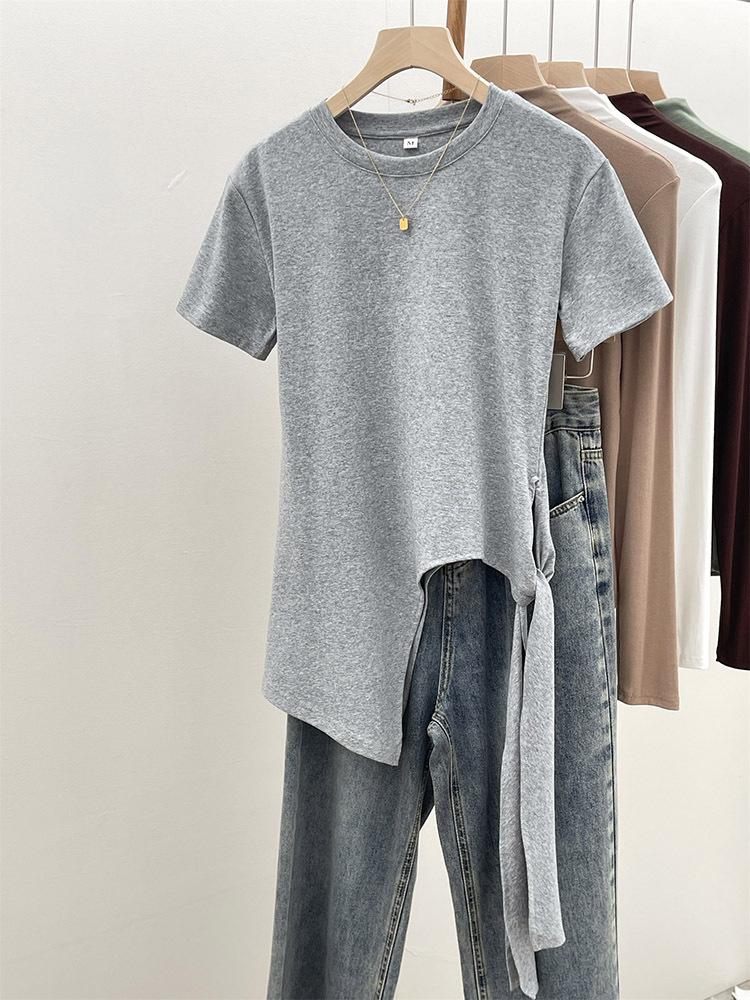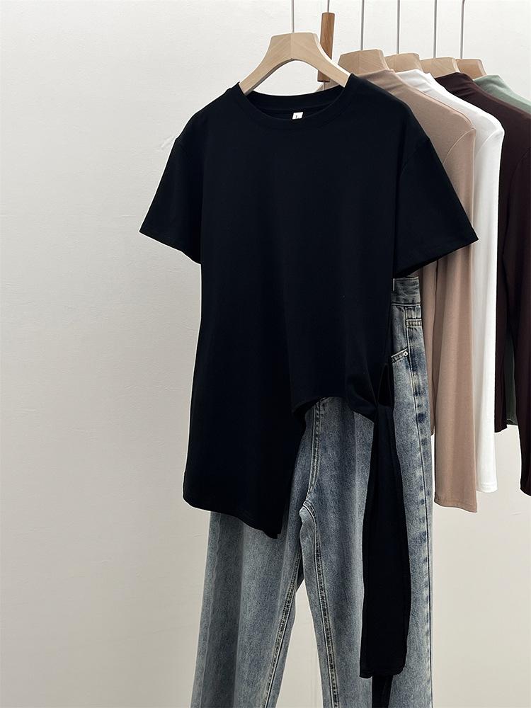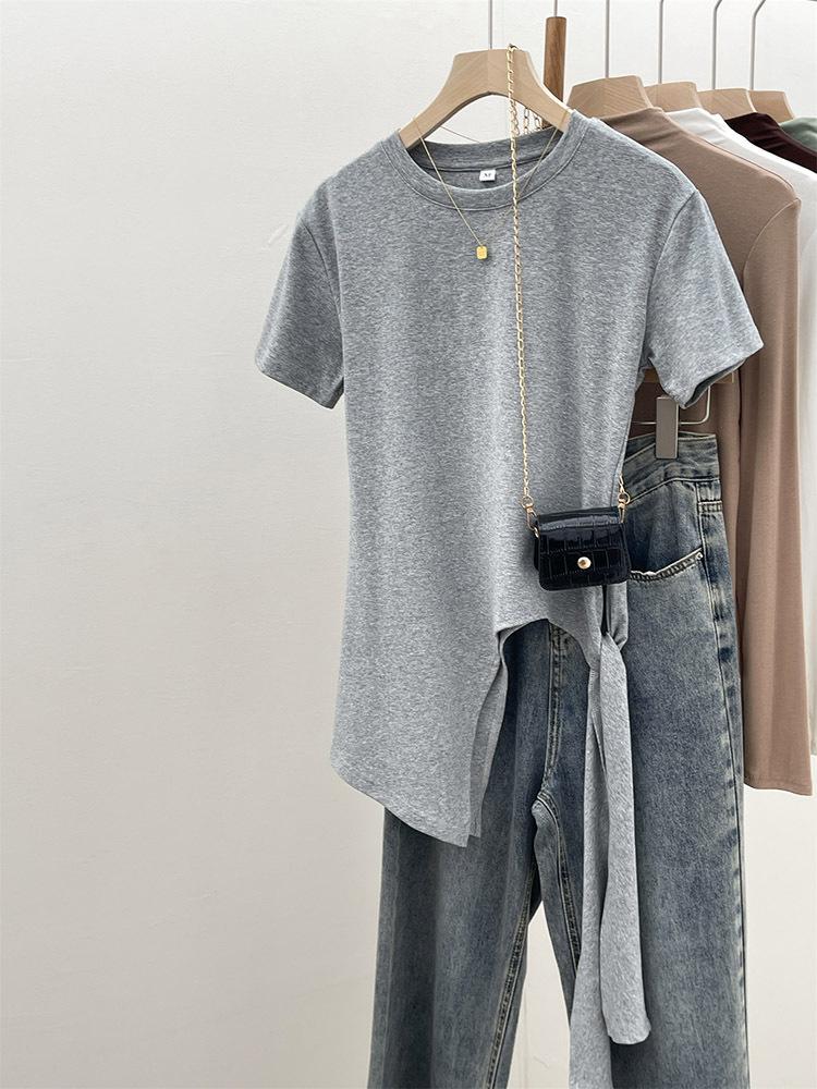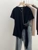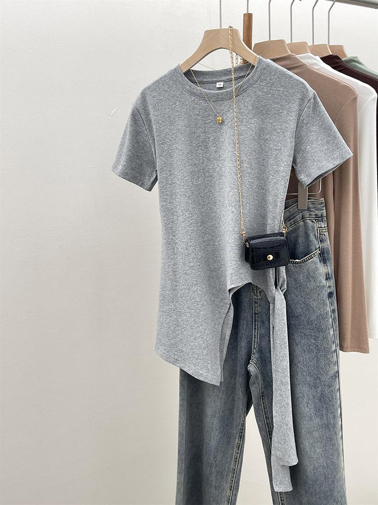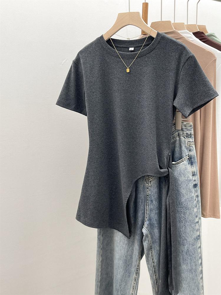 Camiseta de manga corta con tirantes finos y diseño de estación europea Sense para mujer, de algodón con cintura irregular, para verano de 2024
