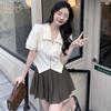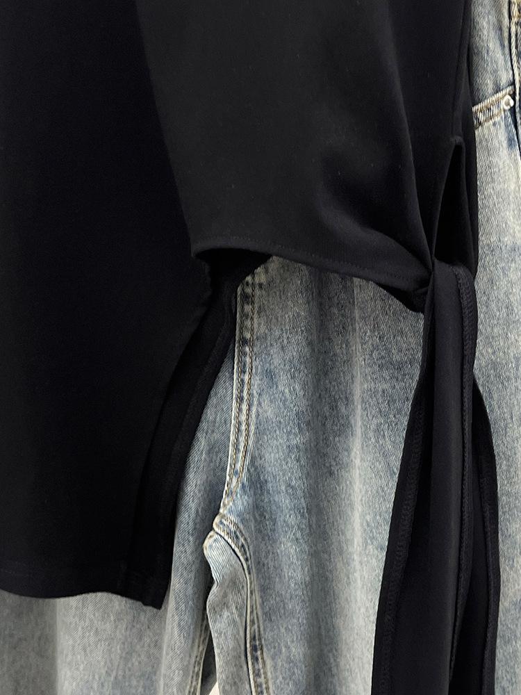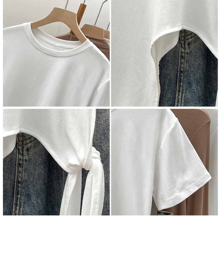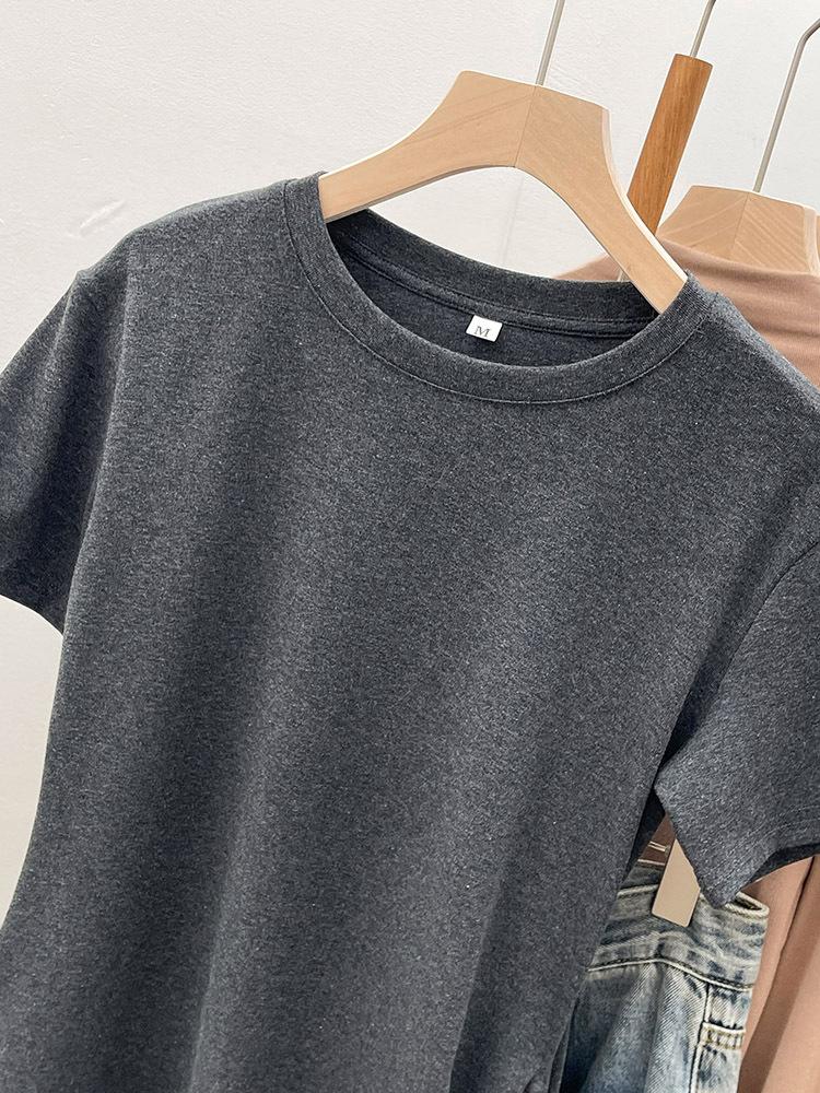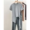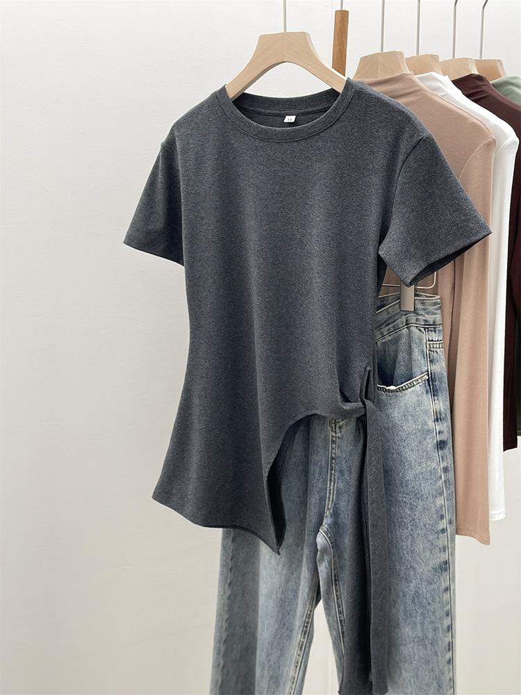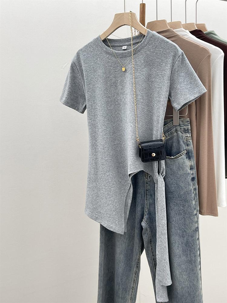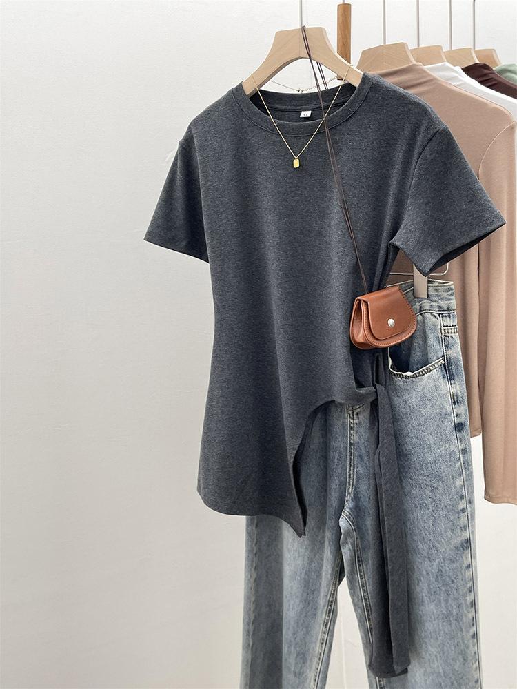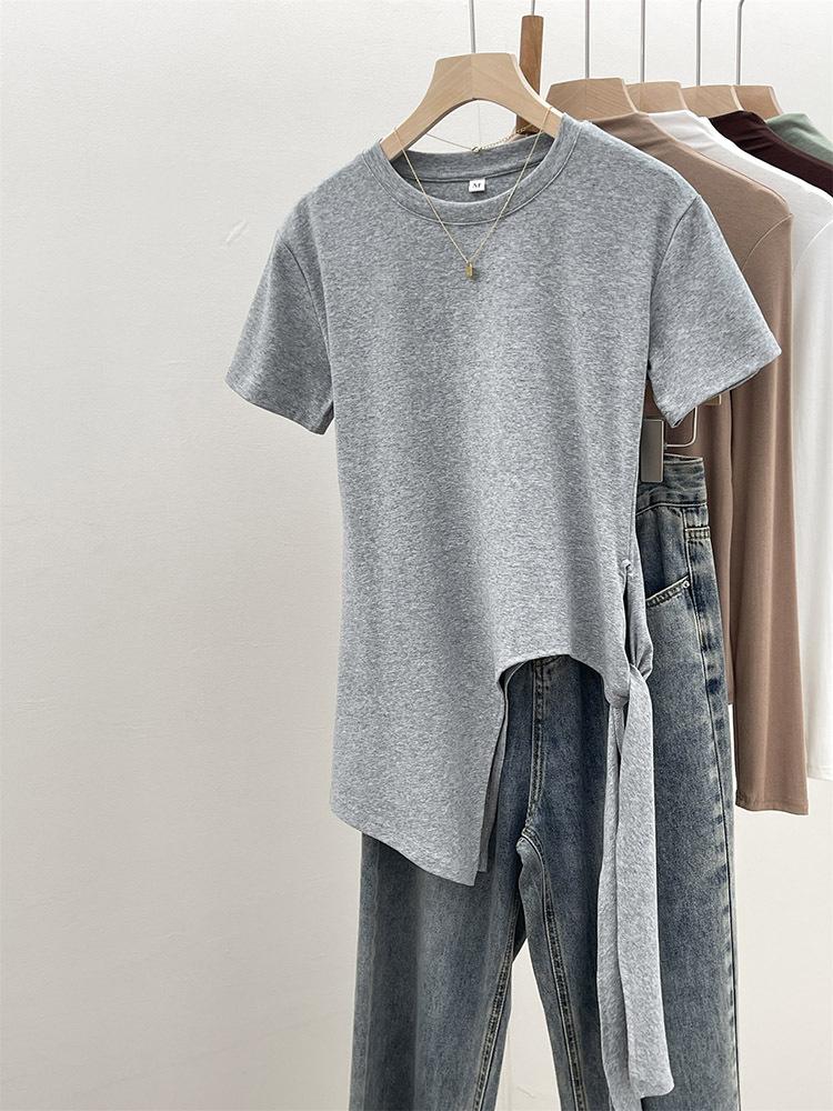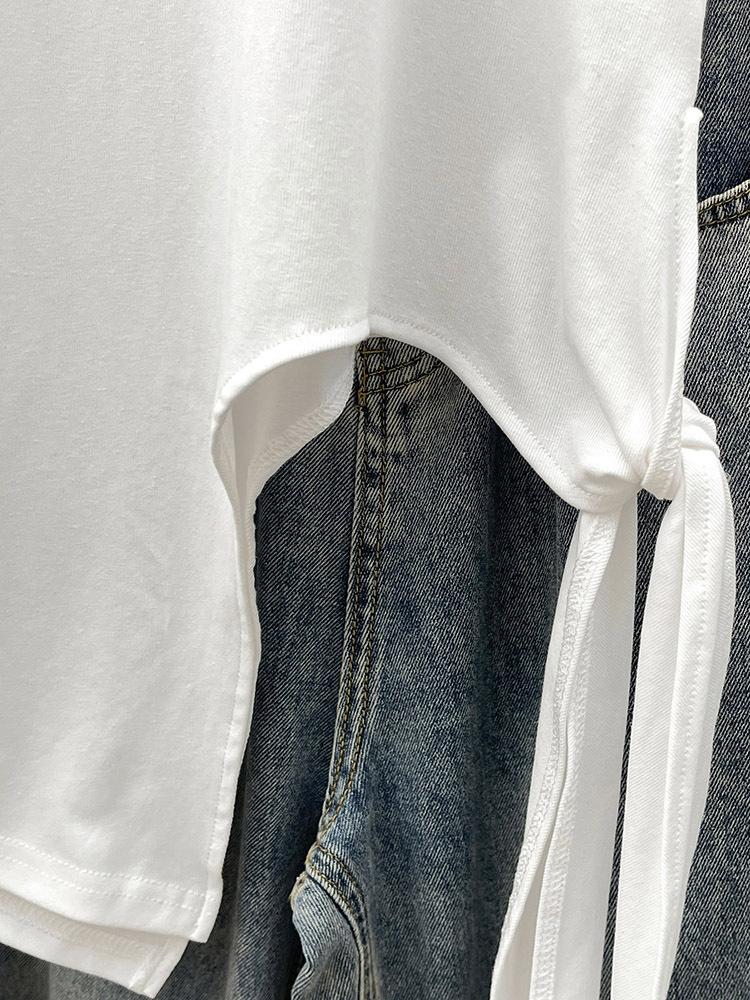 Camiseta de manga corta con tirantes finos y diseño de estación europea Sense para mujer, de algodón con cintura irregular, para verano de 2024