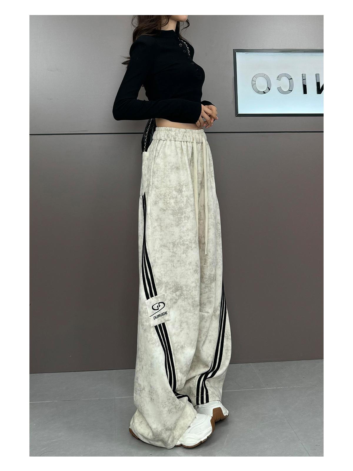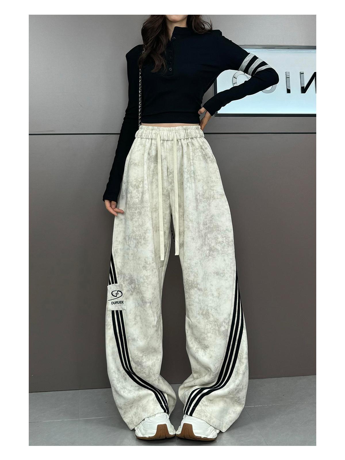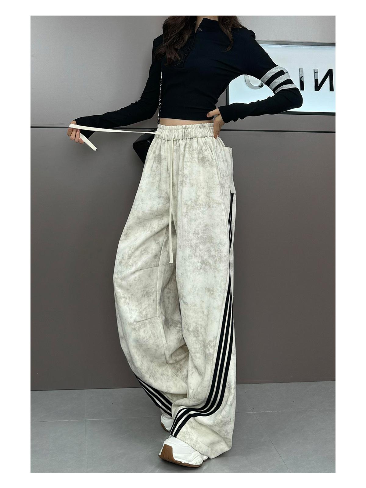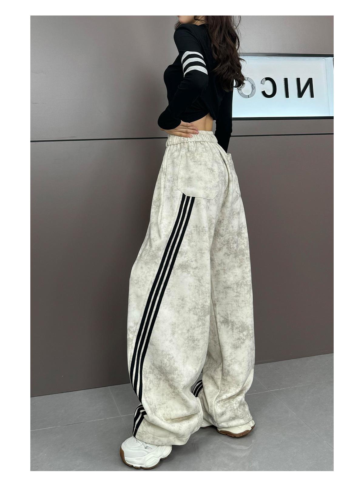 Pantalones Deportivos Tie-Dye Americanos para Mujer Otoño e Invierno Nuevos Pantalones Deportivos de Tres Barras Pantalones Casuales para Mujer Pantalones Holgados de Pierna Ancha