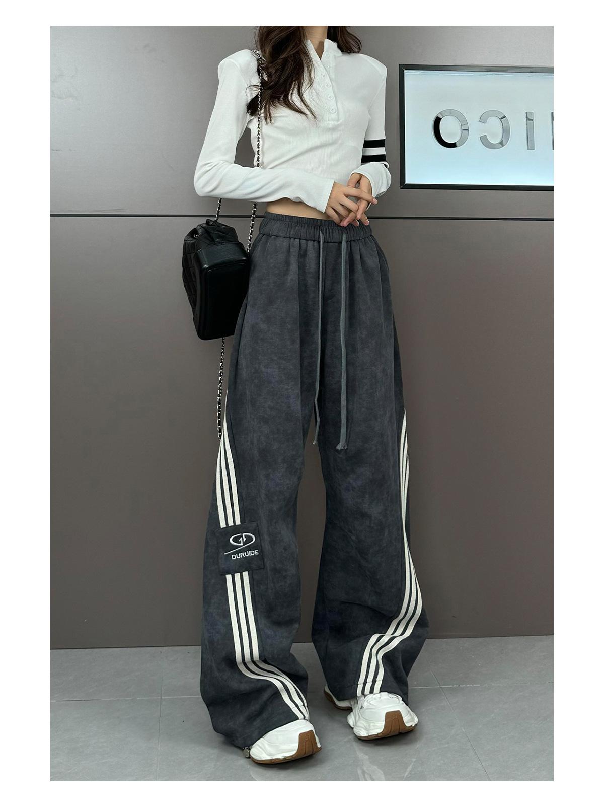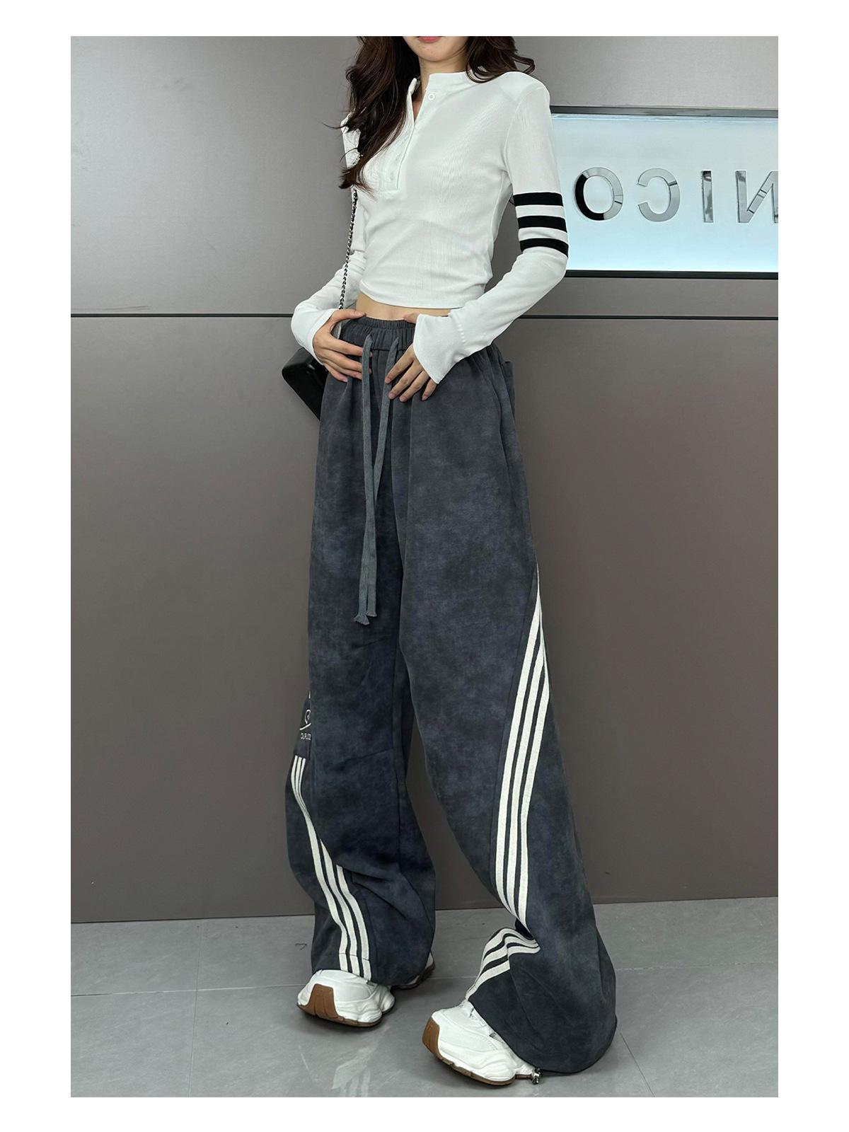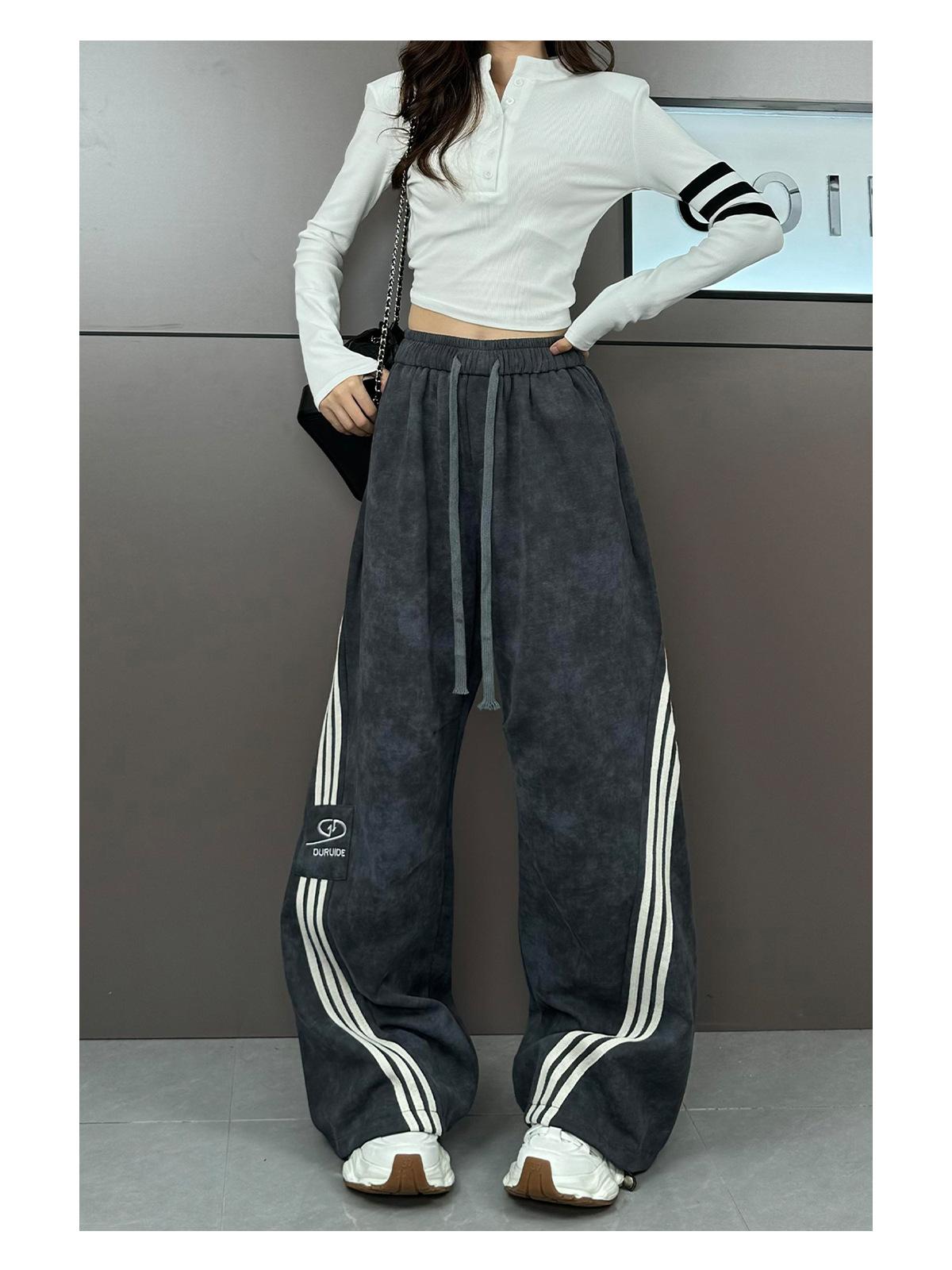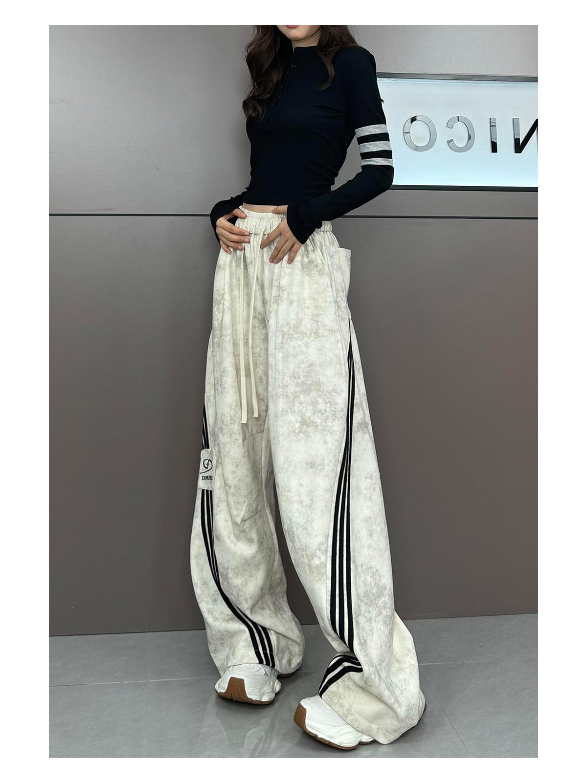 Pantalones Deportivos Tie-Dye Americanos para Mujer Otoño e Invierno Nuevos Pantalones Deportivos de Tres Barras Pantalones Casuales para Mujer Pantalones Holgados de Pierna Ancha