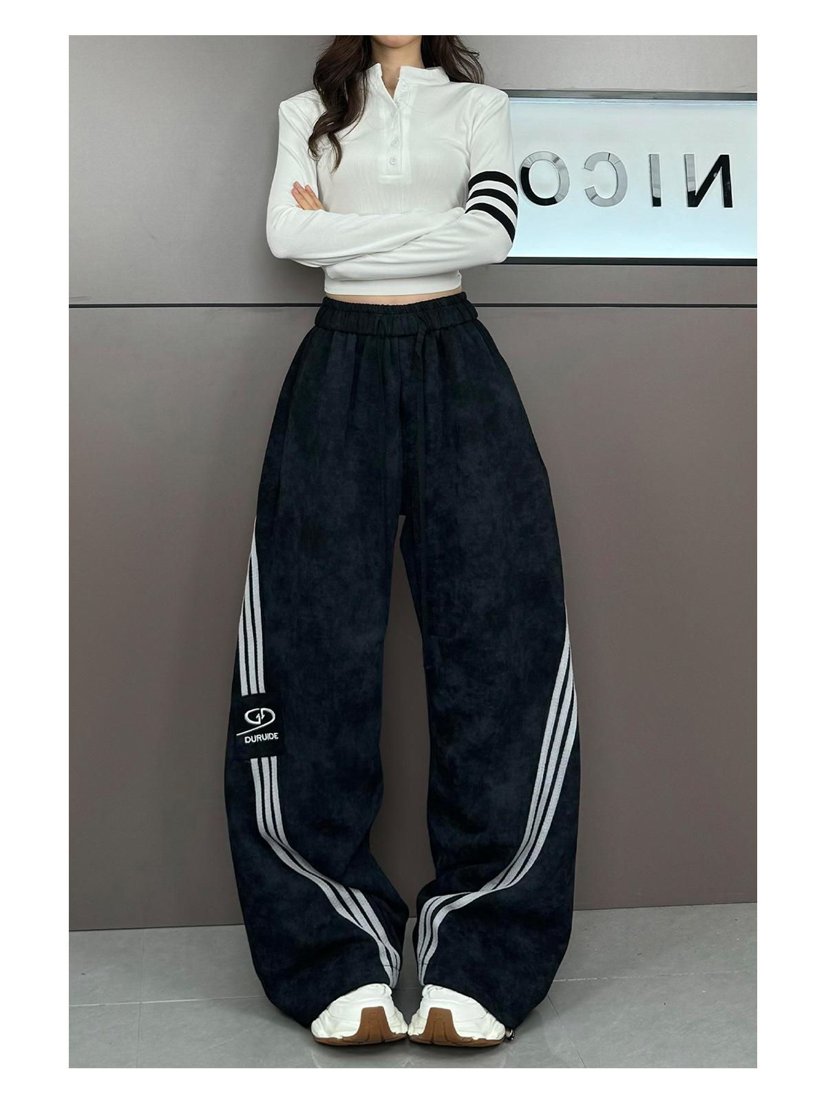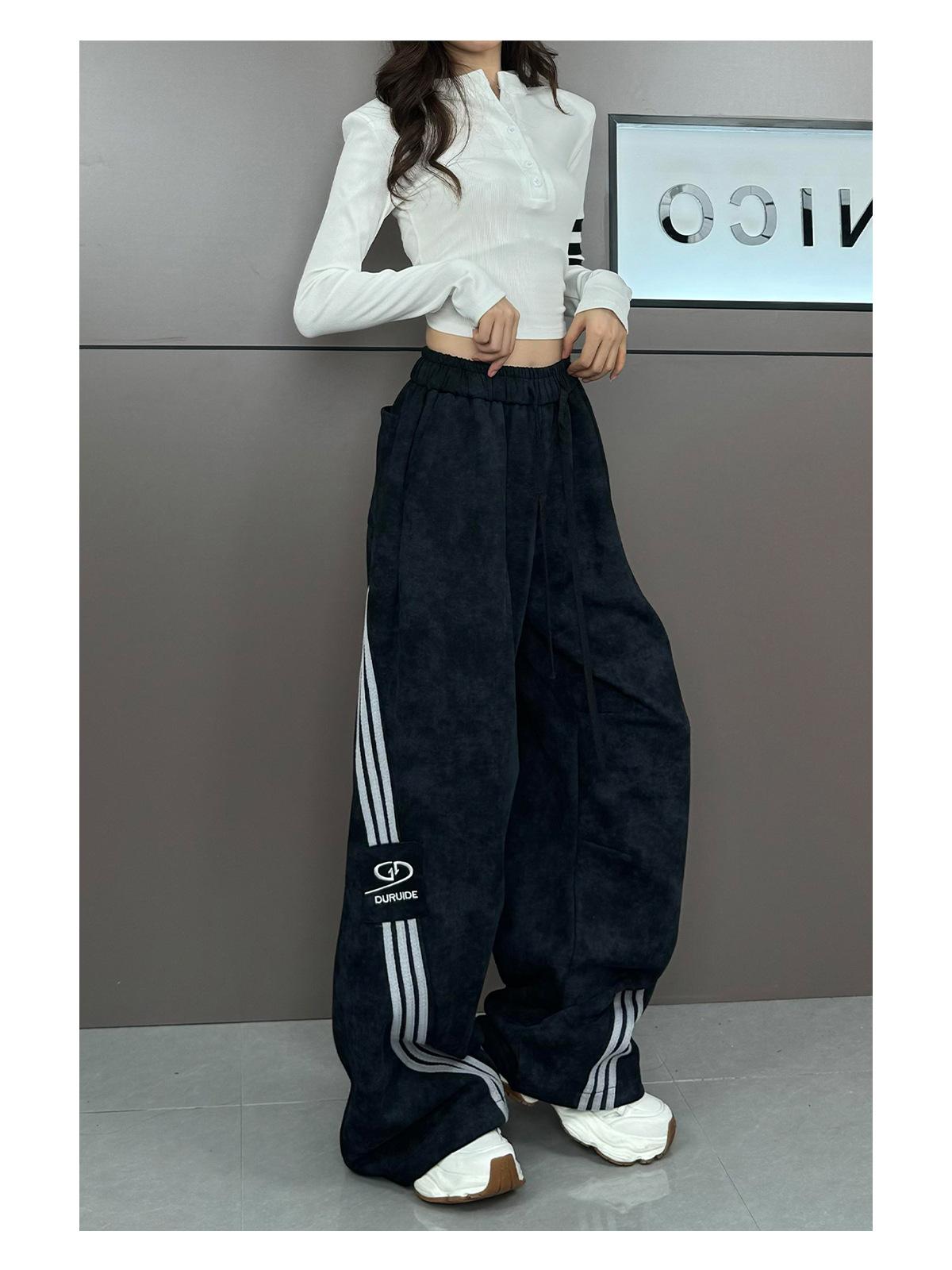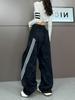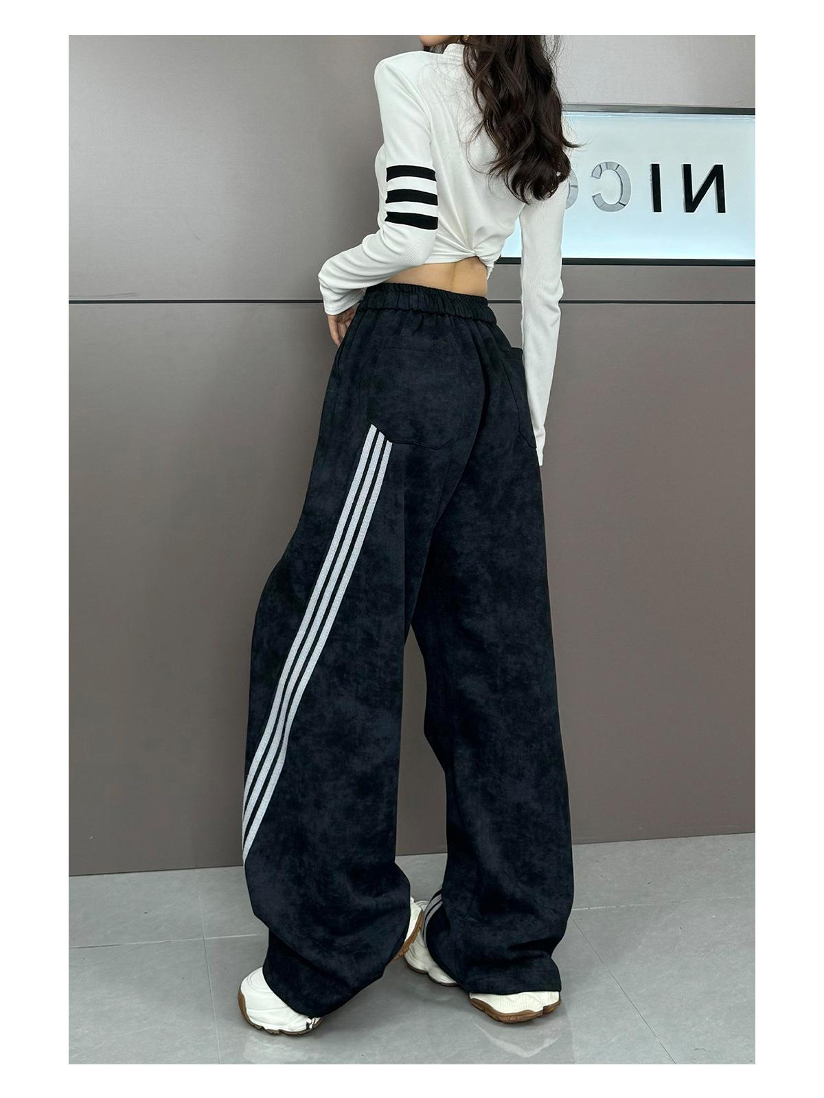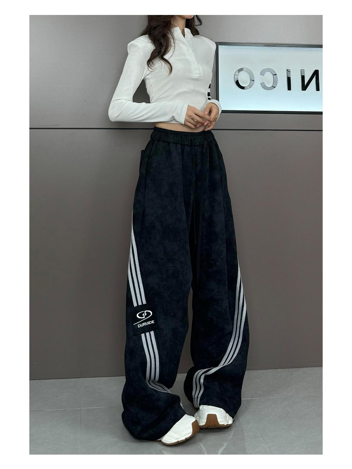 Pantalones Deportivos Tie-Dye Americanos para Mujer Otoño e Invierno Nuevos Pantalones Deportivos de Tres Barras Pantalones Casuales para Mujer Pantalones Holgados de Pierna Ancha
