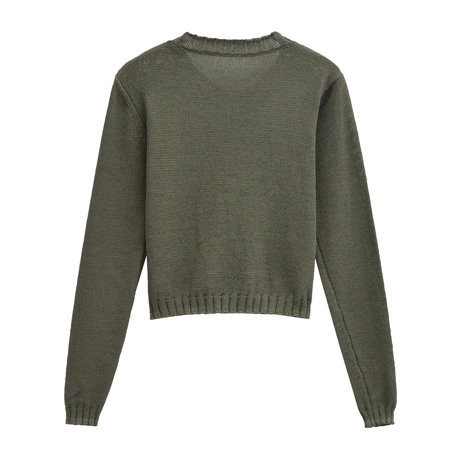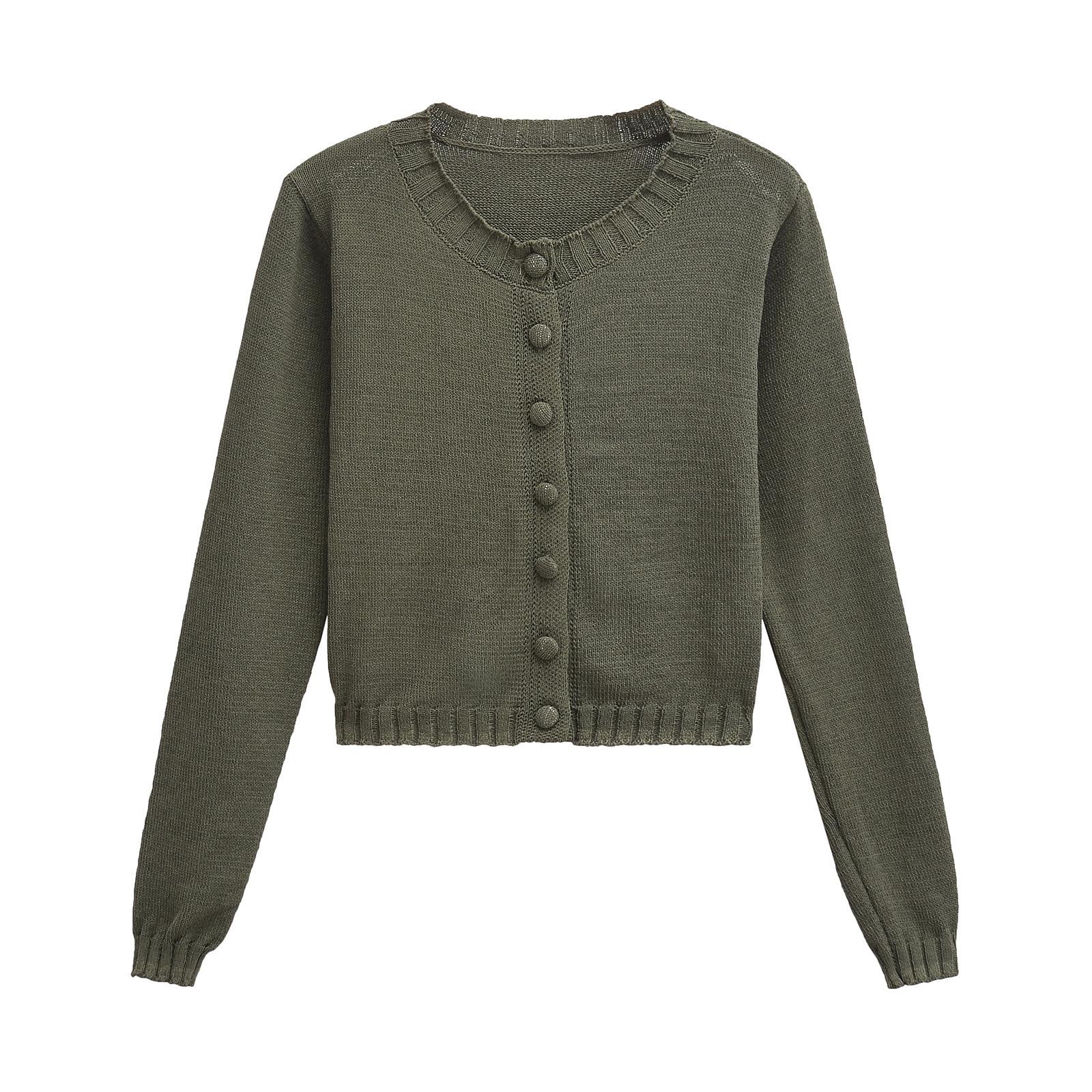 Abrigo de manga larga de punto sencillo con cuello redondo de nueva moda otoño e invierno 2024 para mujer europea y americana de comercio exterior transfronterizo de Amazon