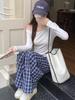 Dulce y Picante Deseo Puro Hombro con Cuello Inclinado Sexy Slim Manga Larga Camiseta para Mujer Nuevo Otoño Temprano 2024 Top Slim Combinable