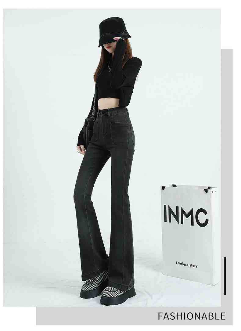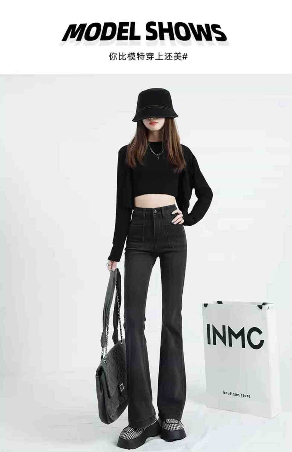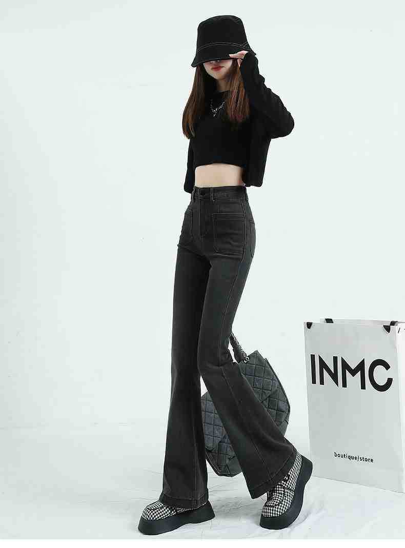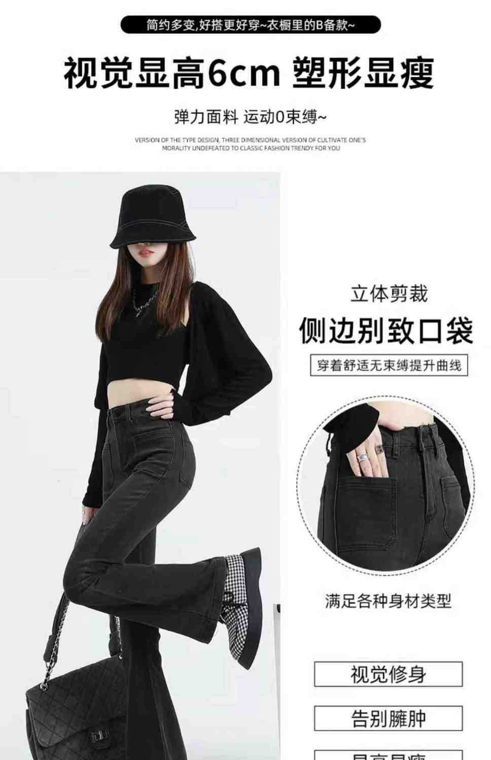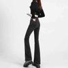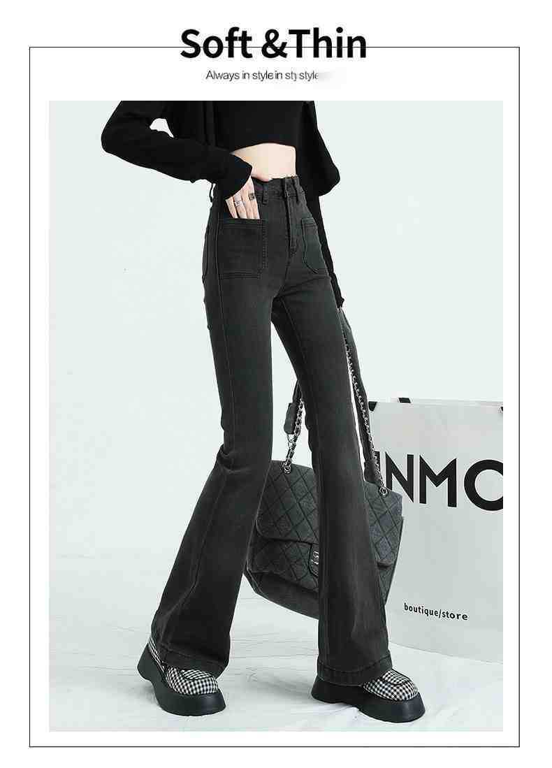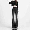 Pantalones vaqueros Micro-La para mujer, primavera y otoño 2024, nuevos, de cintura alta, ajustados, negros y grises, con pequeño elástico y acampanado para niños.