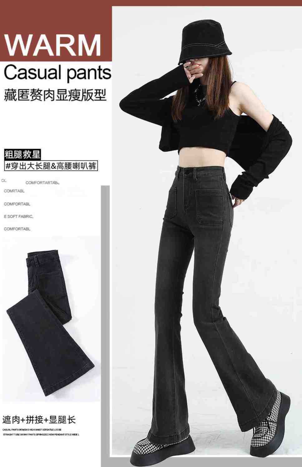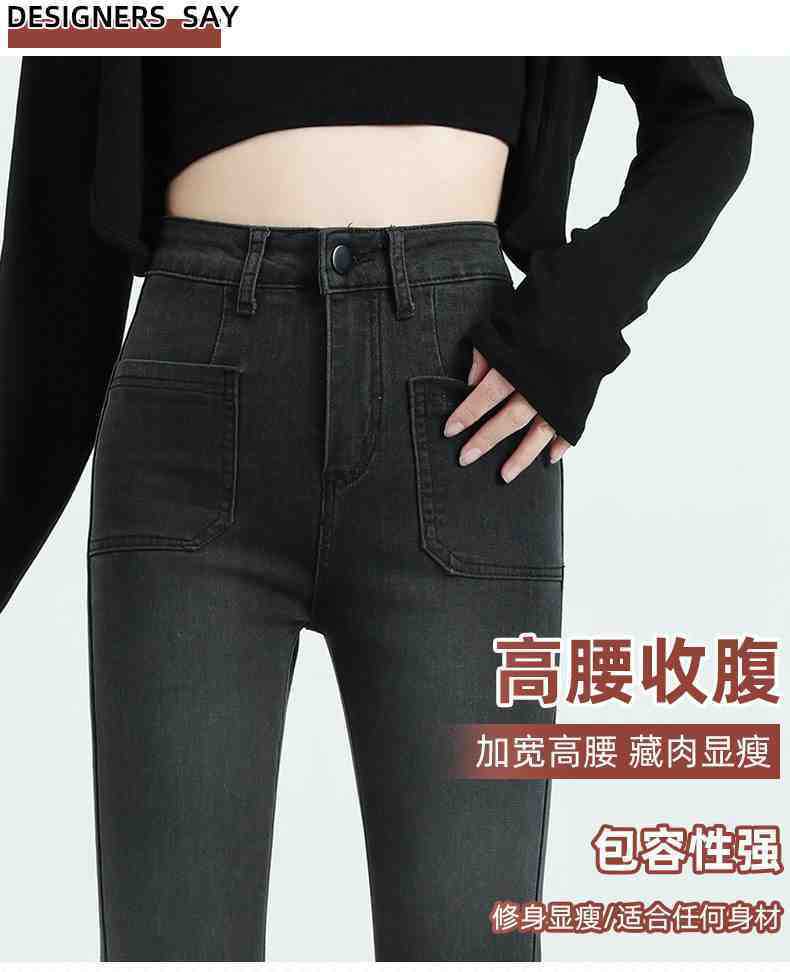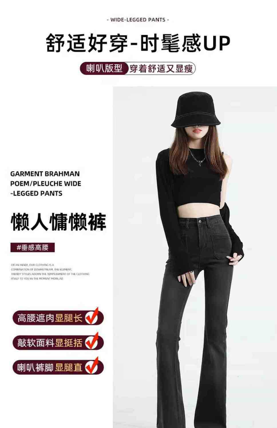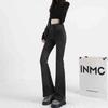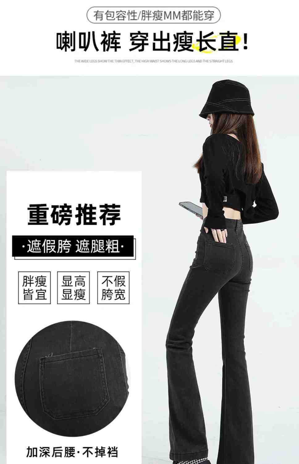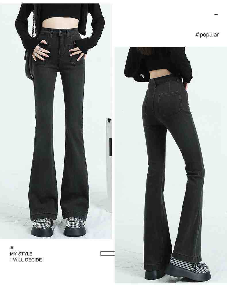 Pantalones vaqueros Micro-La para mujer, primavera y otoño 2024, nuevos, de cintura alta, ajustados, negros y grises, con pequeño elástico y acampanado para niños.
