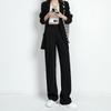 Pantalones negros de cintura alta y pierna ancha para mujer, novedad de 2022, pantalones de traje casuales, holgados, ajustados y verticales, de tubo recto