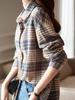 Otoño e Invierno 2024 Nueva Camisa Holgada Sencilla de Hombro de Manga Larga con Botonadura Simple para Mujer de Buena Calidad Camisa de Cuadros Lijada