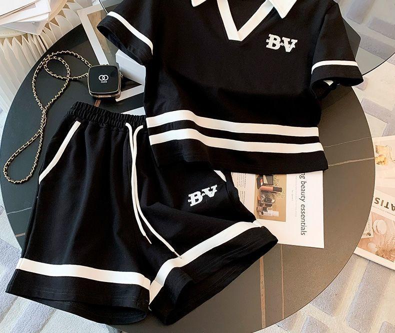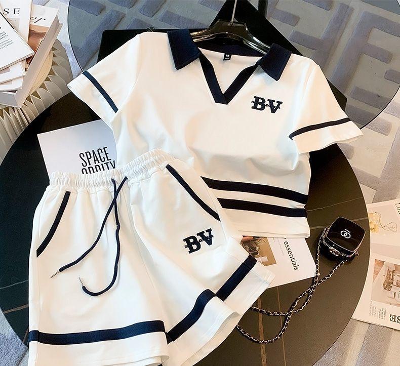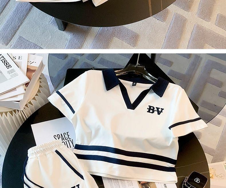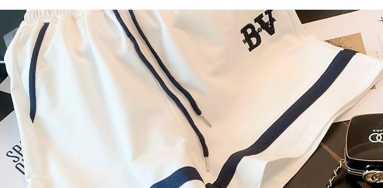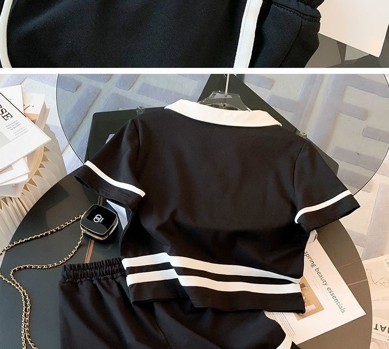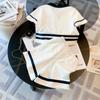 Traje deportivo de calle con base de sal para mujer, verano 2023, nuevo estilo, estilo extranjero, pantalones cortos casuales europeos de alta gama, conjunto de dos piezas.