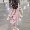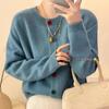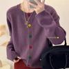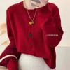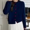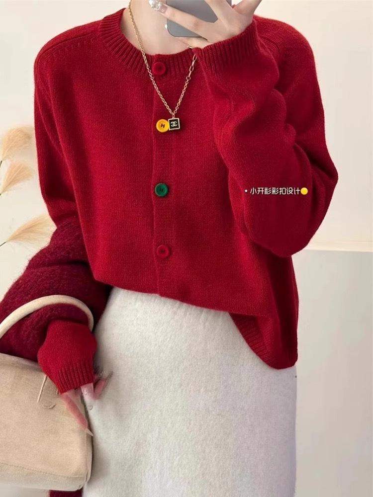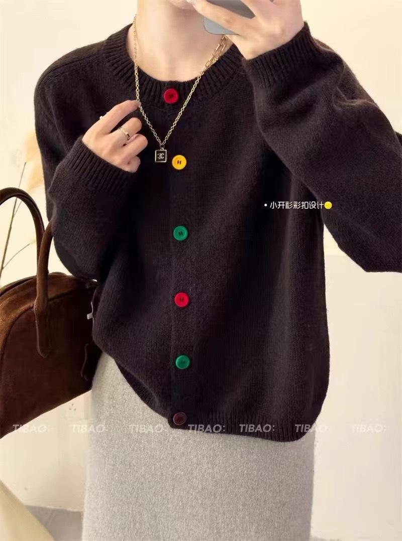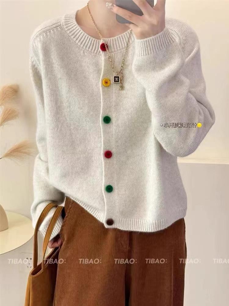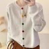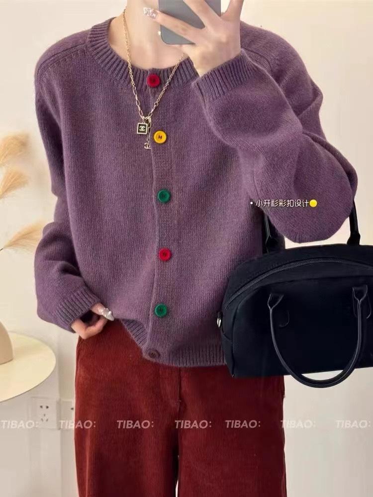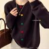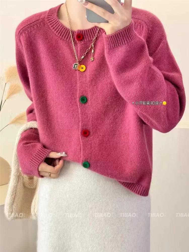 Cárdigan de punto coreano rejuvenecedor arcoíris de un solo botón cuello redondo nuevo para principios de otoño estilo perezoso nicho suéter rosa