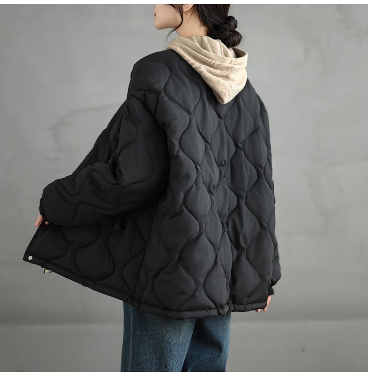 Toma real 2024 nueva chaqueta de invierno acolchada de algodón para mujer talla grande chaqueta acolchada de algodón de otoño e invierno acolchada de algodón celosía de rombos