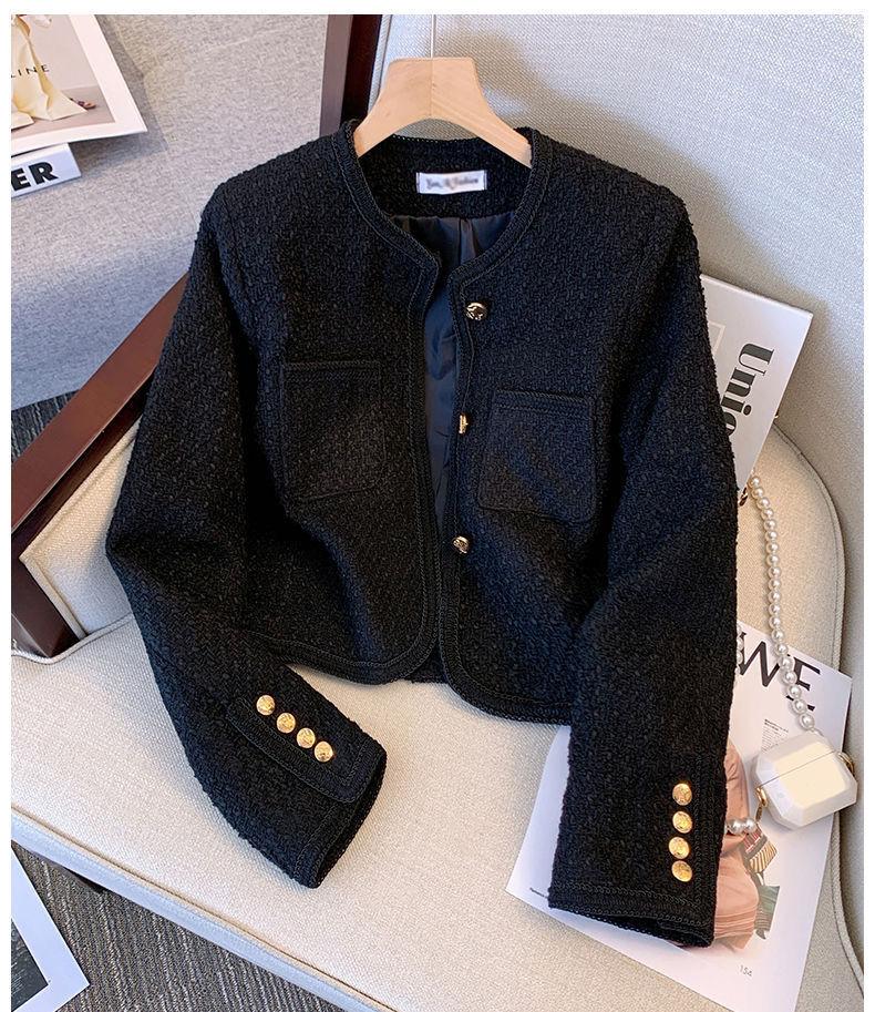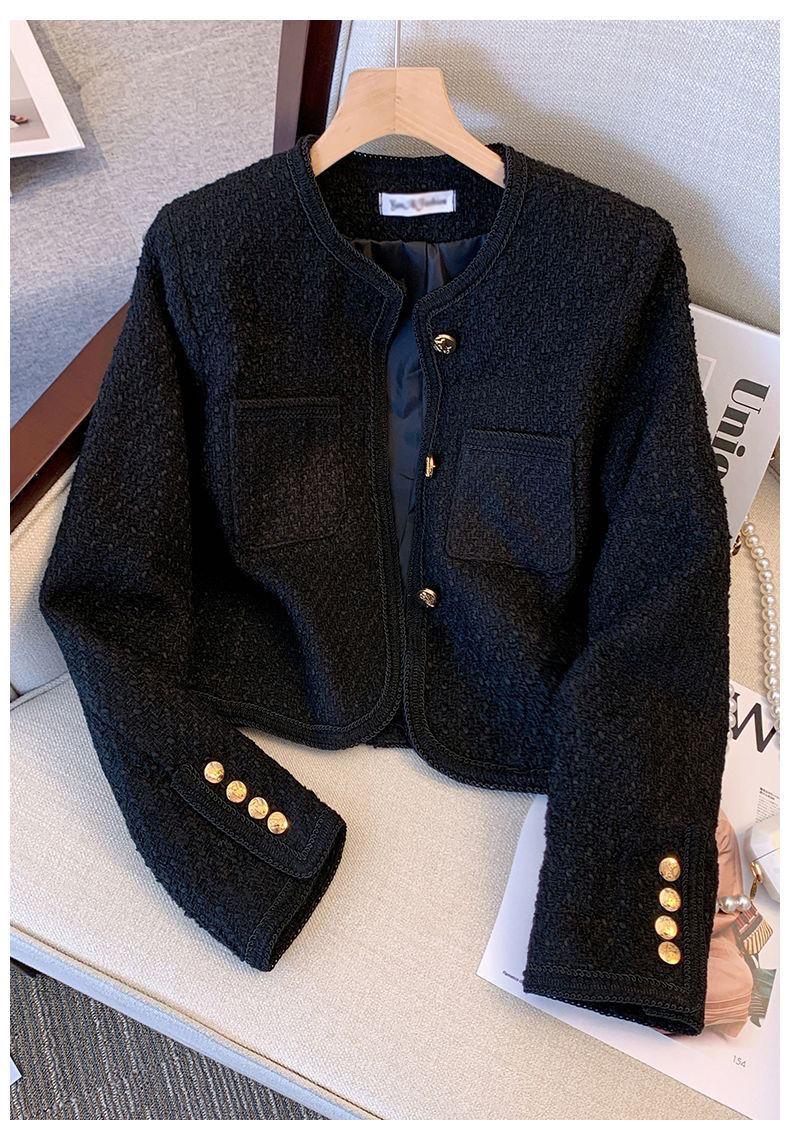 Chaqueta Corta Negra Estilo Pequeño Fragante para Mujer Otoño e Invierno 2025 Nuevo Estilo Estilo Madurez Ligera Traje de Dama