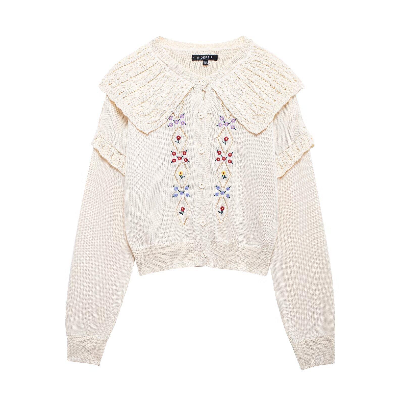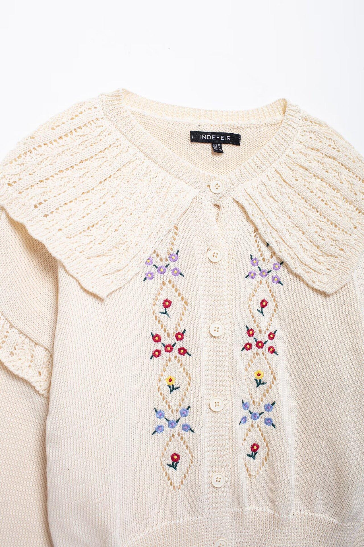 Suéter de punto bordado con temperamento nuevo de moda otoño e invierno 2024 para mujeres europeas y americanas de comercio exterior transfronterizo de Amazon