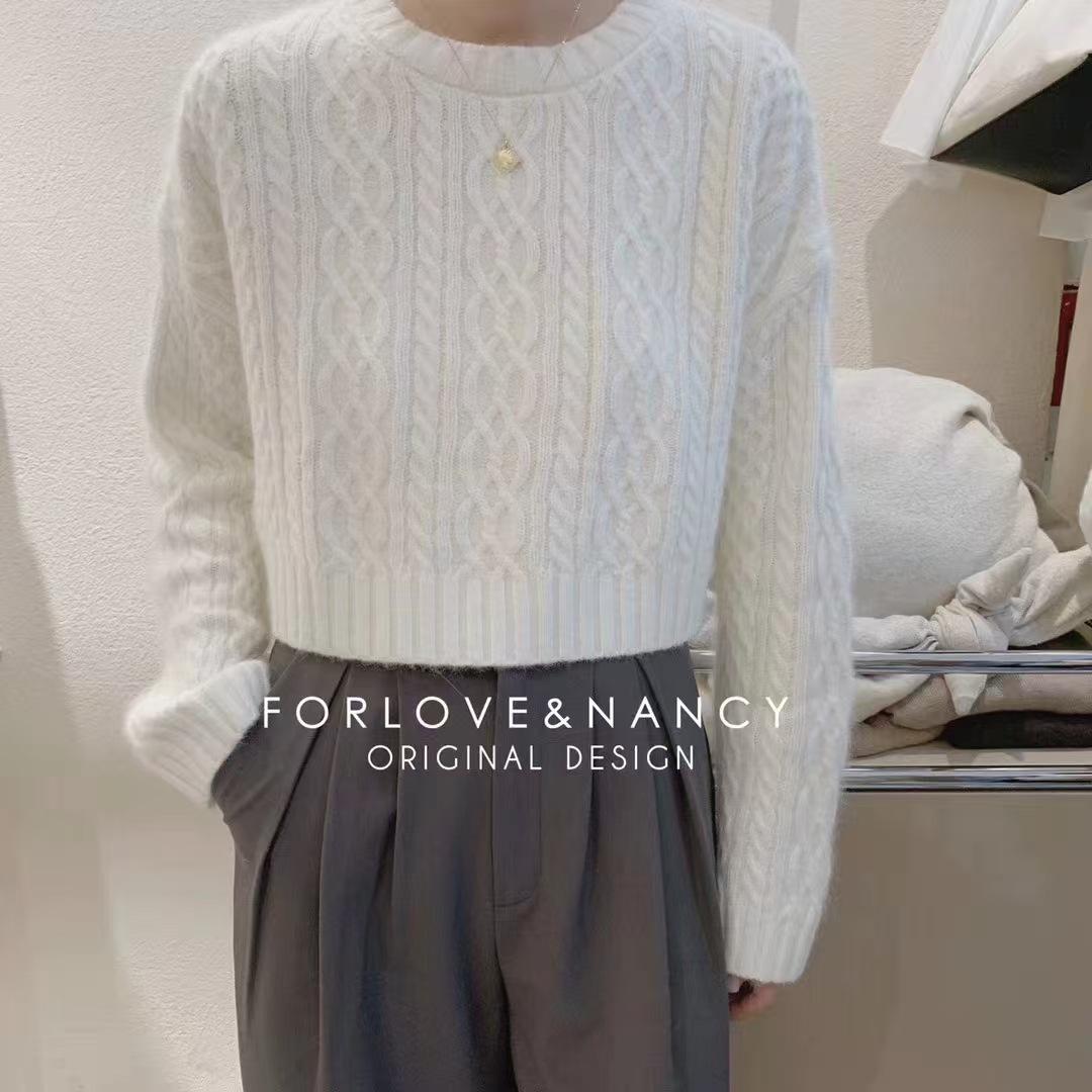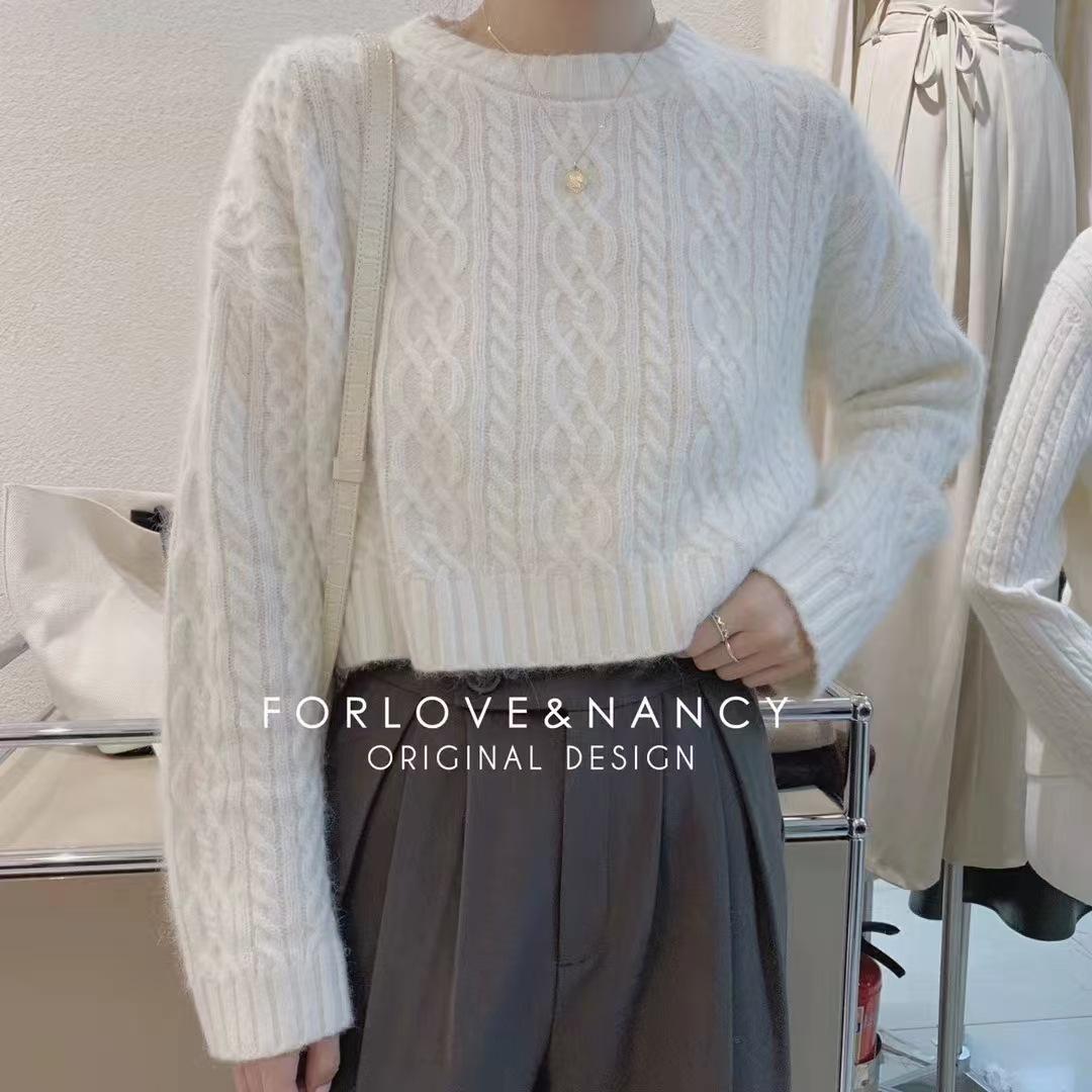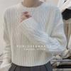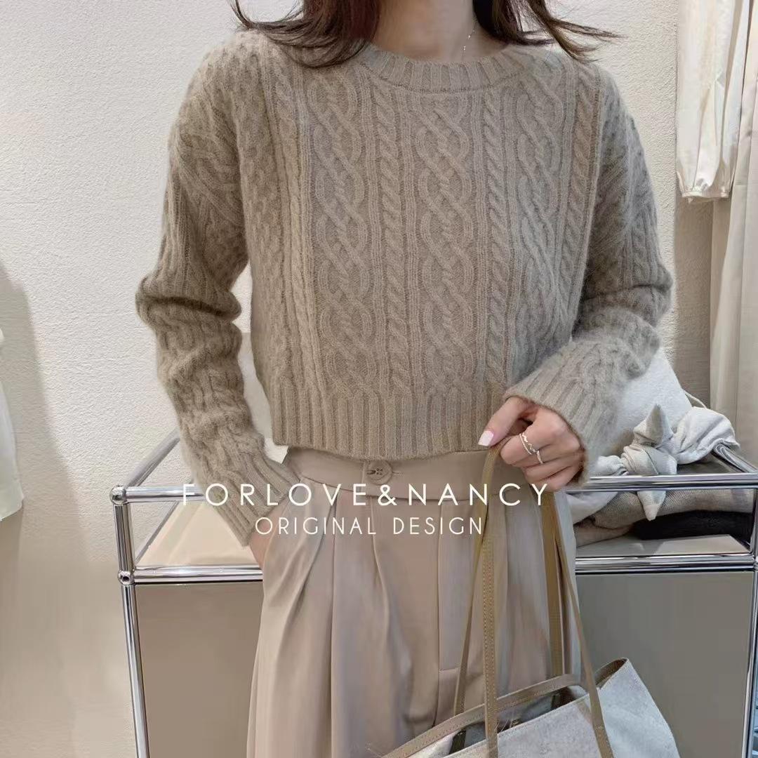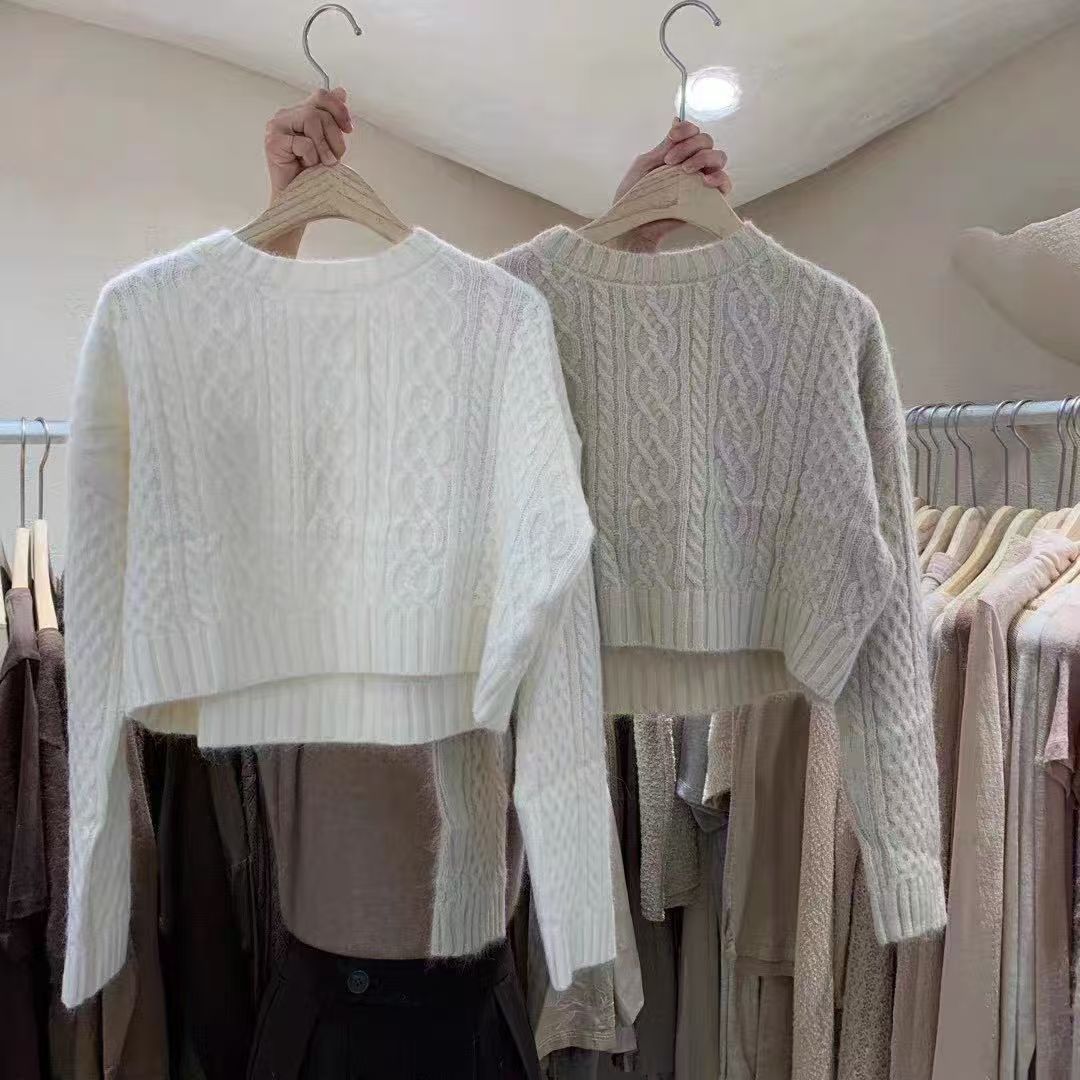 Suéter corto de lana virgen gruesa para mujer, otoño e invierno, combina con todo, cuello redondo, manga larga, suéter de moda, camisa de base de cachemira, tendencia