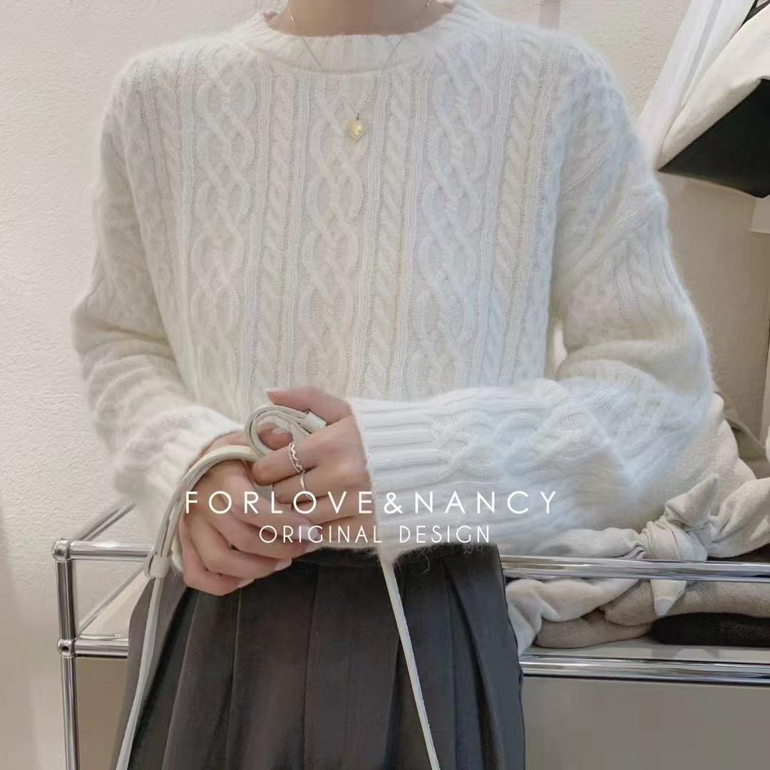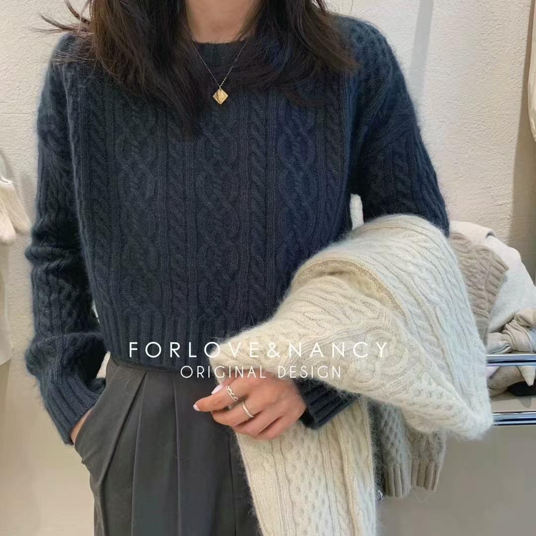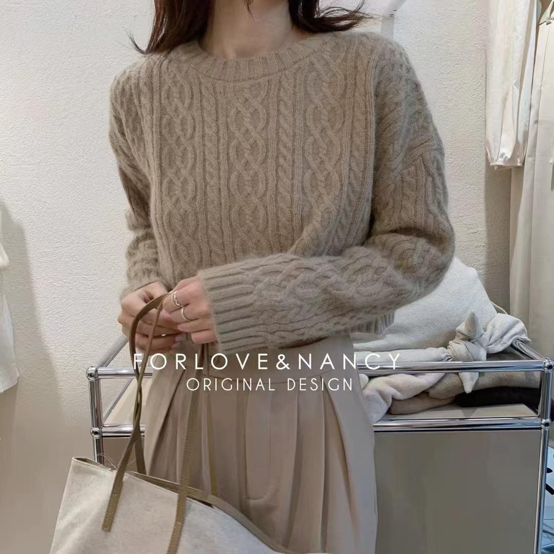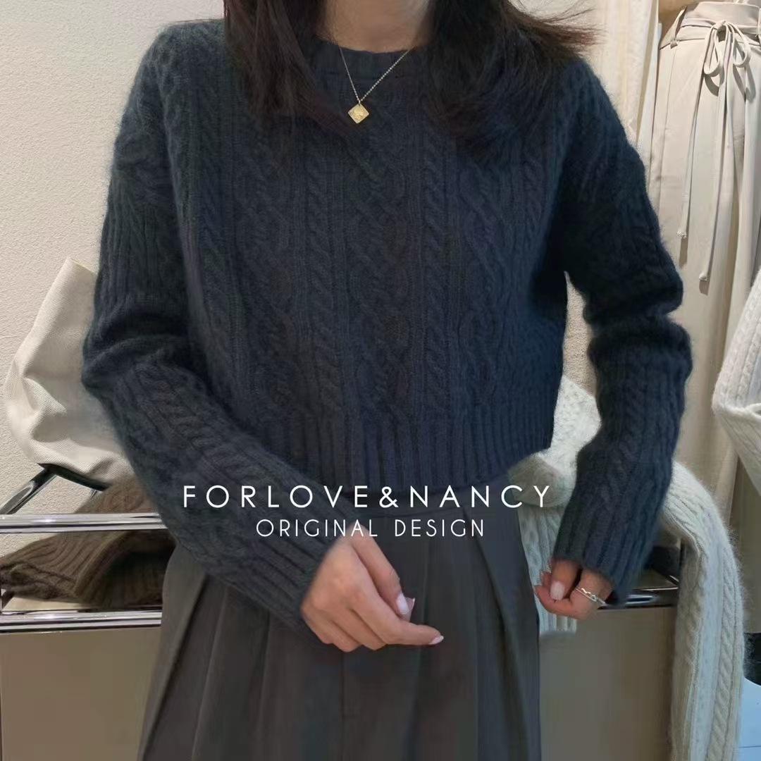 Suéter corto de lana virgen gruesa para mujer, otoño e invierno, combina con todo, cuello redondo, manga larga, suéter de moda, camisa de base de cachemira, tendencia