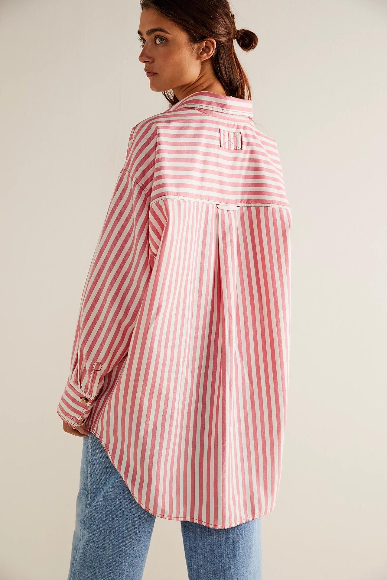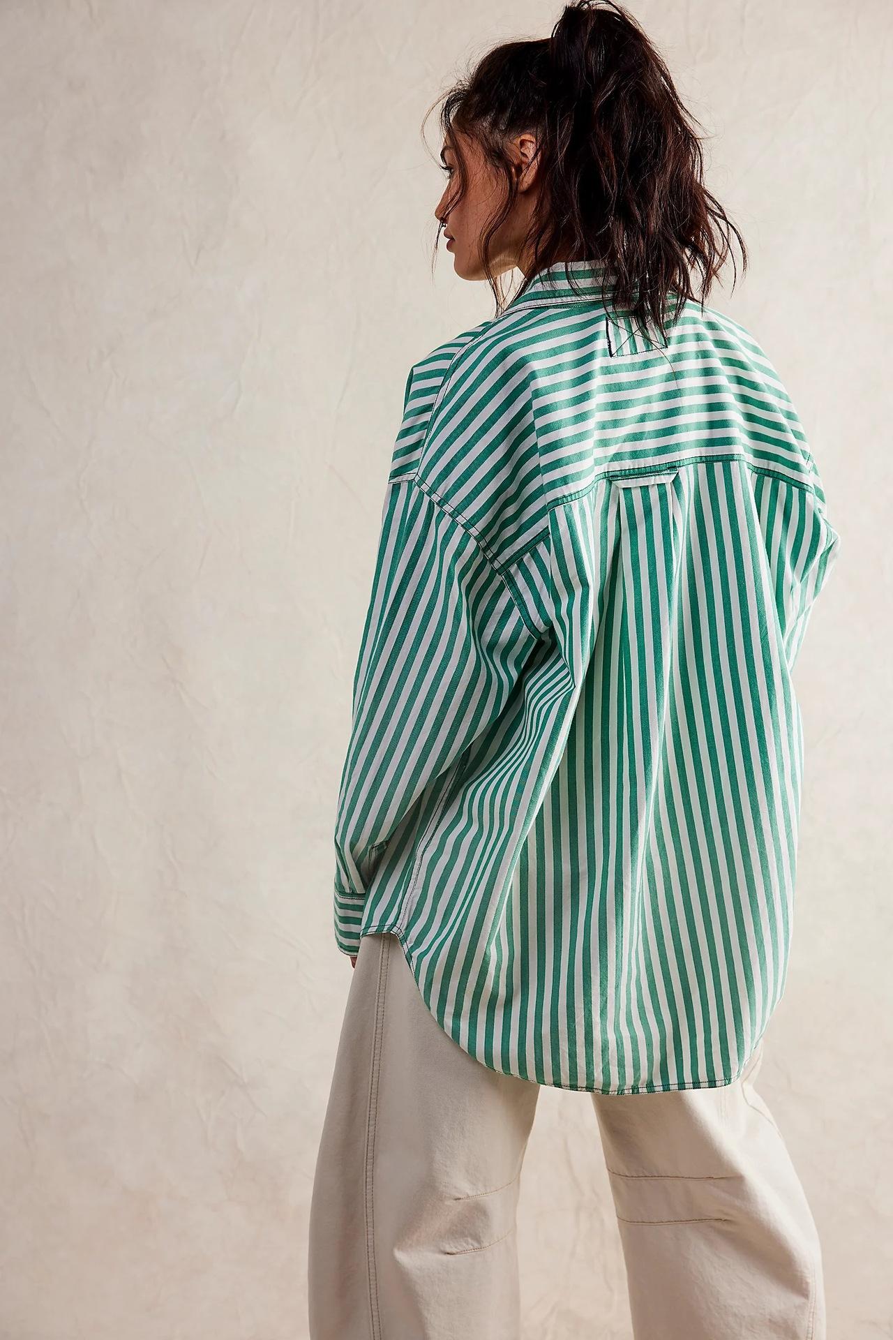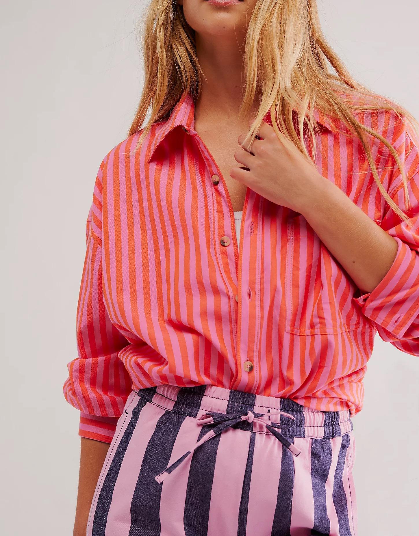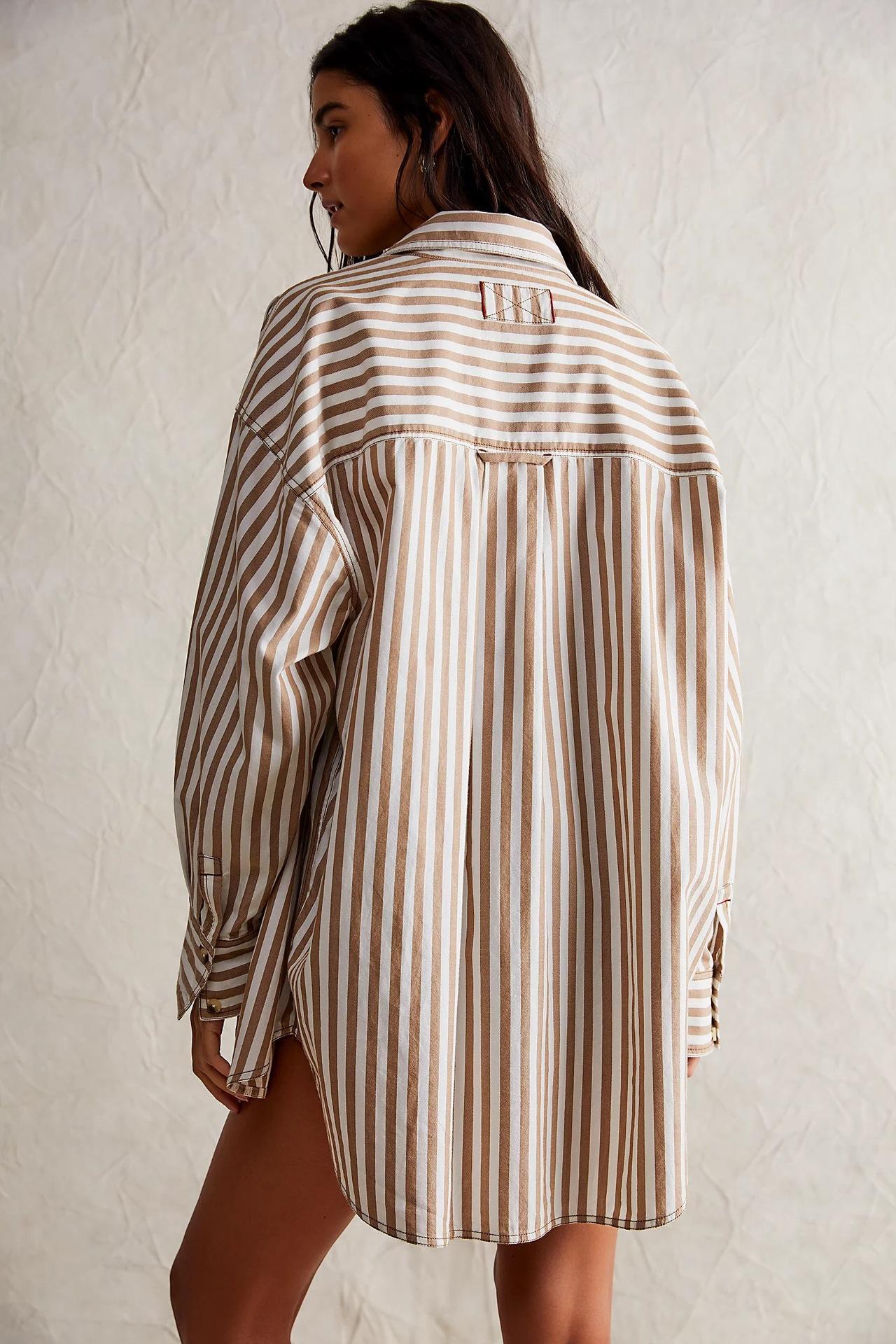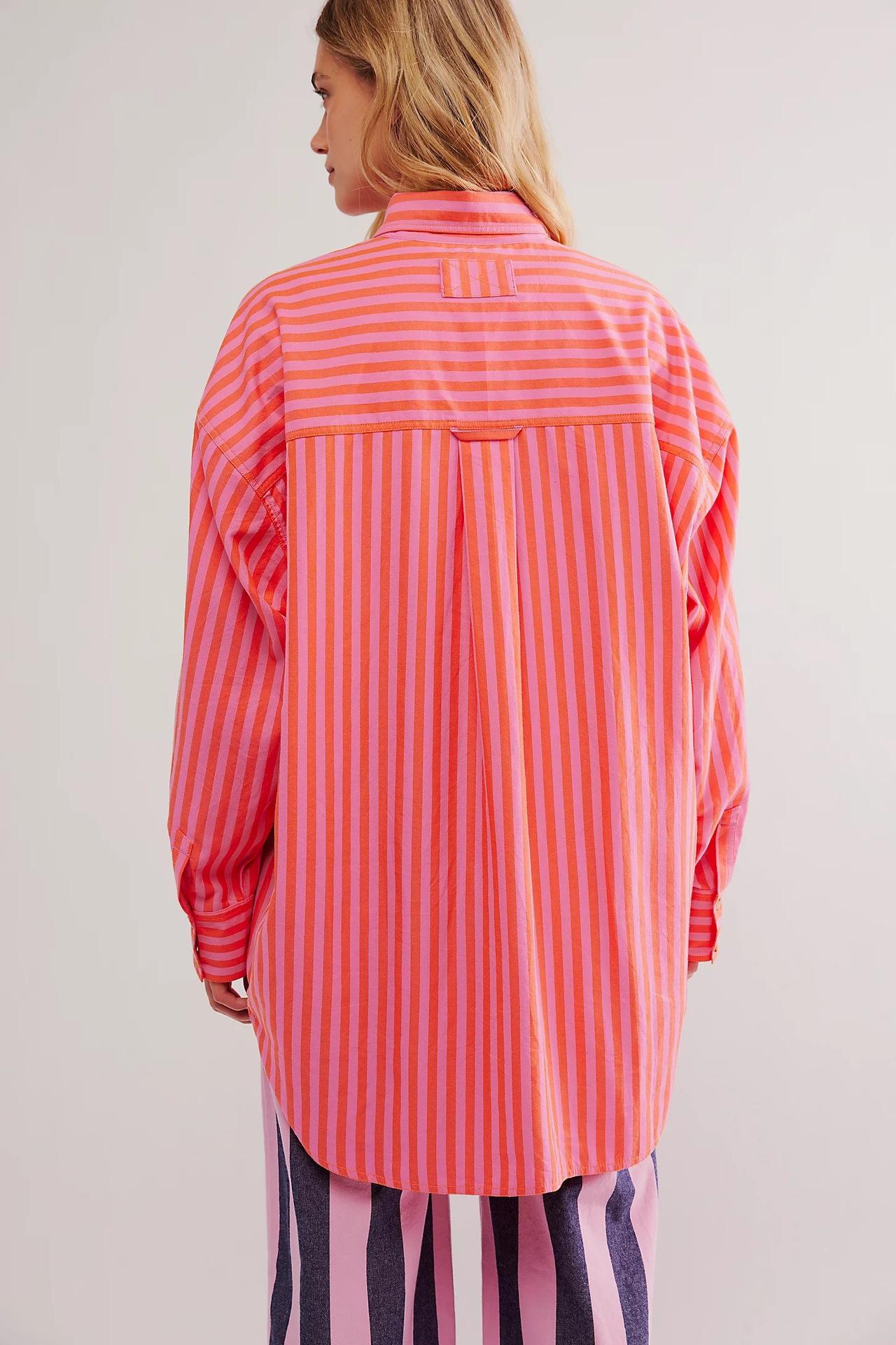 Europeo y Americano Transfronterizo 2024 Nuevo Amazon Estilo Occidental Combinable Holgado Casual Rayado Largo Medio Manga Larga Camisa Abotonada