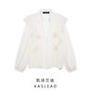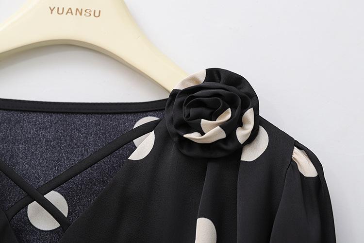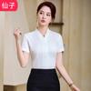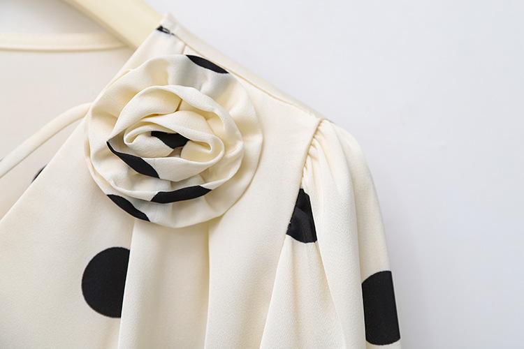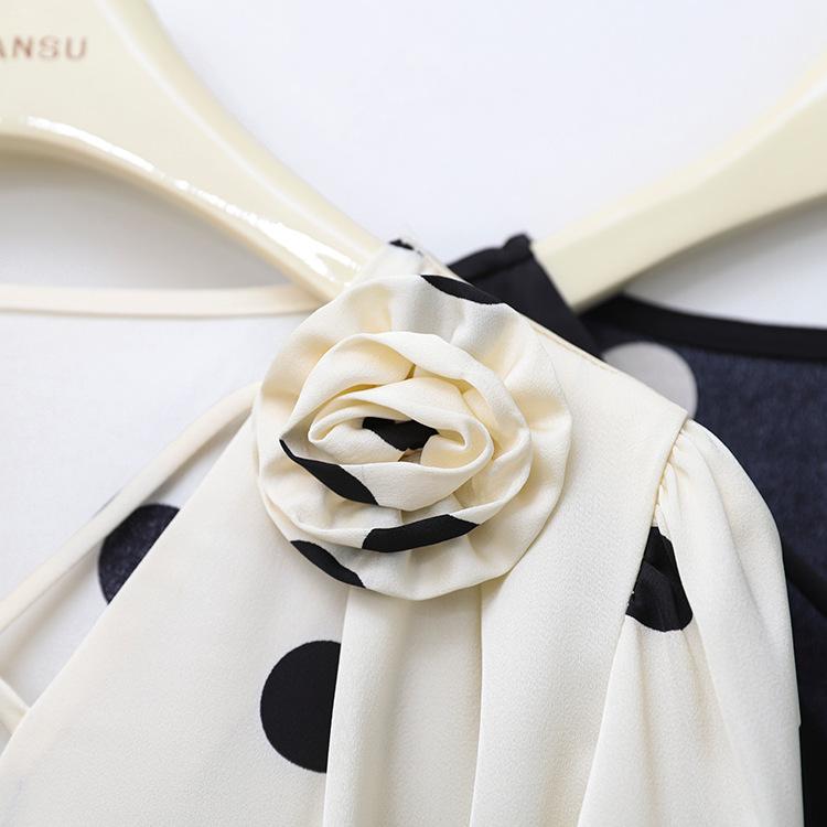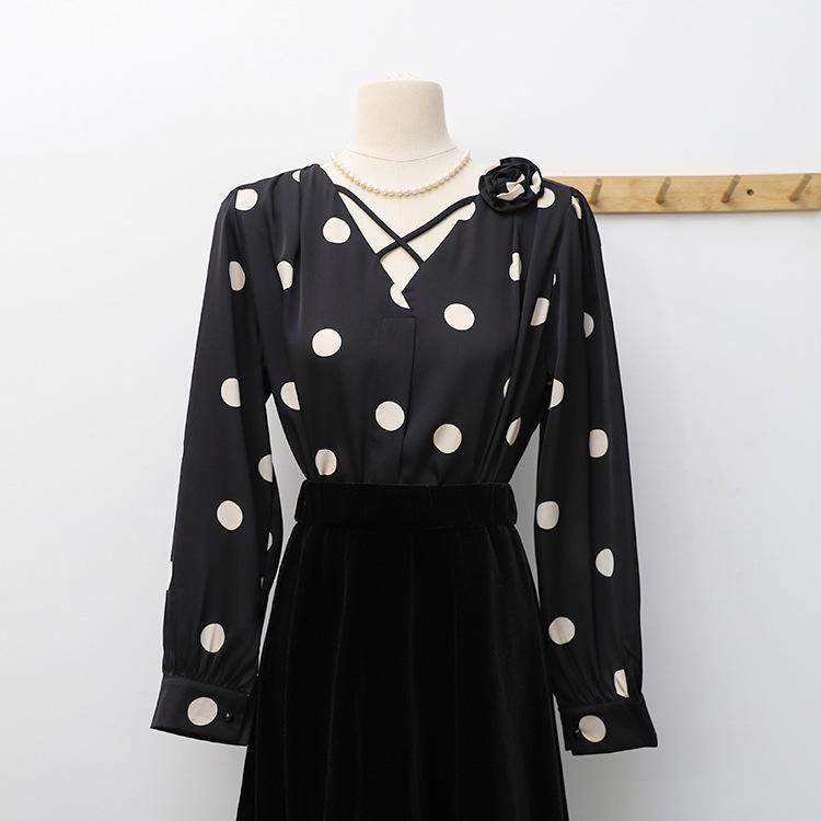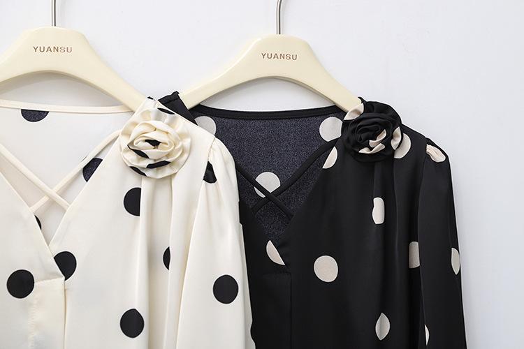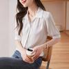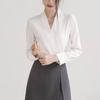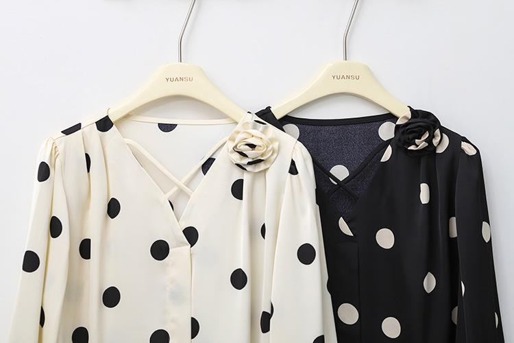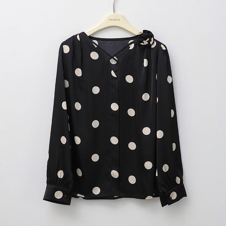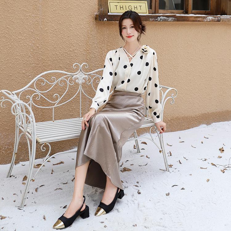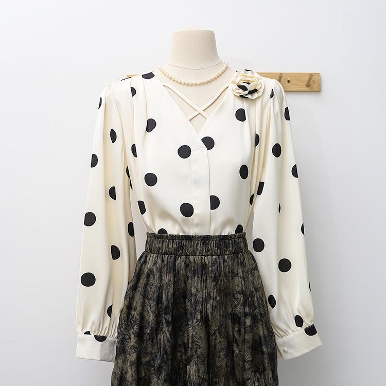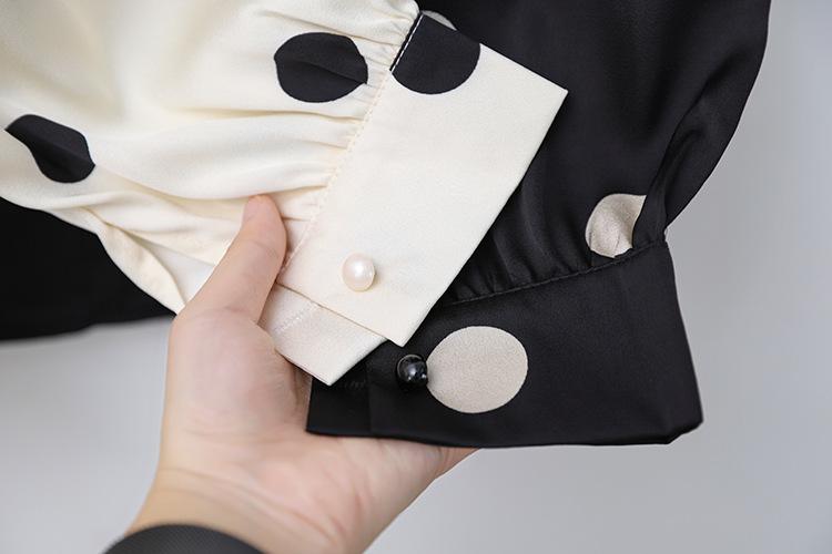 Ropa de Trabajo Ligera de Estilo Profesional Corte en V con Abertura Top de Lunares para Mujer Primavera y Verano 2025 Camisa Elegante de Satén de Acetato de Imitación