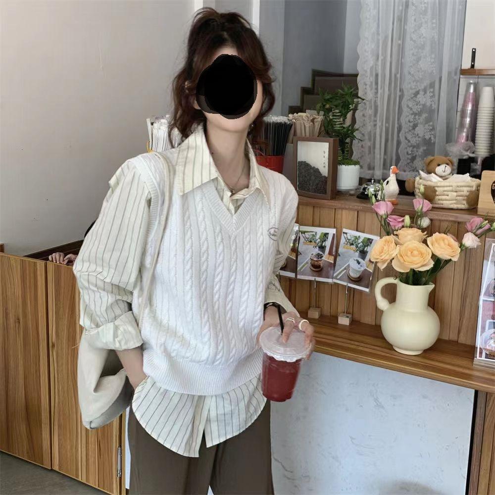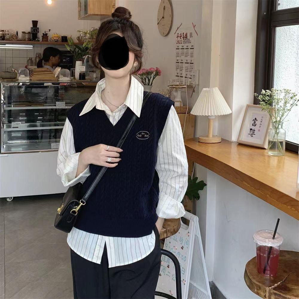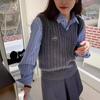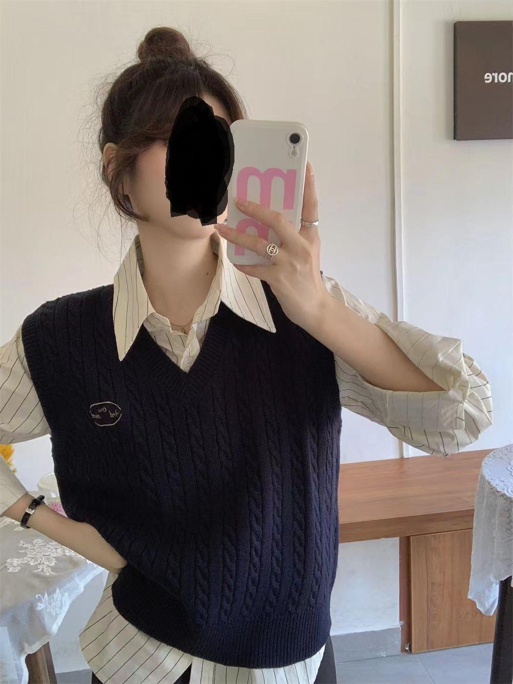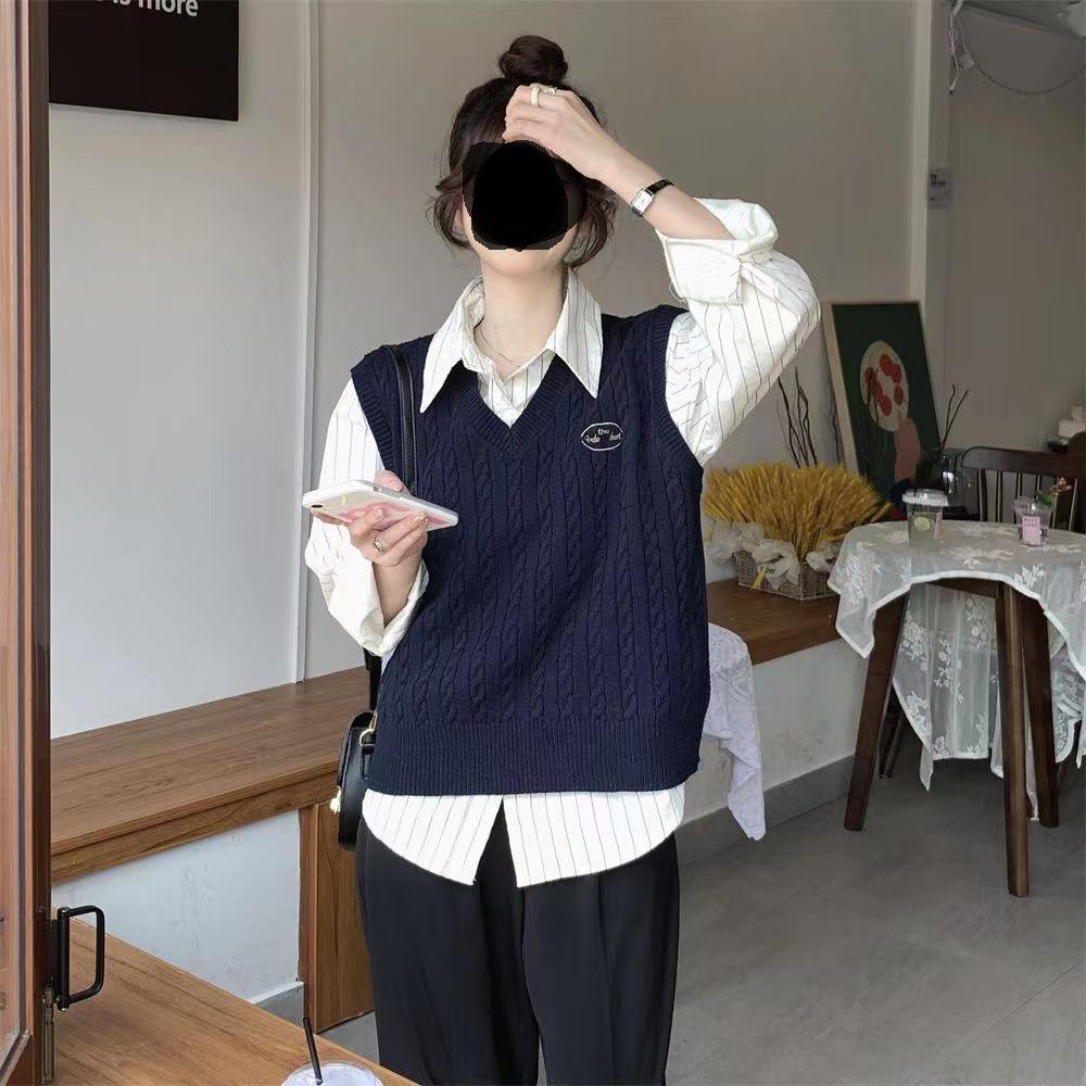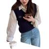 Chaleco de punto con cuello en V estilo universitario para mujer, suéter retro sin mangas apilado de principios de otoño de 2024, top exterior