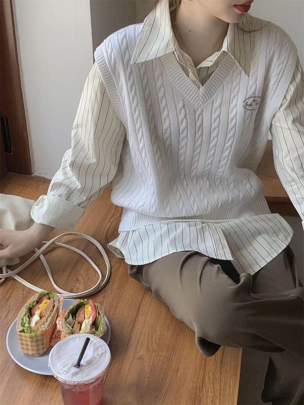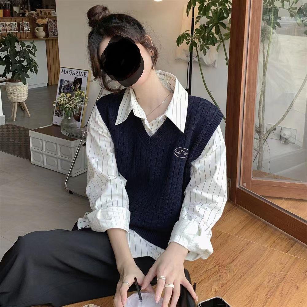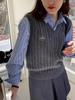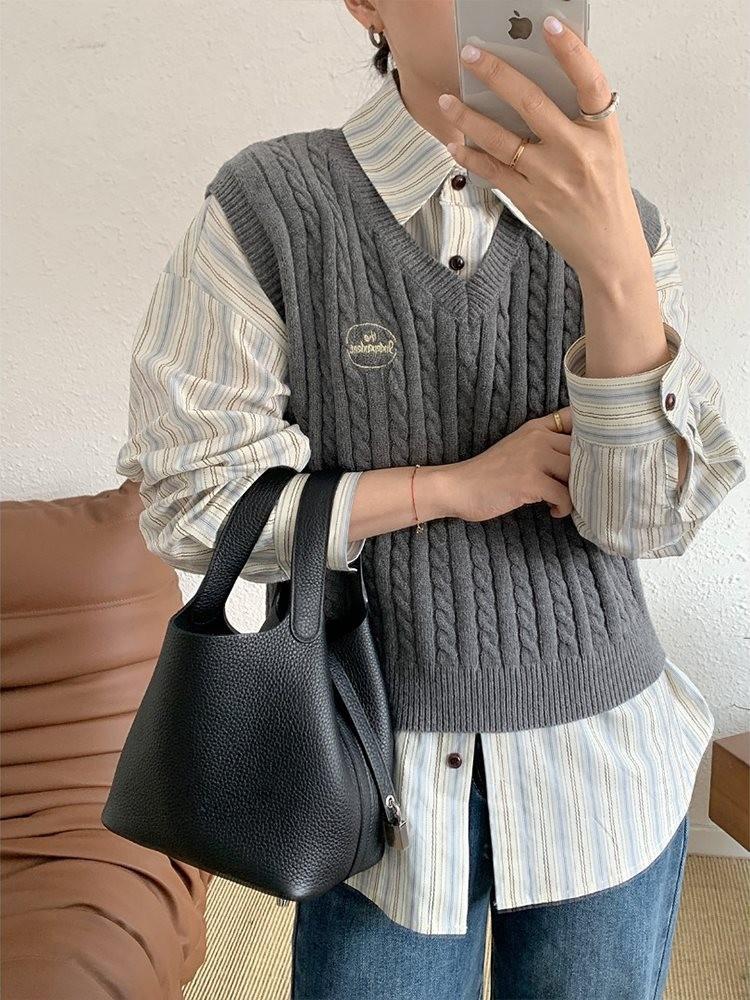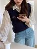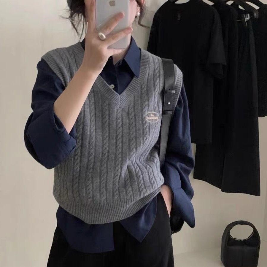 Chaleco de punto con cuello en V estilo universitario para mujer, suéter retro sin mangas apilado de principios de otoño de 2024, top exterior