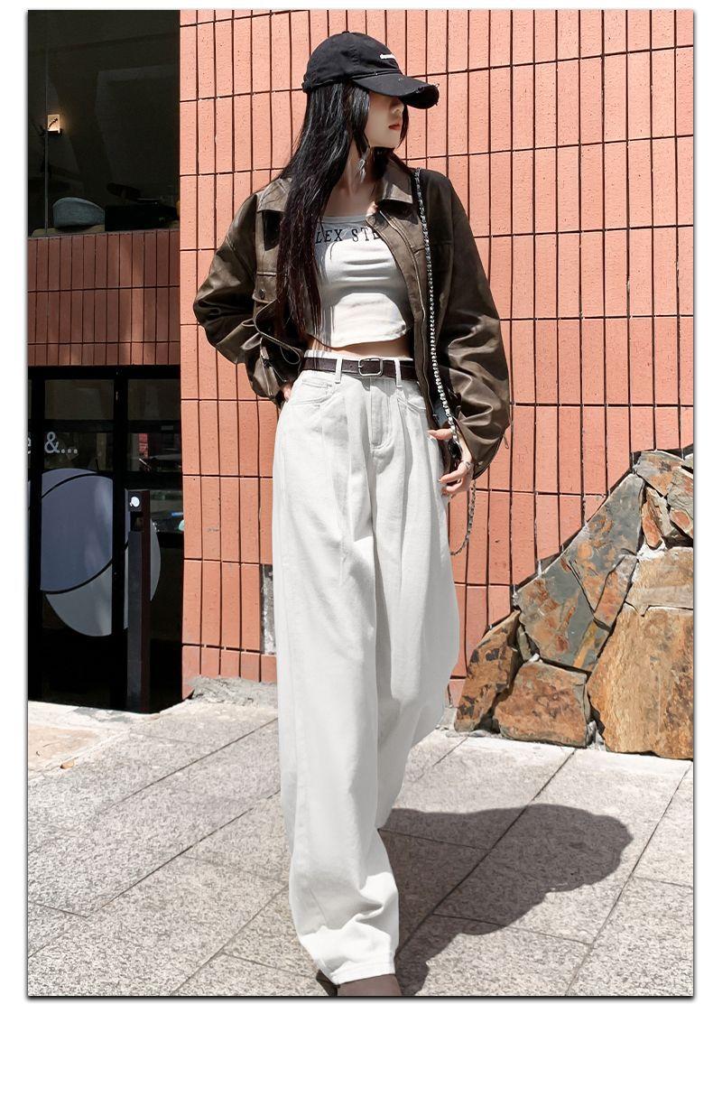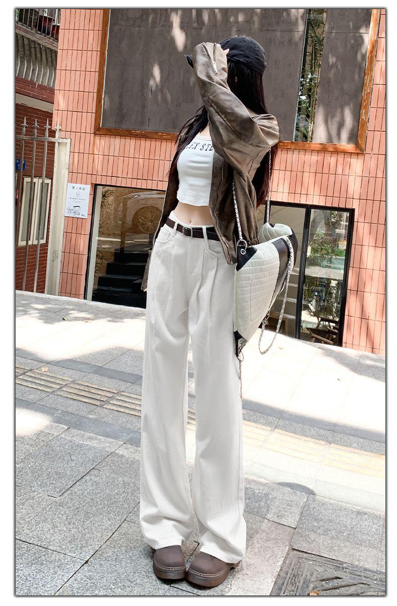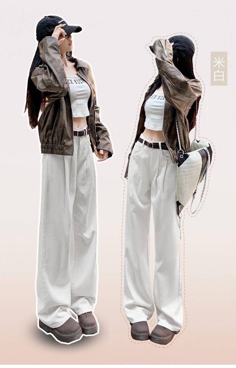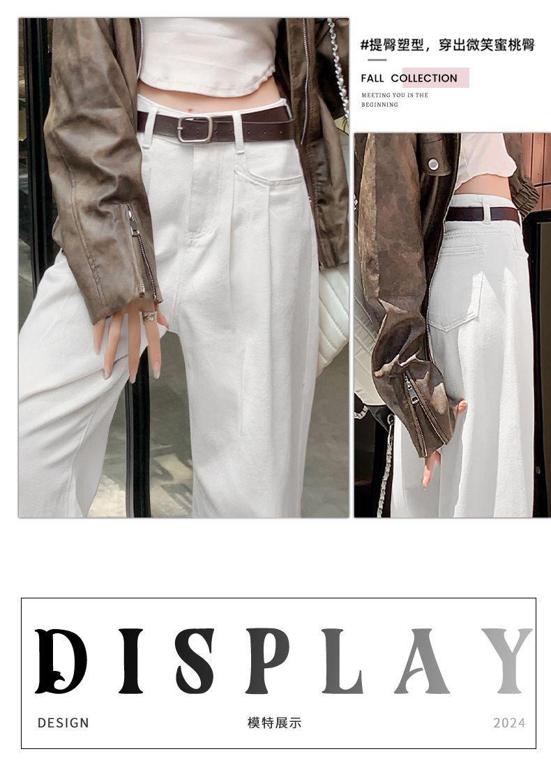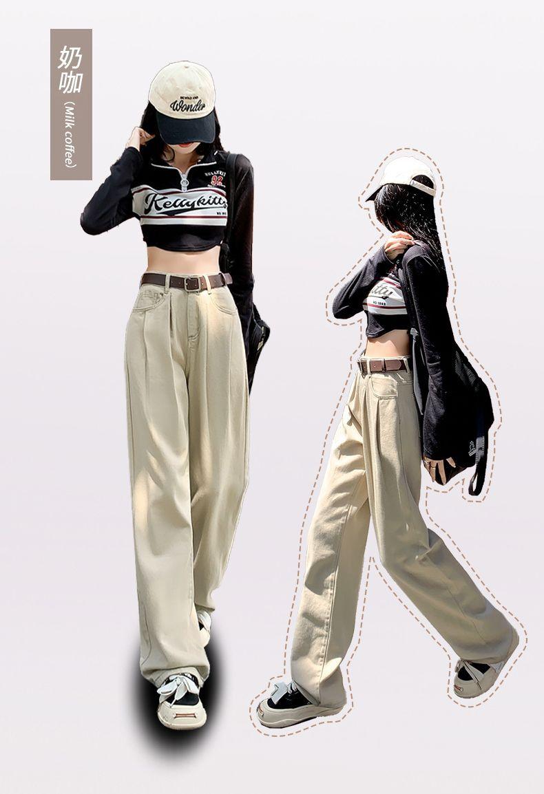 Pantalones vaqueros de cintura alta, finos y anchos para mujer, de verano 2024, de principios de otoño, holgados, con diseño adelgazante y pierna recta.