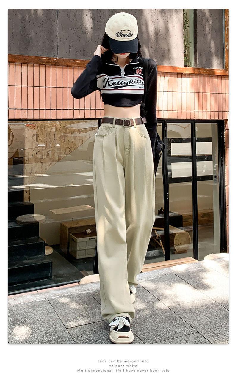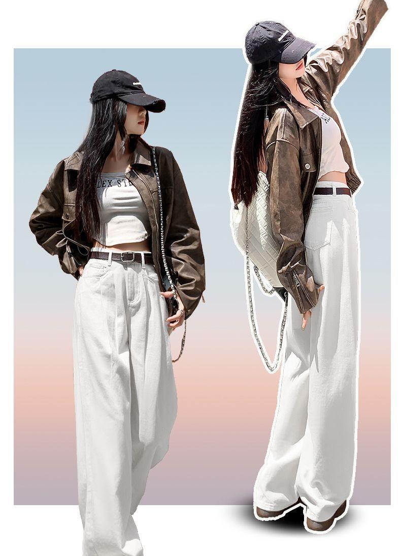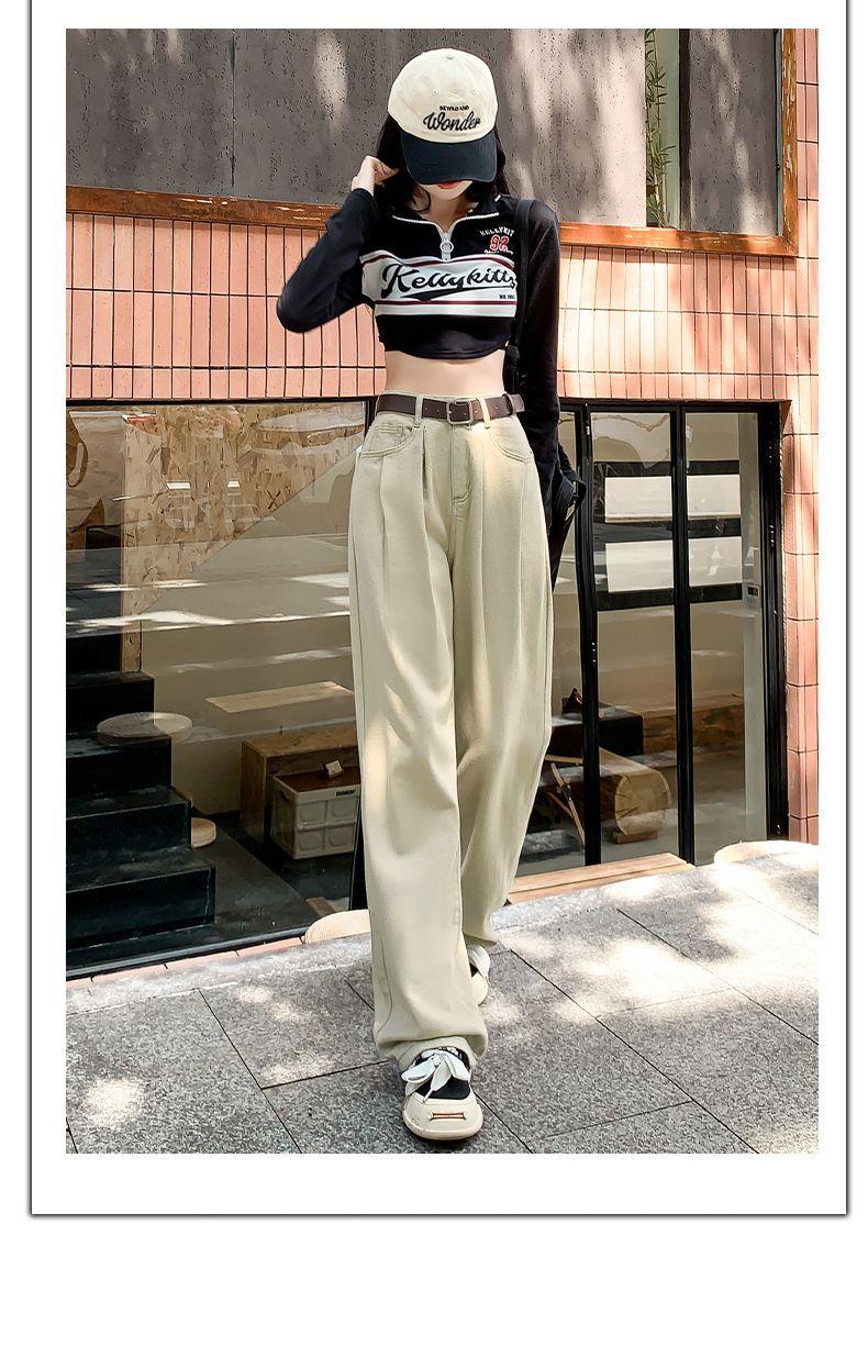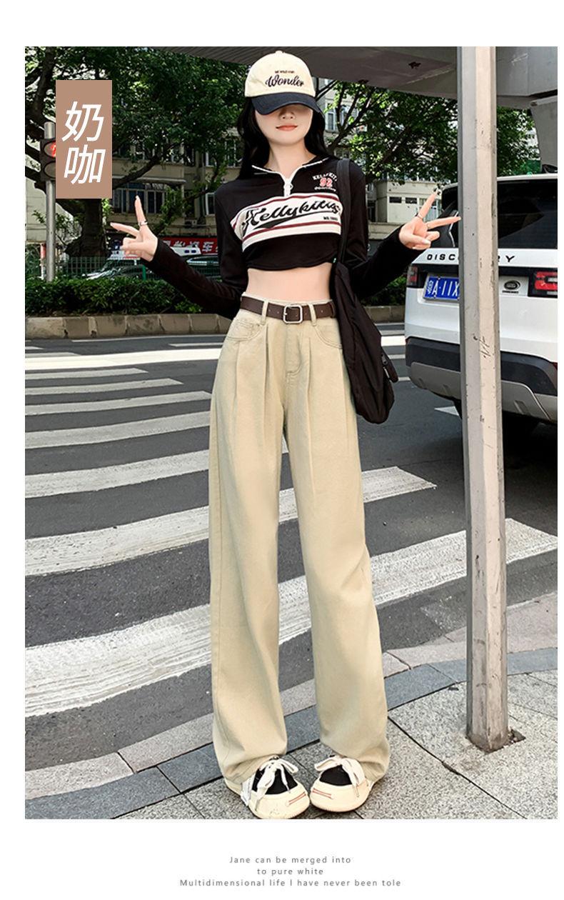Pantalones vaqueros de cintura alta, finos y anchos para mujer, de verano 2024, de principios de otoño, holgados, con diseño adelgazante y pierna recta.