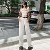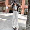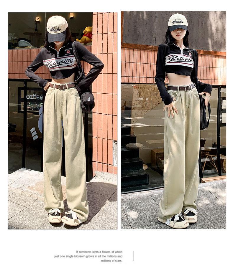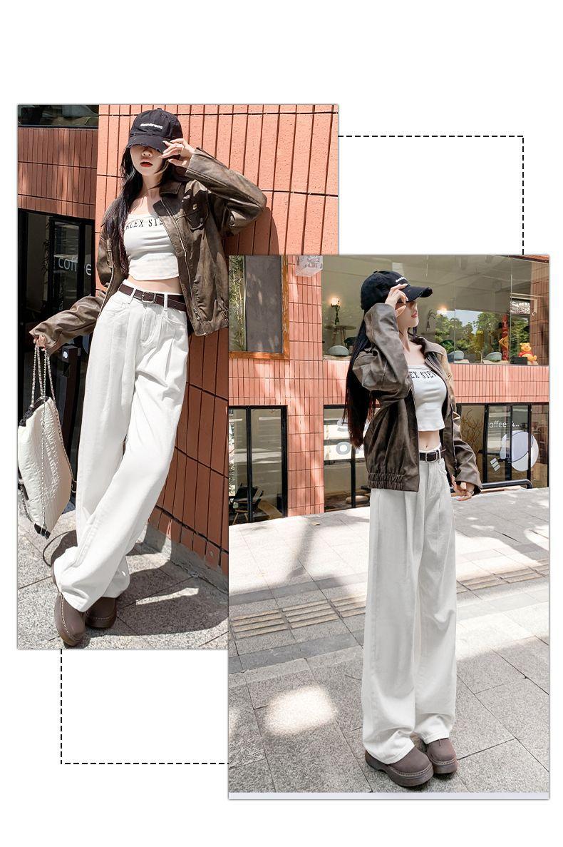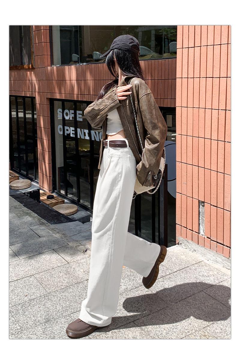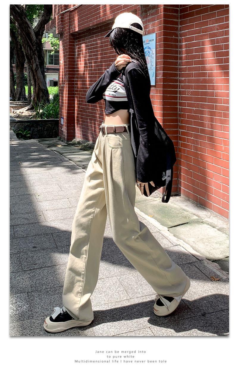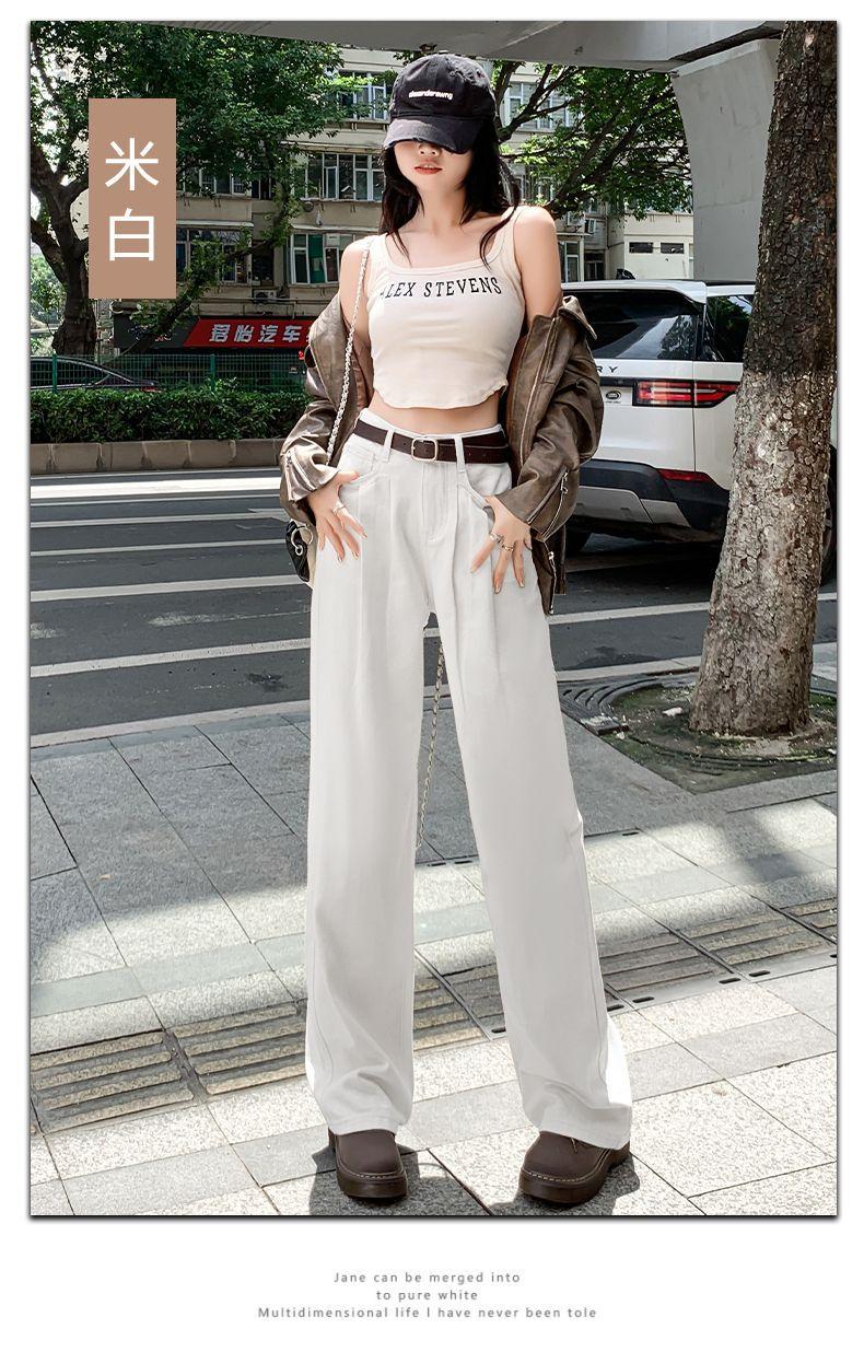 Pantalones vaqueros de cintura alta, finos y anchos para mujer, de verano 2024, de principios de otoño, holgados, con diseño adelgazante y pierna recta.