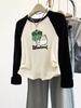 Camiseta de Manga Corta y Manga Larga para Mujer, Estilo Coreano Chic Dulce y Picante, Raglán Sensación de Alta Gama, Camiseta Base de Algodón Puro para Principios de Otoño