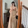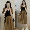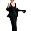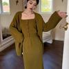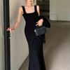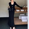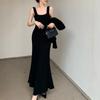 Conjunto de Vestido Hepburn Retro Estilo Francés de Cola de Pescado para Mujer, Otoño e Invierno Ajustado Largo Negro de Tirantes con Cárdigan