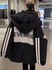 Abrigo de dos piezas con costura vaquera falsa para mujer, otoño e invierno 2024, estilo holgado, adelgazante, informal, de longitud media, acolchado de algodón