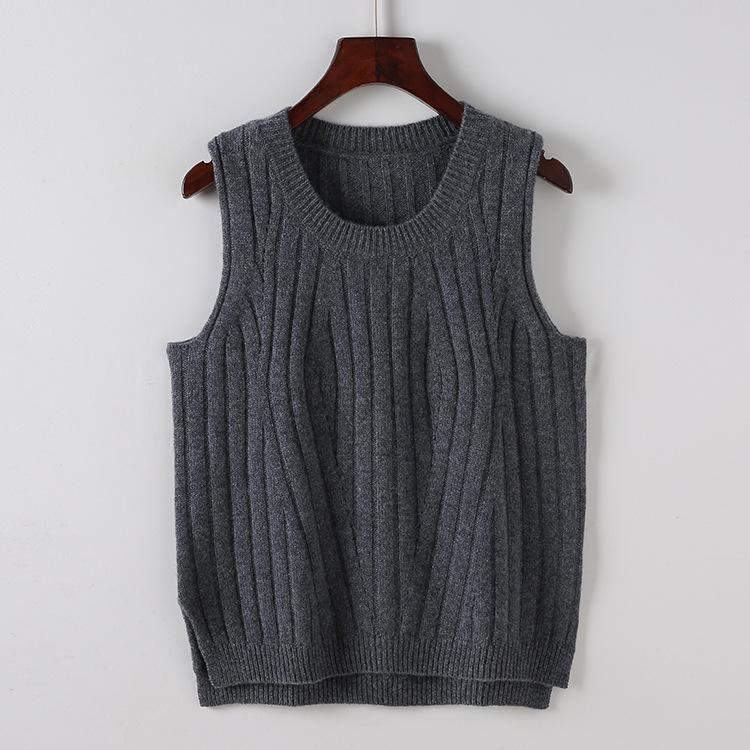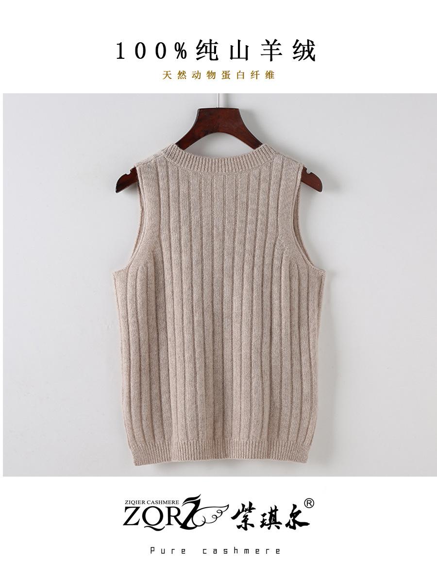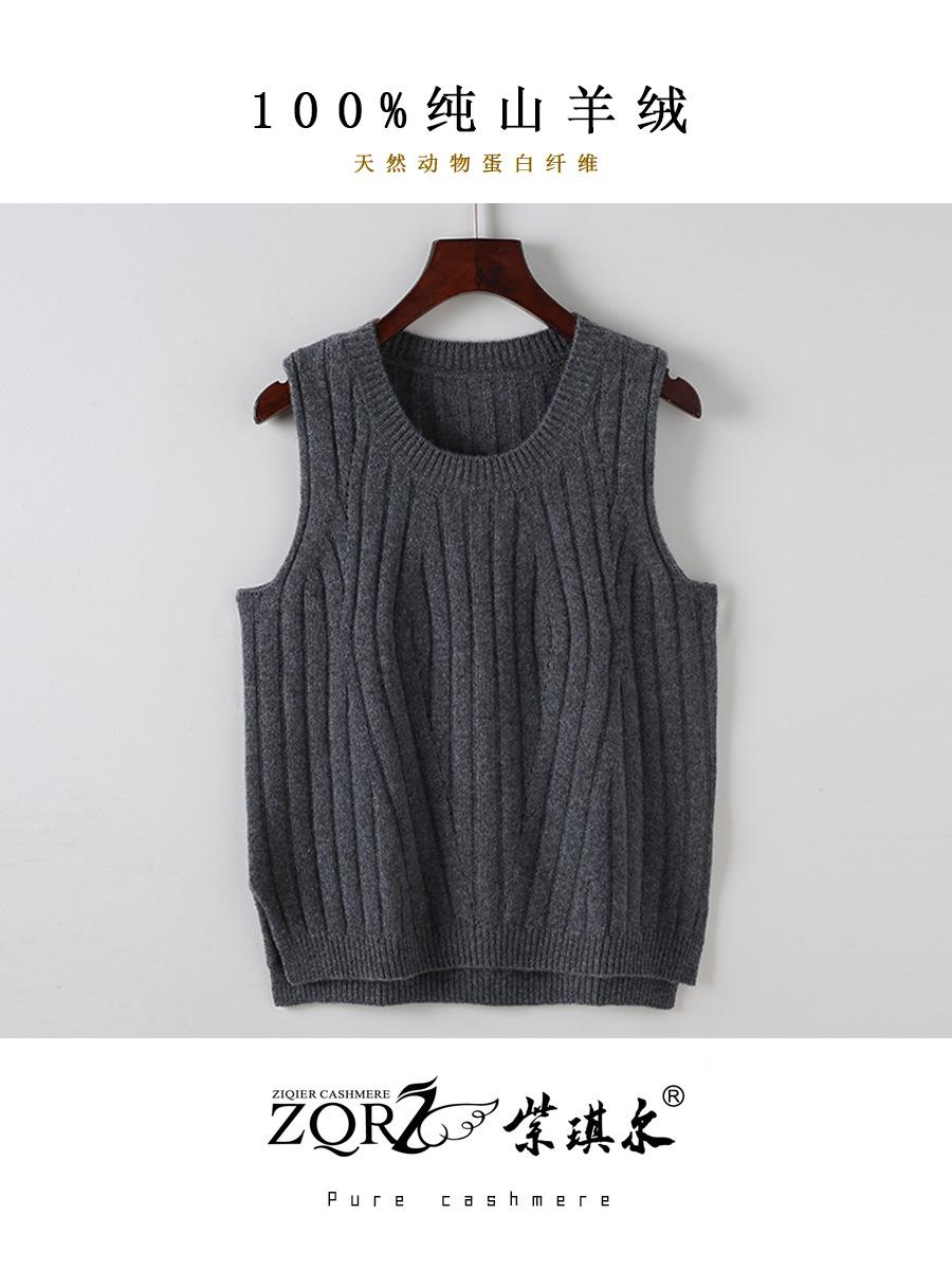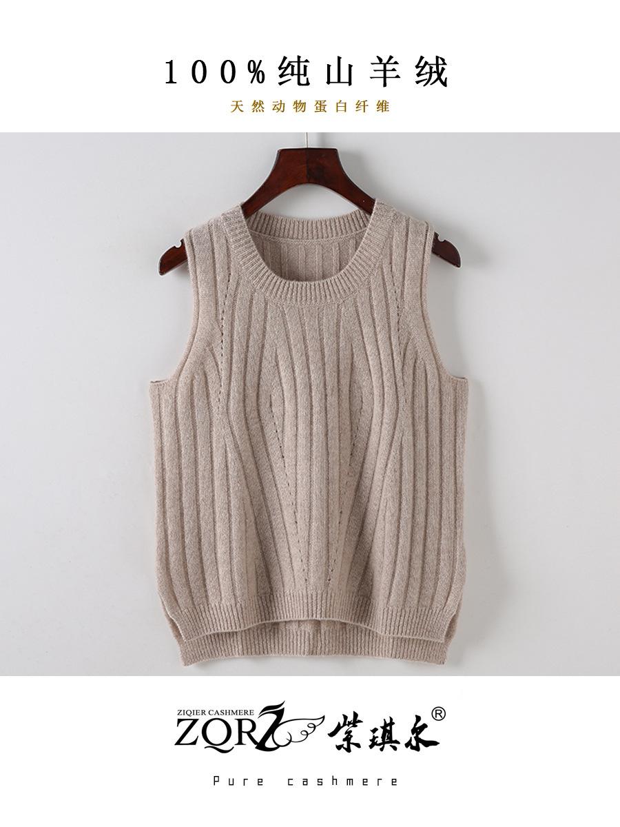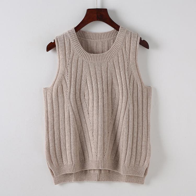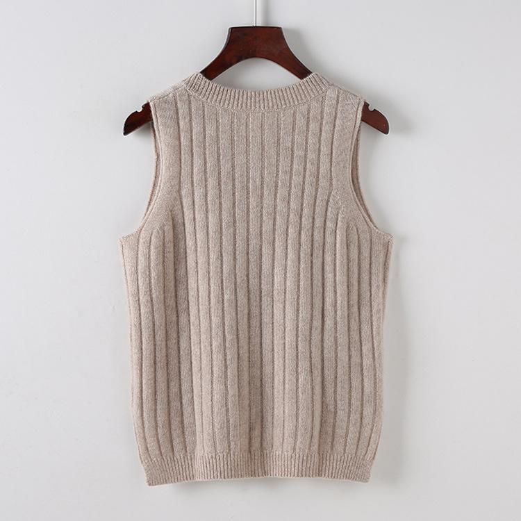 Chaleco Ordos City 100% Cachemira Pura para Mujer, Chaleco de Cuello Redondo, Doble Hilo, Densidad Suelta, Elegante