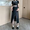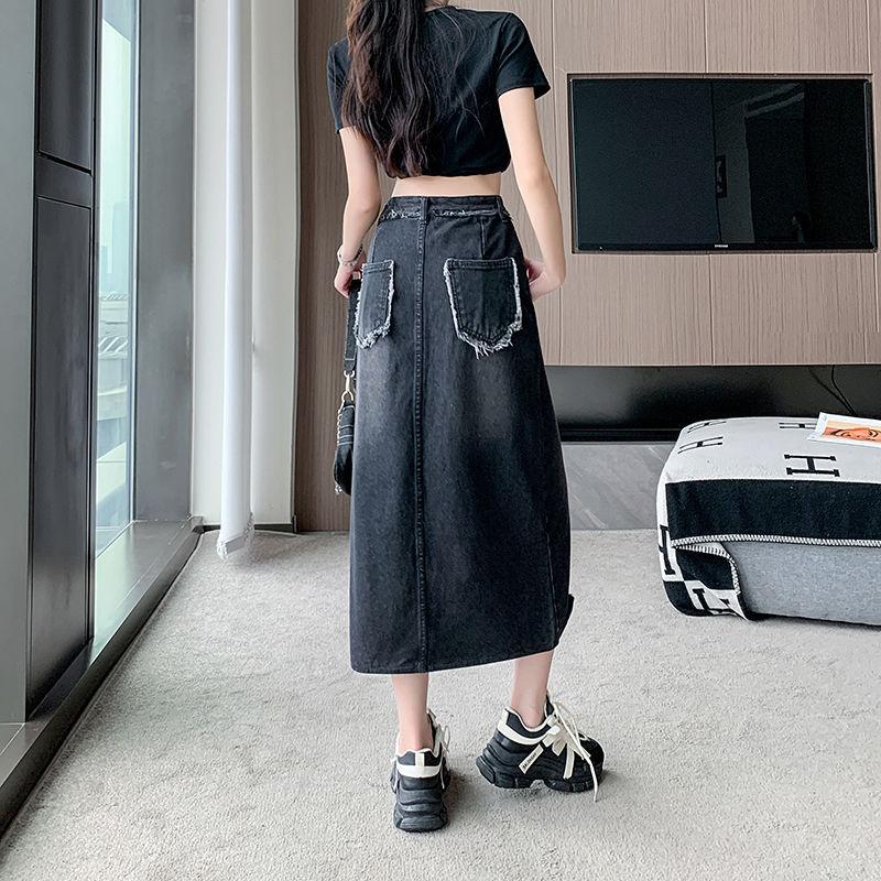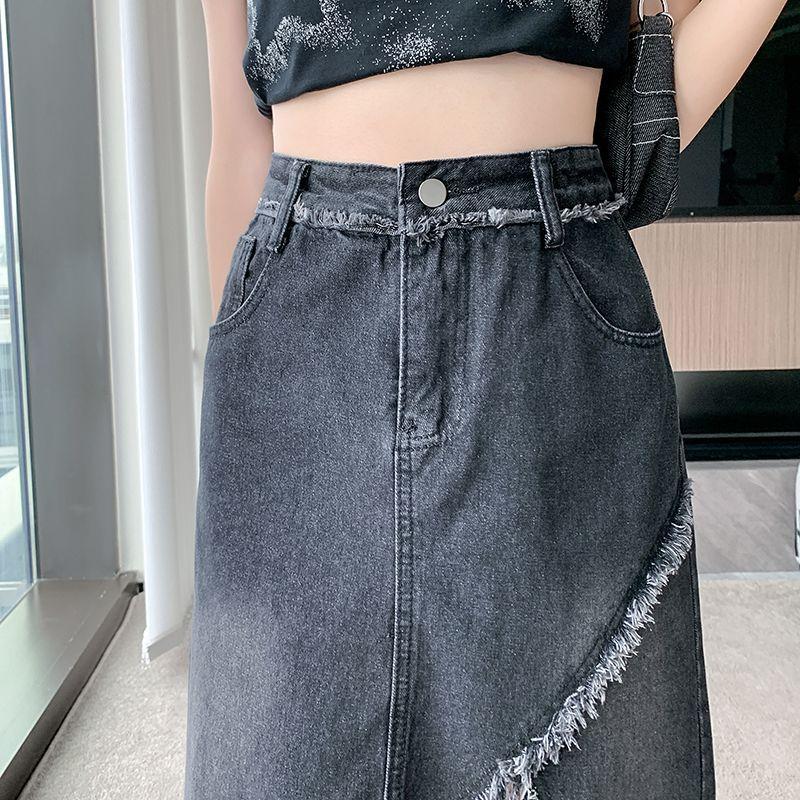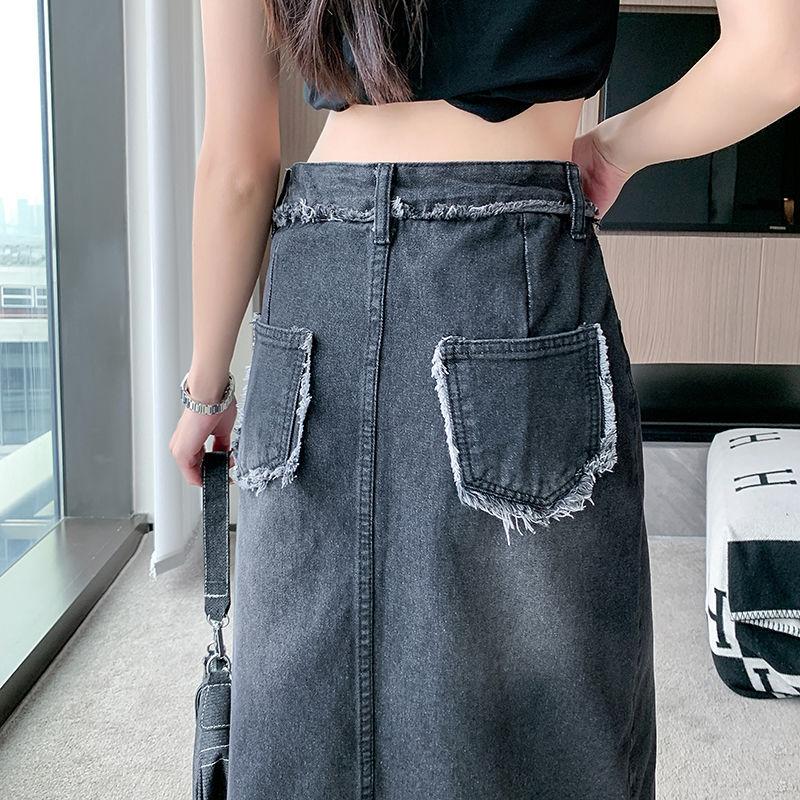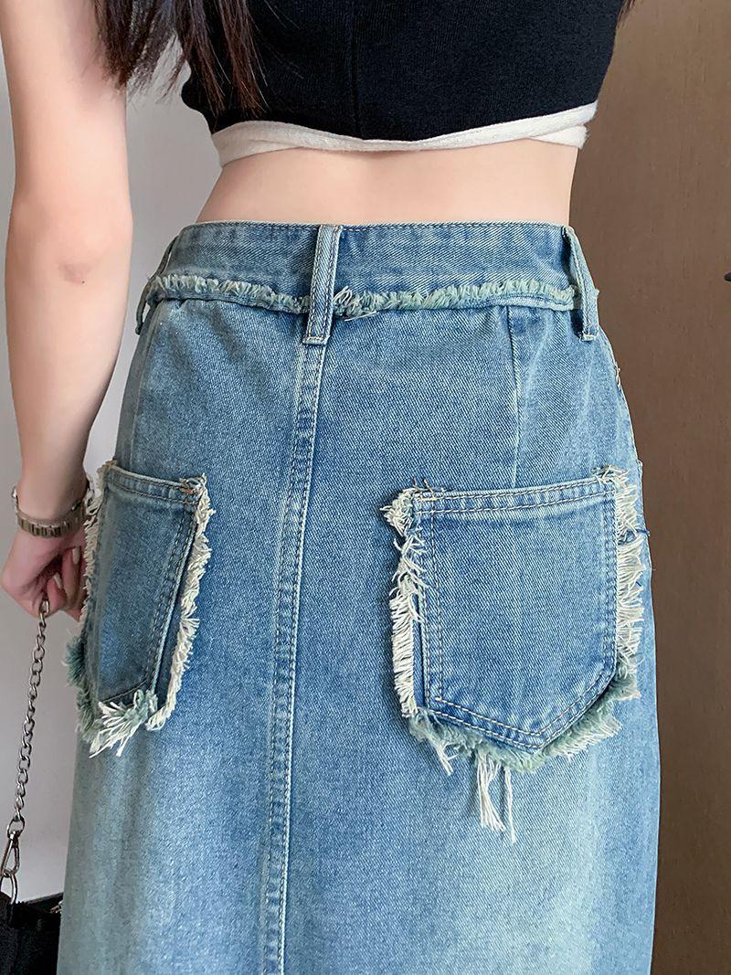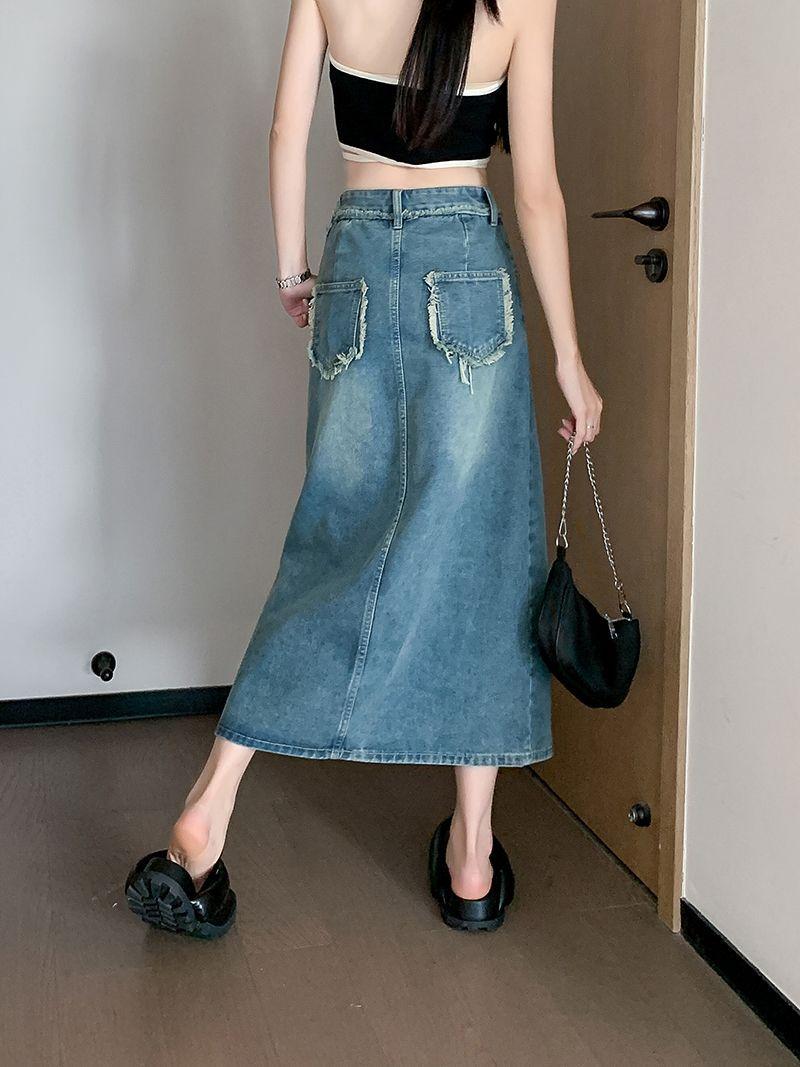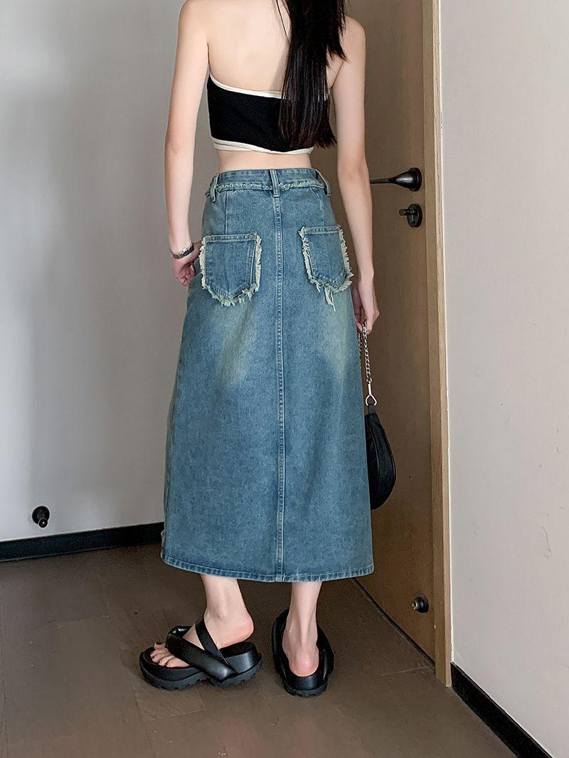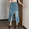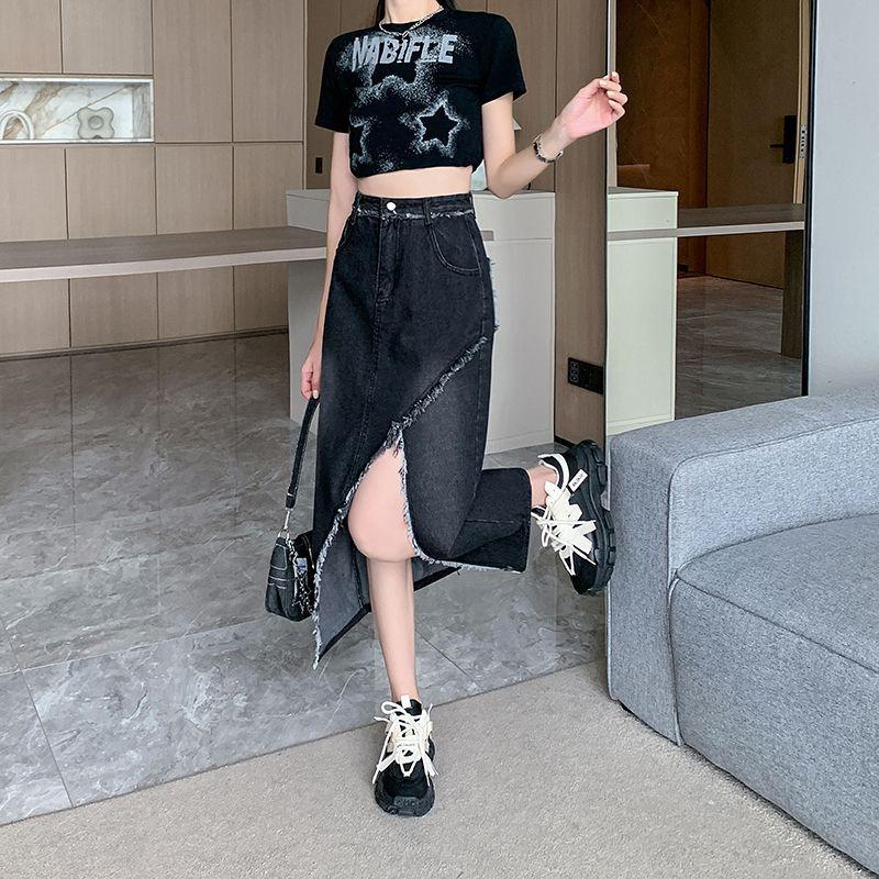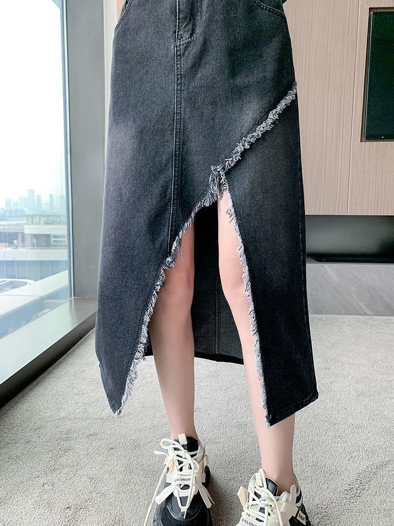 Falda vaquera de cintura alta con abertura para mujer, verano 2024, nueva, de longitud media, con corte en A y caderas cortas.