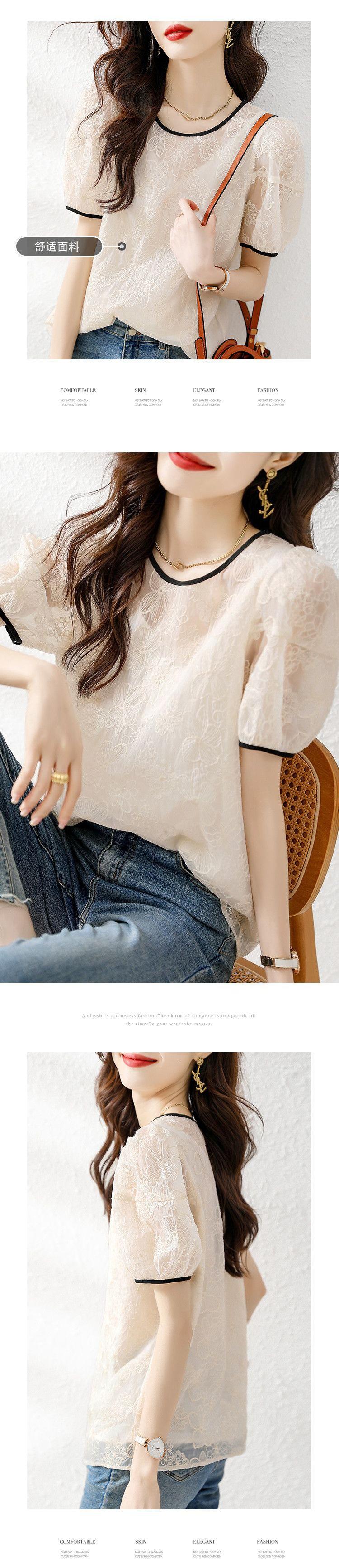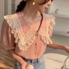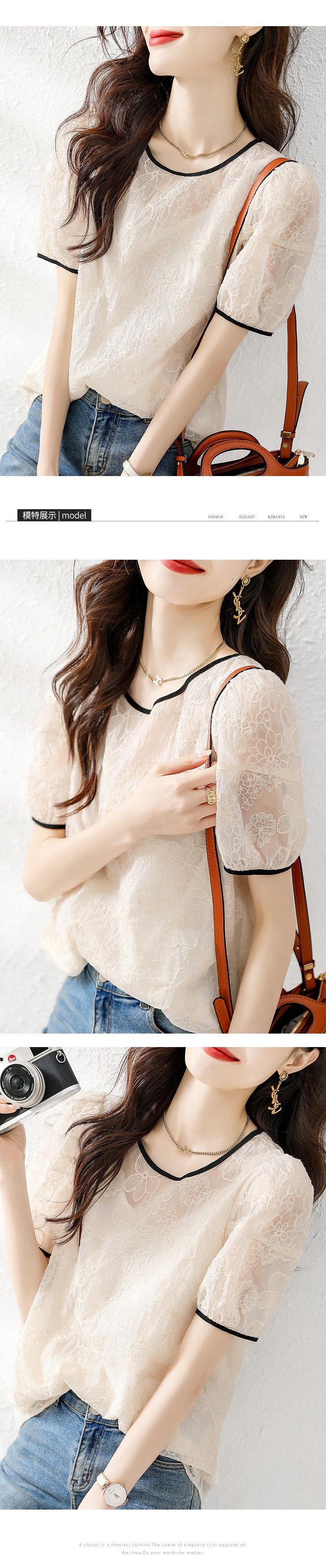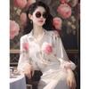 Camisa de gasa holgada de manga corta de verano, versátil, nueva, elegante, adelgazante, de moda, con un diseño de gasa dulce.