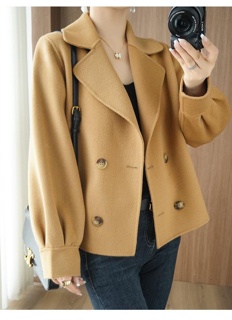 Recién llegado, pequeño abrigo de lana de tweed a la moda, abrigo de lana de doble cara para otoño e invierno, ropa de mujer de lana estilo Chanel simple