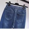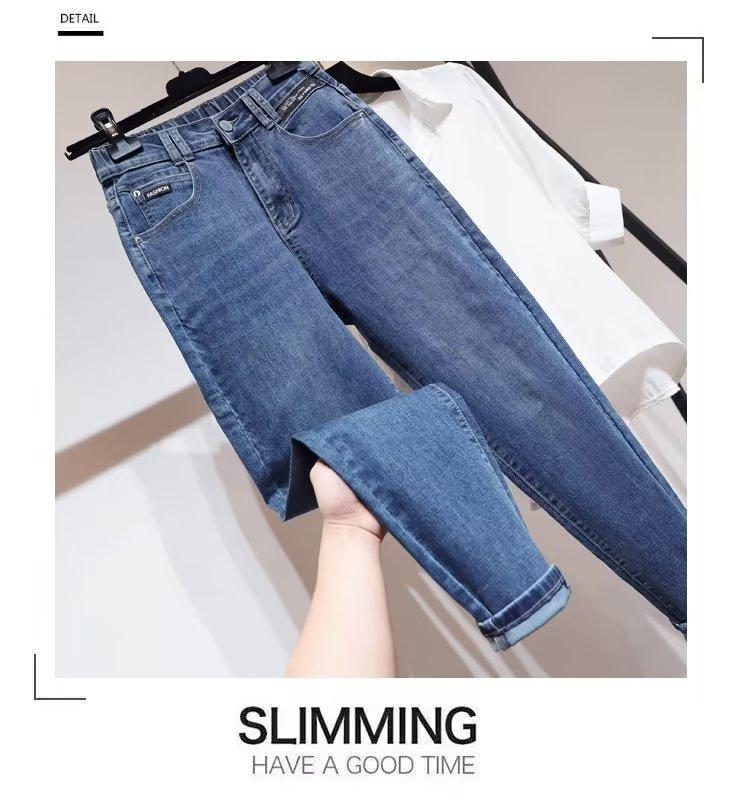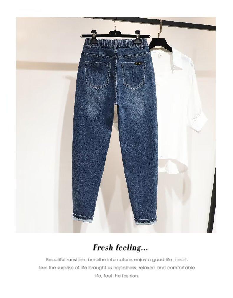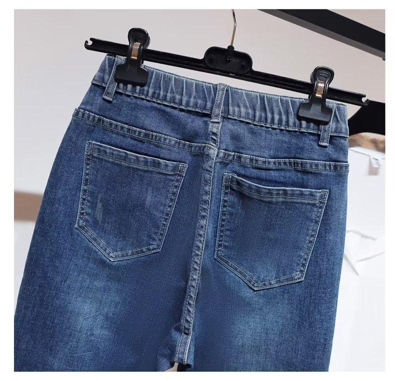 Talla grande Jeans Pantalones de Cintura Elástica para Mujer para Niñas Rellenitas Cintura Alta Ajustado Ajustado Elástico Papá Nabo Harem