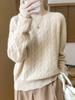 Suéter de lana suave y ceroso para otoño e invierno, suéter de cuello redondo con giro para mujer, suéter de base de punto holgado y grueso.