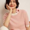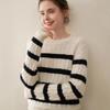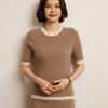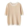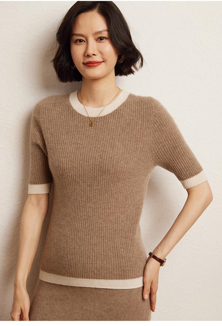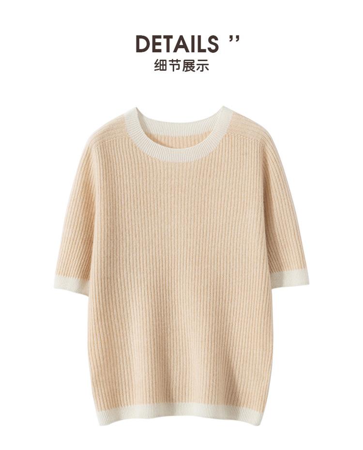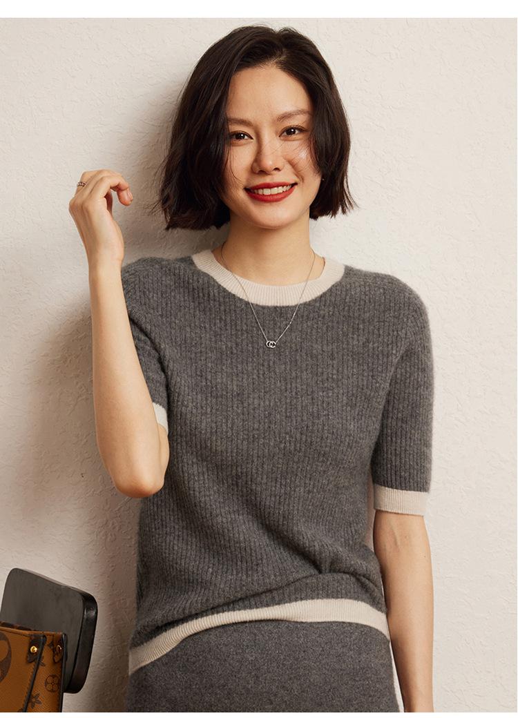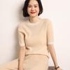 Suéter de Punto de Manga Corta para Mujer de Cachemira Suave y Acogedor con Cuello Redondo y Bloques de Color, Versátil Estilo Coreano Holgado y Sencillo para Otoño e Invierno