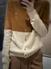 Suéter de punto nuevo 2024, cárdigan para mujer, atuendo de otoño con nicho de conocimiento, elegante abrigo de suéter de color contrastante para mujer, primavera y otoño